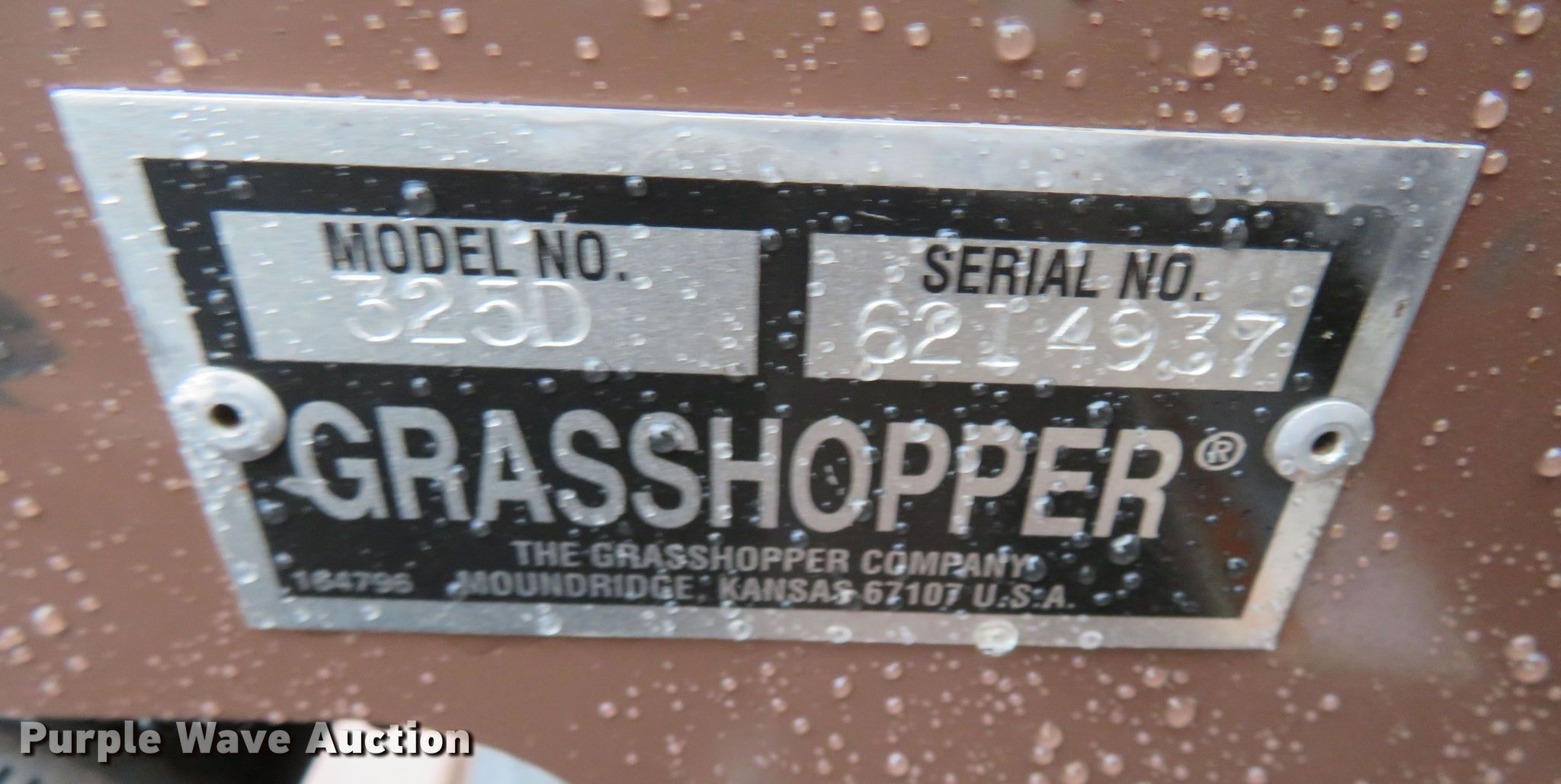 Purple Wave is selling a used Commercial Turf Mower in Missouri. This item is a 2011 Grasshopper 325D ZTR lawn mower with the following: Hours: 1,217 on meter, Cutting width: 72", Serial: 6214937