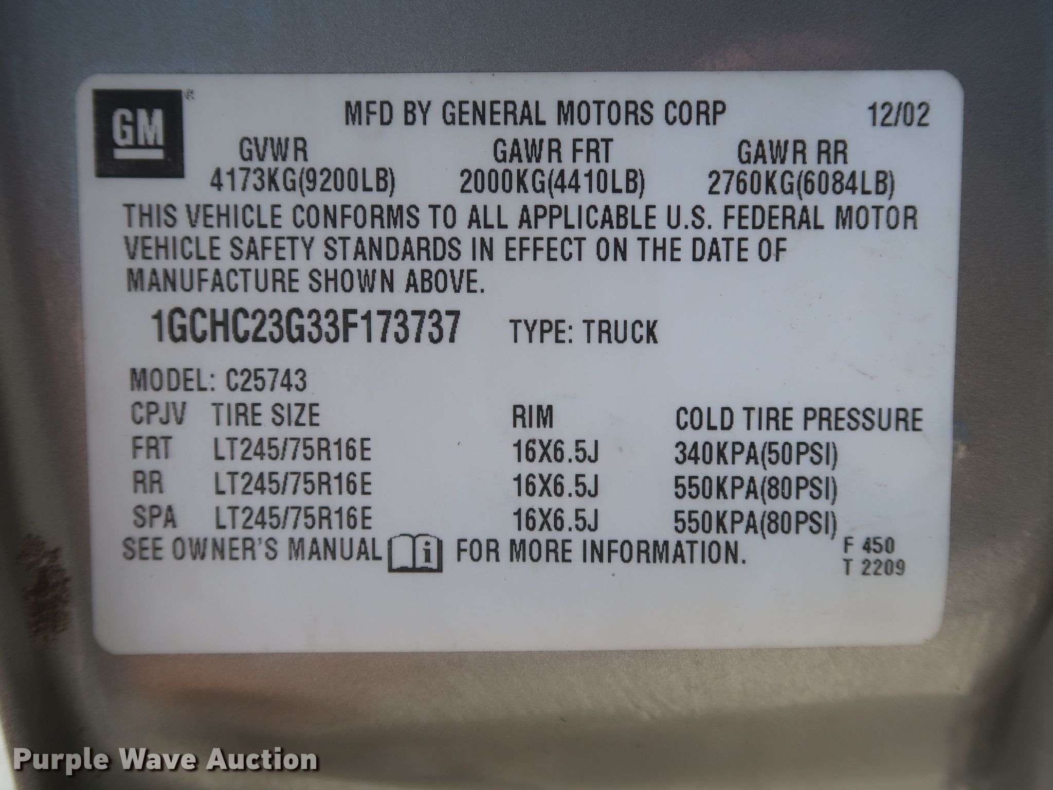 - VIN: 1GCHC23G33F173737