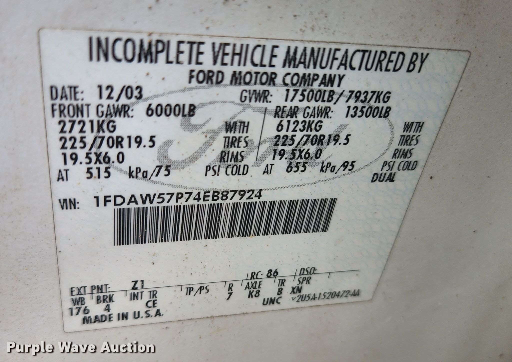 Purple Wave is selling a used Service Truck in Illinois. This item is a 2004 Ford F550 Super Duty XL Crew Cab utility / service truck with the following: Miles: 224,452 on odometer, VIN: 1FDAW57P74EB87924