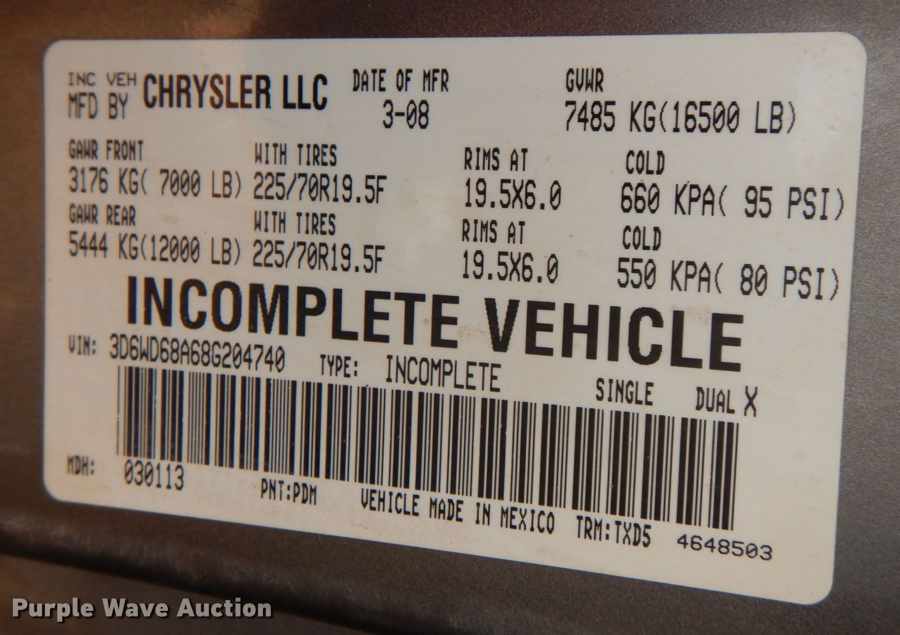 - VIN: 3D6WD68A68G204740