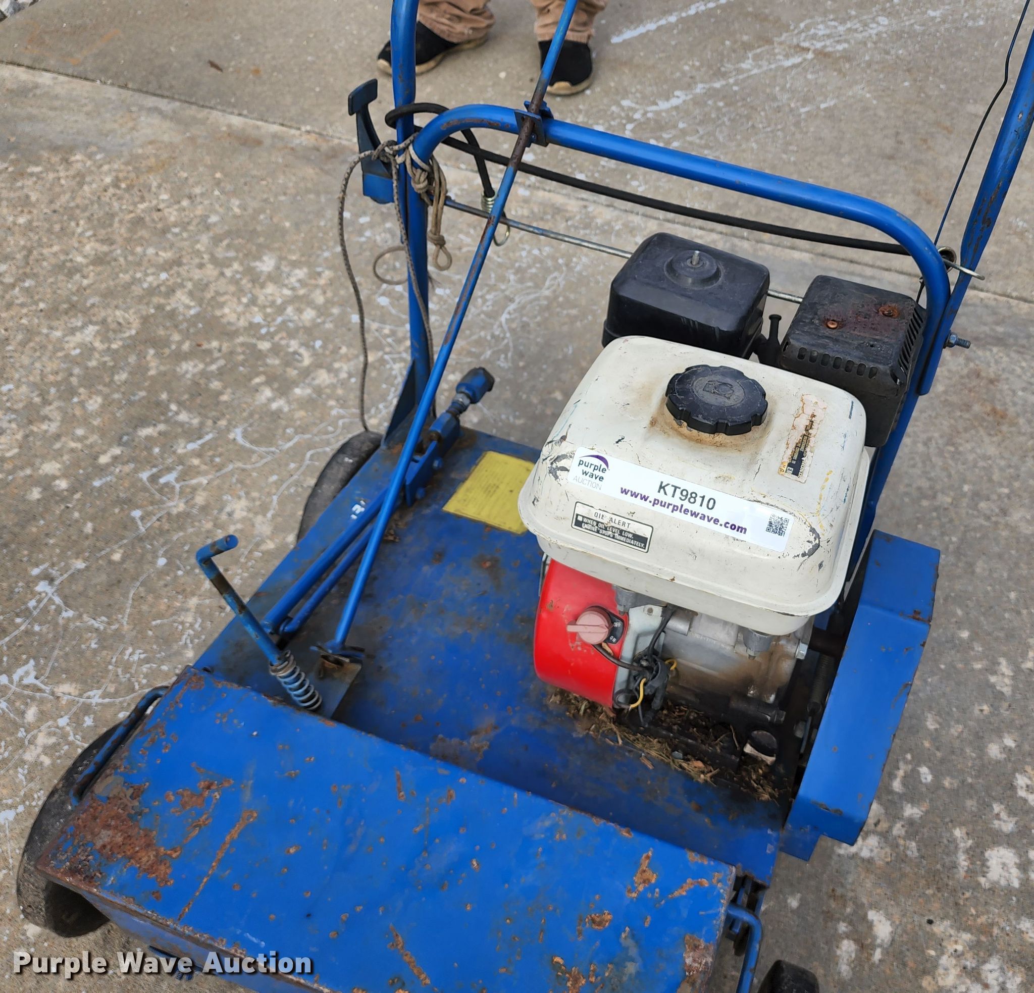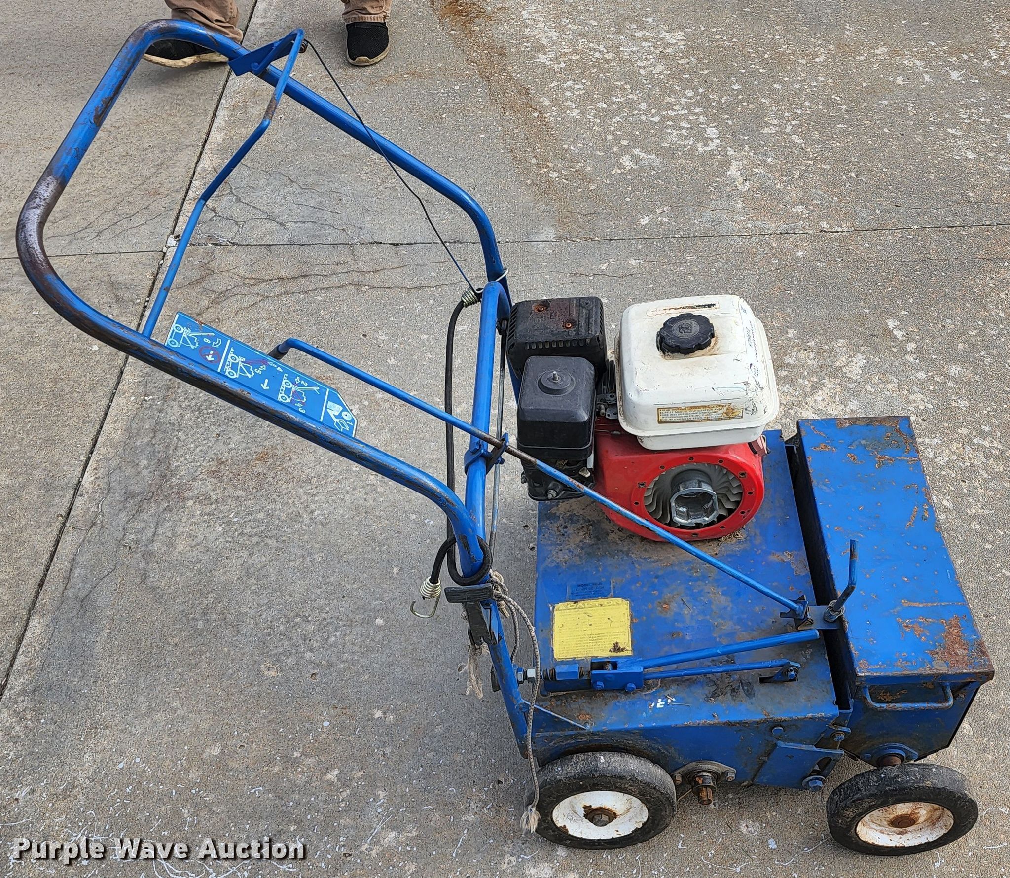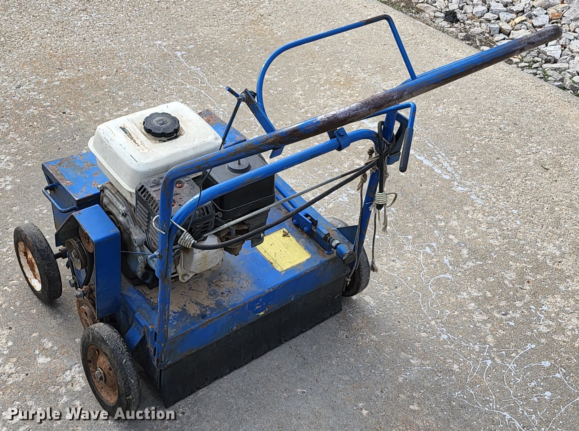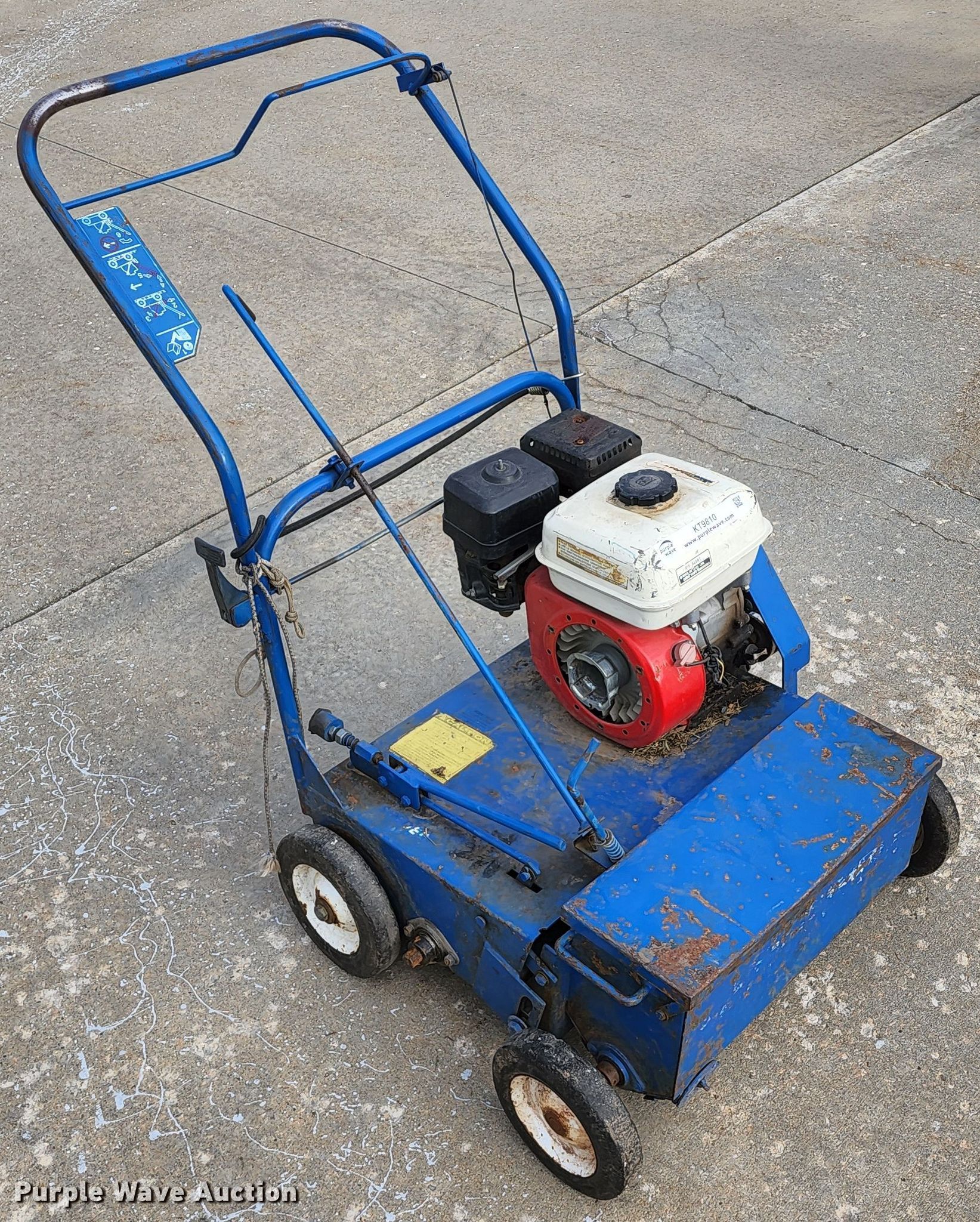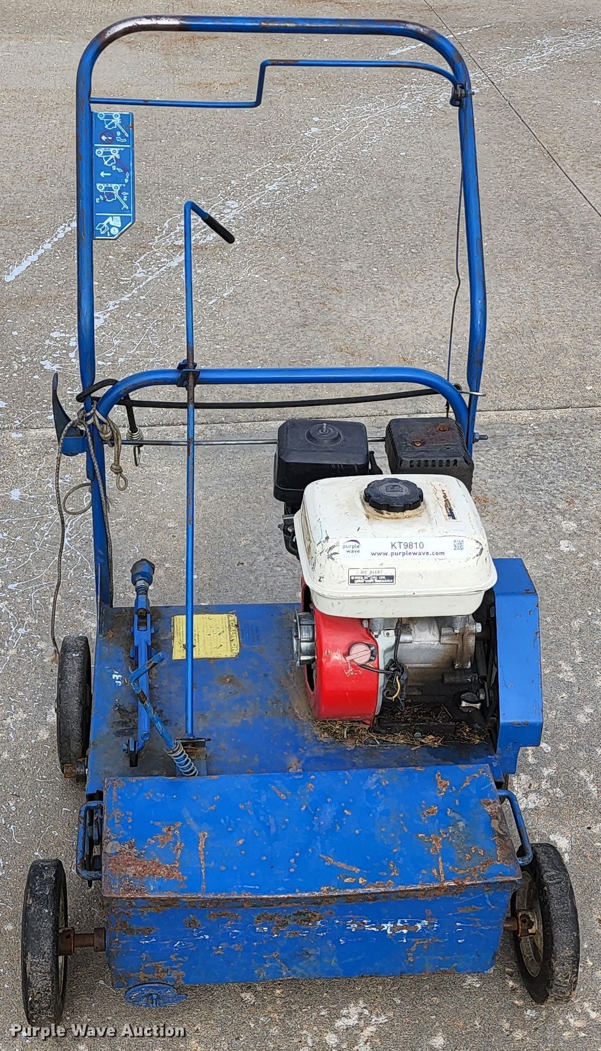 Purple Wave is selling a used Lawn and Garden in Missouri. This item is a Blue Bird overseeder with the following: Honda gas engine, 18"W, String broken, Serial: H900111140