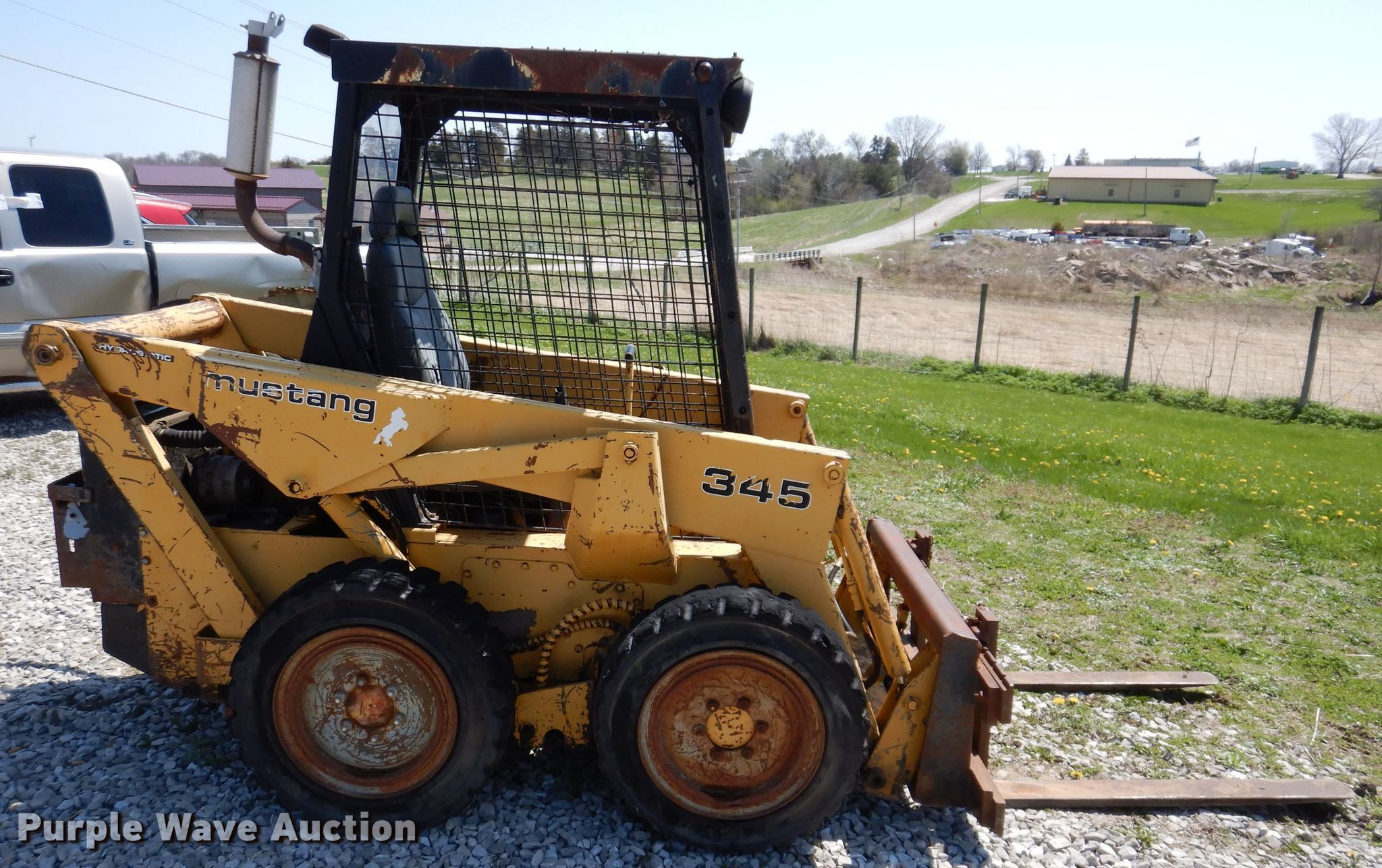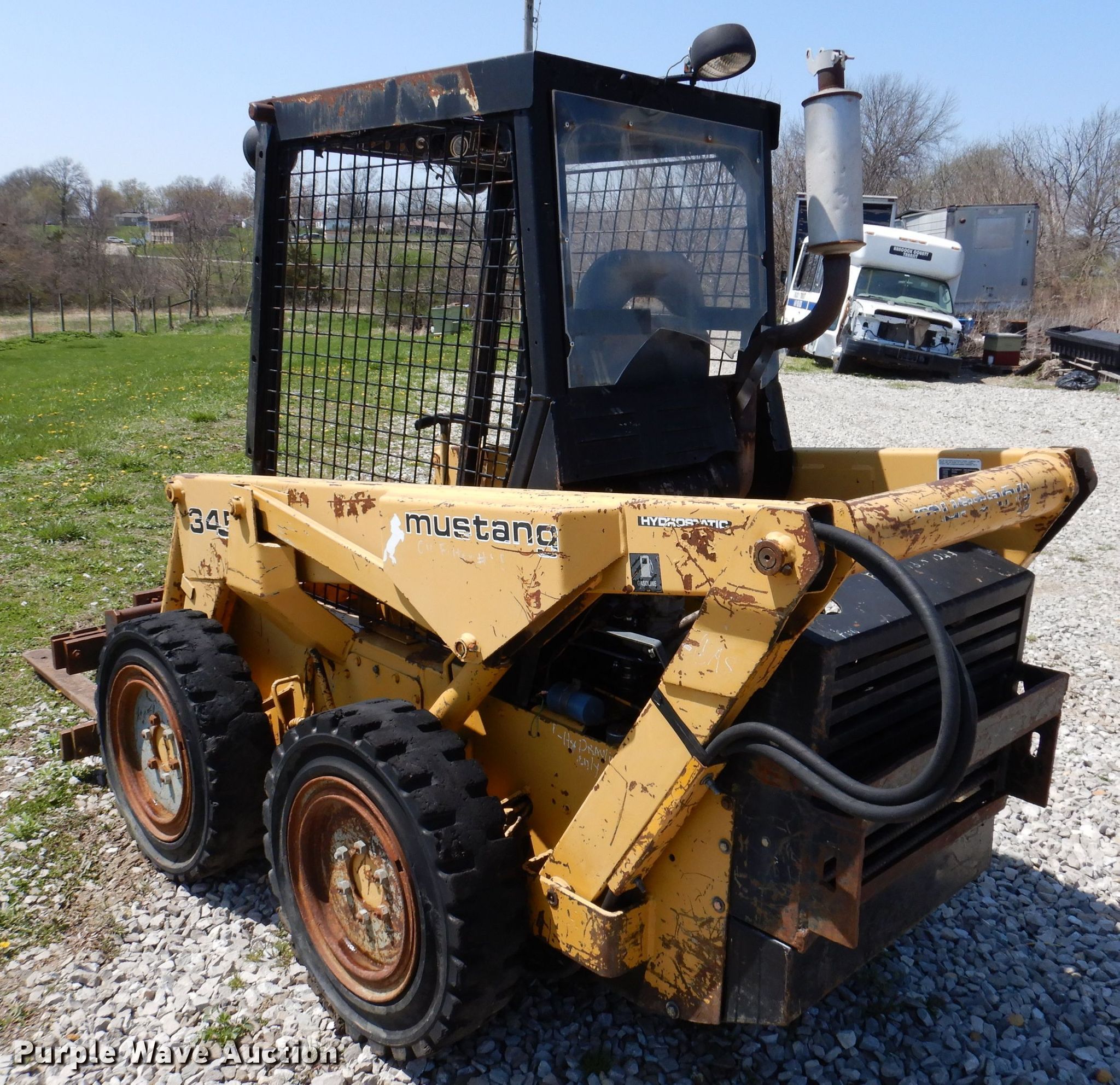 Purple Wave is selling a used Skid Steer Loader in Iowa. This item is a Mustang 345 skid steer loader with the following: Hours: 1,764 on meter, Serial: E9540/053
