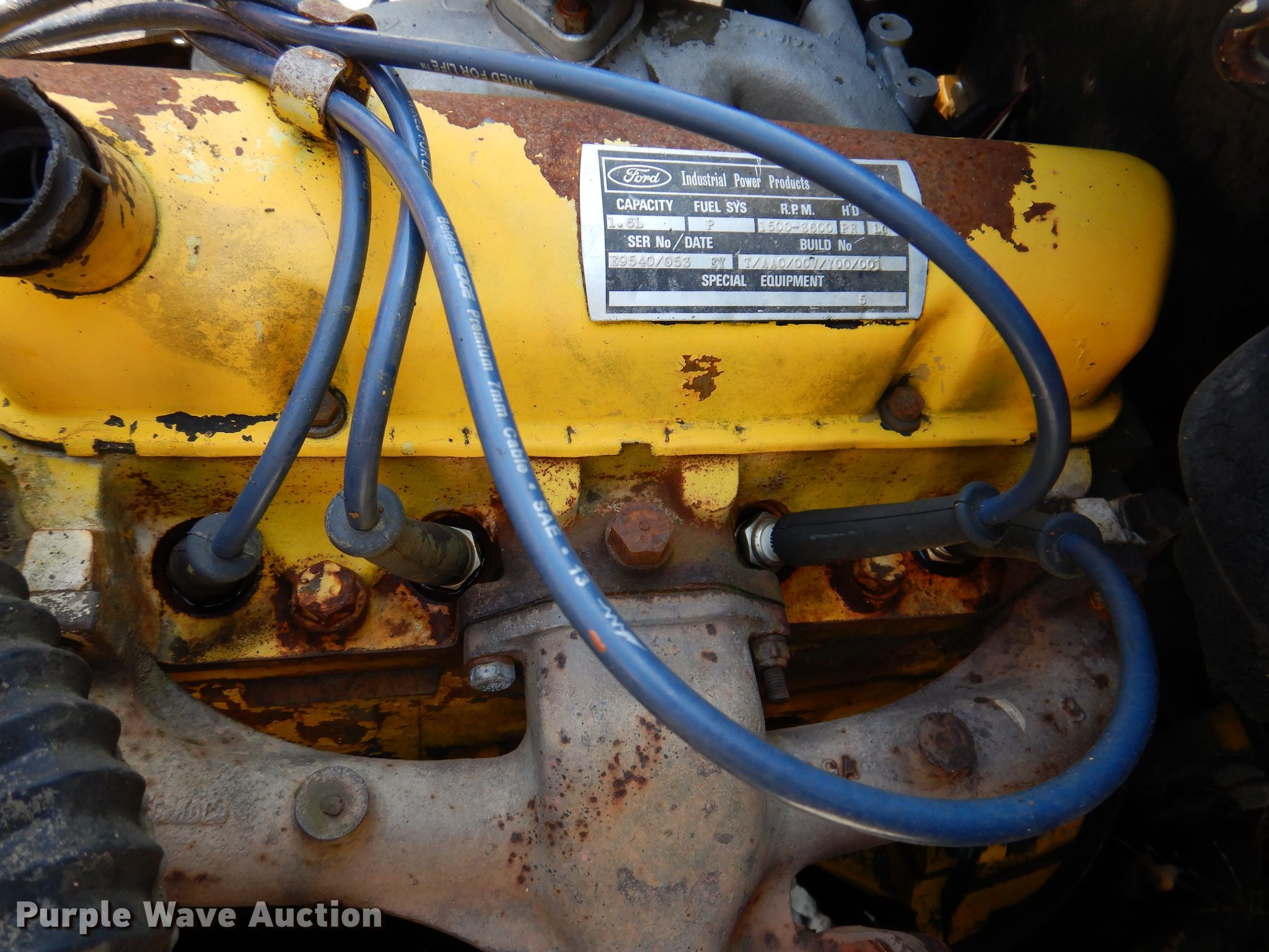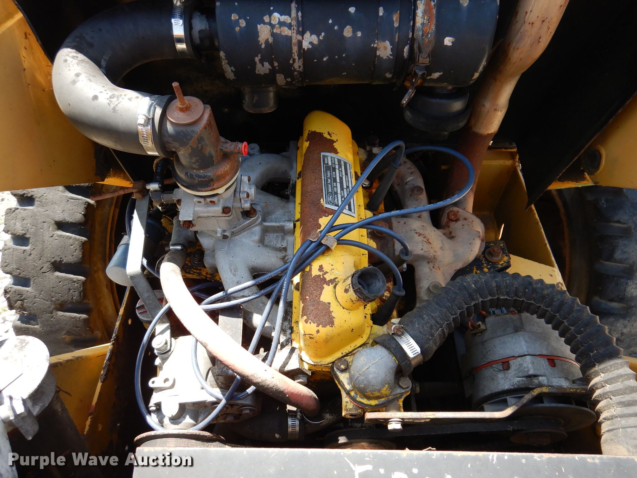 Mustang 345 skid steer loader. Hours: 1,764 on meter, Serial: E9540/053. Engine Ford 2274E, Serial: E9540/053, Displacement: 1.6L, Cylinders: 4, Fuel type: Gas. Transmission Hydrostatic. Operators station OROPS, Bucket control: Foot. Features Quick coupler: Manual, Forks Length: 39". Tires Size: 7-15, Solid. Notes Non-operational unit. Piper Motor Company. 607 Southeast St. Bloomfield, IA 52537