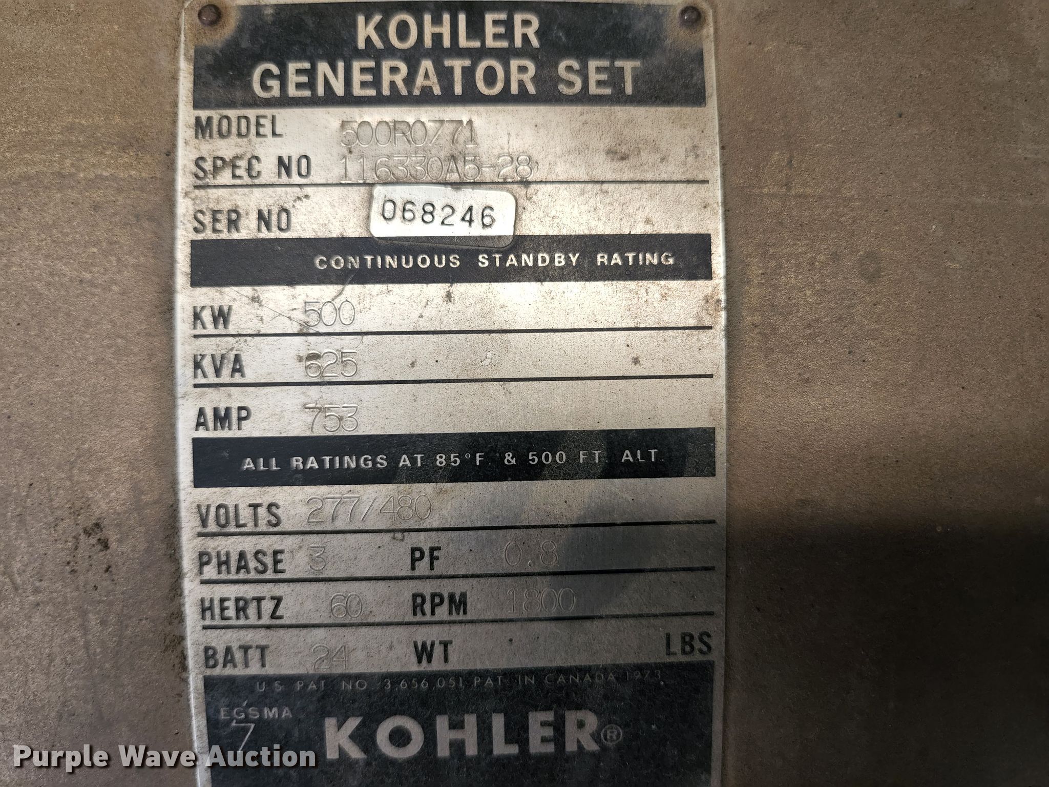 Kohler 500R0Z71 generator | SOLD! May 19 Construction Equipment Auction