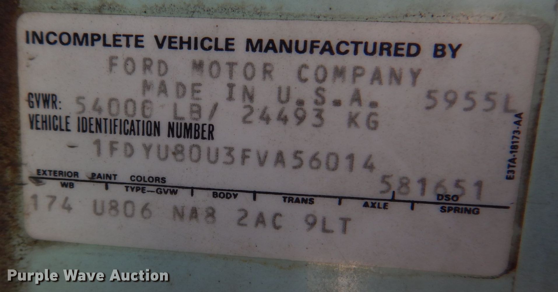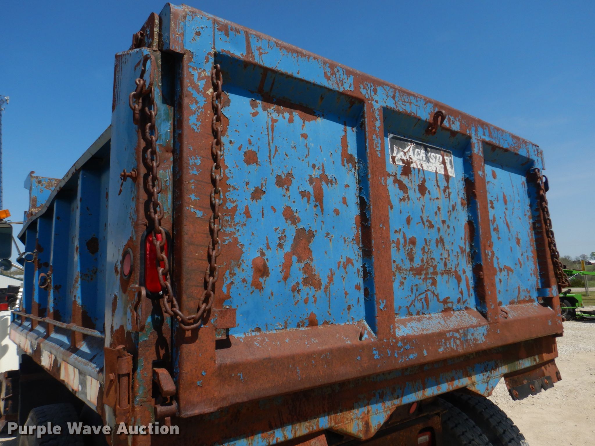 1985 Ford LT8000 dump truck. Miles: 75,121 on odometer, Hours: 6,616 on meter, VIN: 1FDYU80U3FVA56014. Engine Caterpillar 3208, Displacement: 10.4L, Cylinders: 8, Fuel type: Diesel. Transmission Automatic. Chassis Axles: Tandem, Differential lock: Inter-axle, Suspension: Spring over walking beam, Brakes: Air, PTO, GVWR: 54,000 lbs. Interior Heat. Features Dump bed Crysteel, 12' x 95" W, Side height: 38", Bed type: Steel, Ram: Single , End gate: Air operated, Plow Width: 132". Tires Front: 315/80R22.5, Rear: 11R22.5. Notes Dash warning indicator: Differential lock, Possible air leak, Hydraulic leak, Power steering issues. Kansas title. Seller is a Missouri licensed motor vehicle dealer. Title will be assigned and distributed by the dealer. Please contact the seller for distribution questions. Mileage has not been verified. Exempt will be written in the odometer disclosure on the title. S&S Auto Sales. 52 Business Hwy 54. Eldon, MO 65026