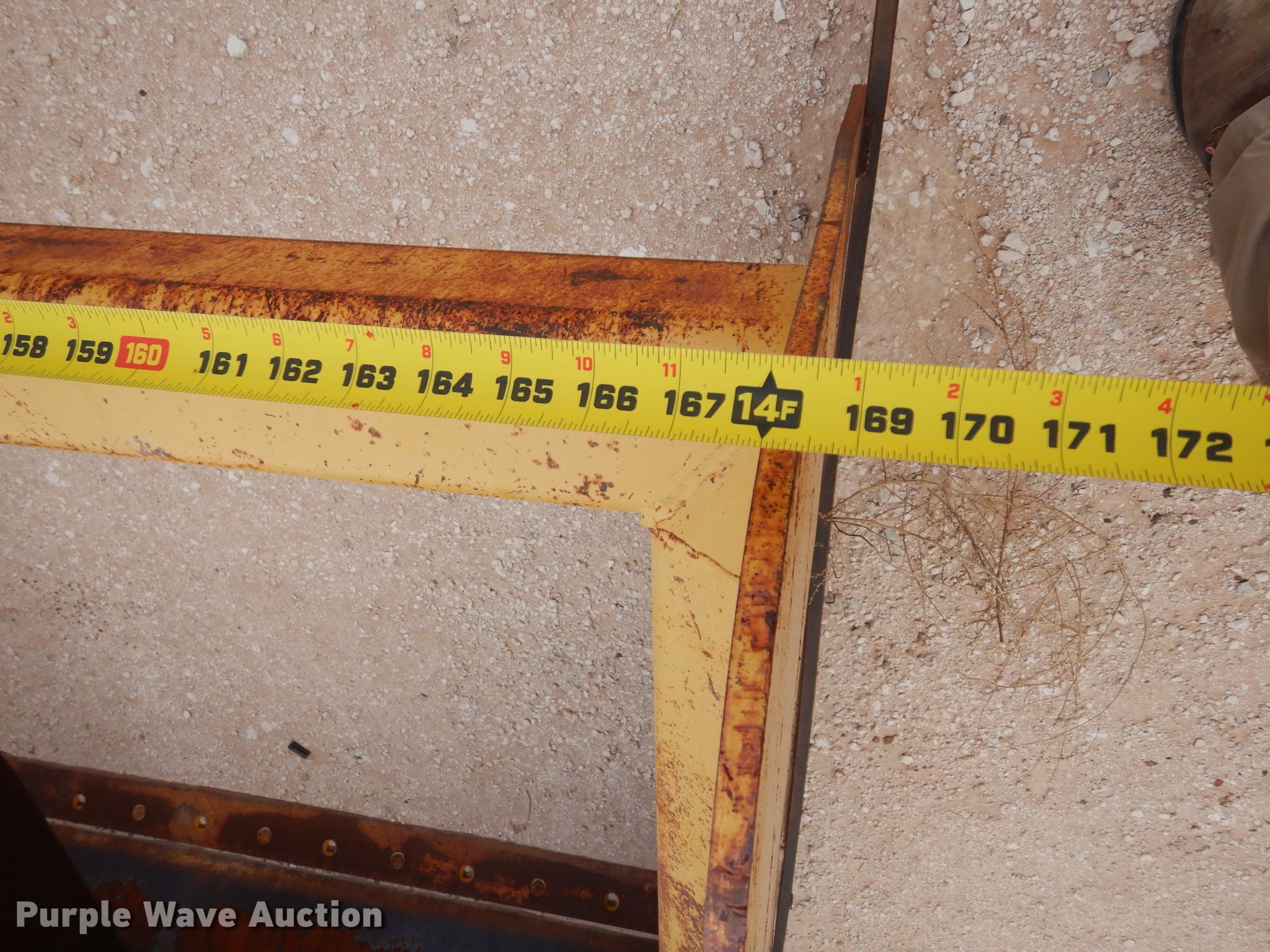 Box scraper. 14' W x 40" H. Features Hydraulic lift. Tires Rear: 14L-16.1. Notes Trimble mast. 587 US HWY 180W. Seminole, TX 79360