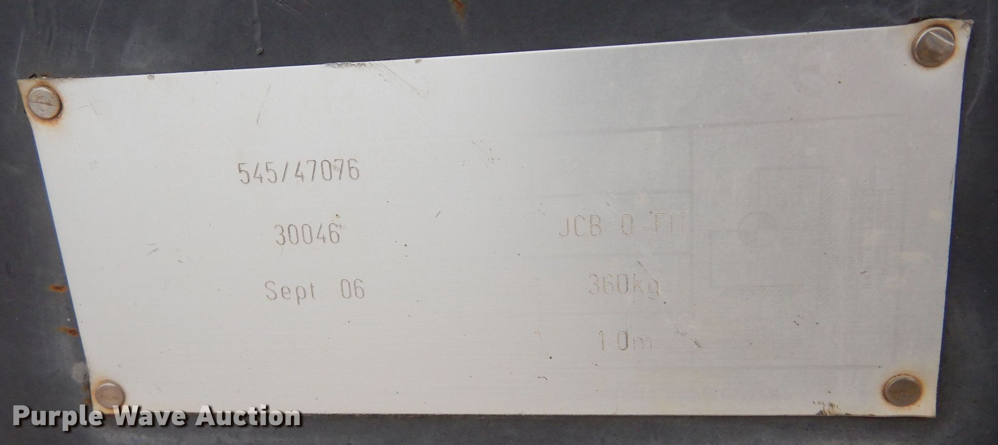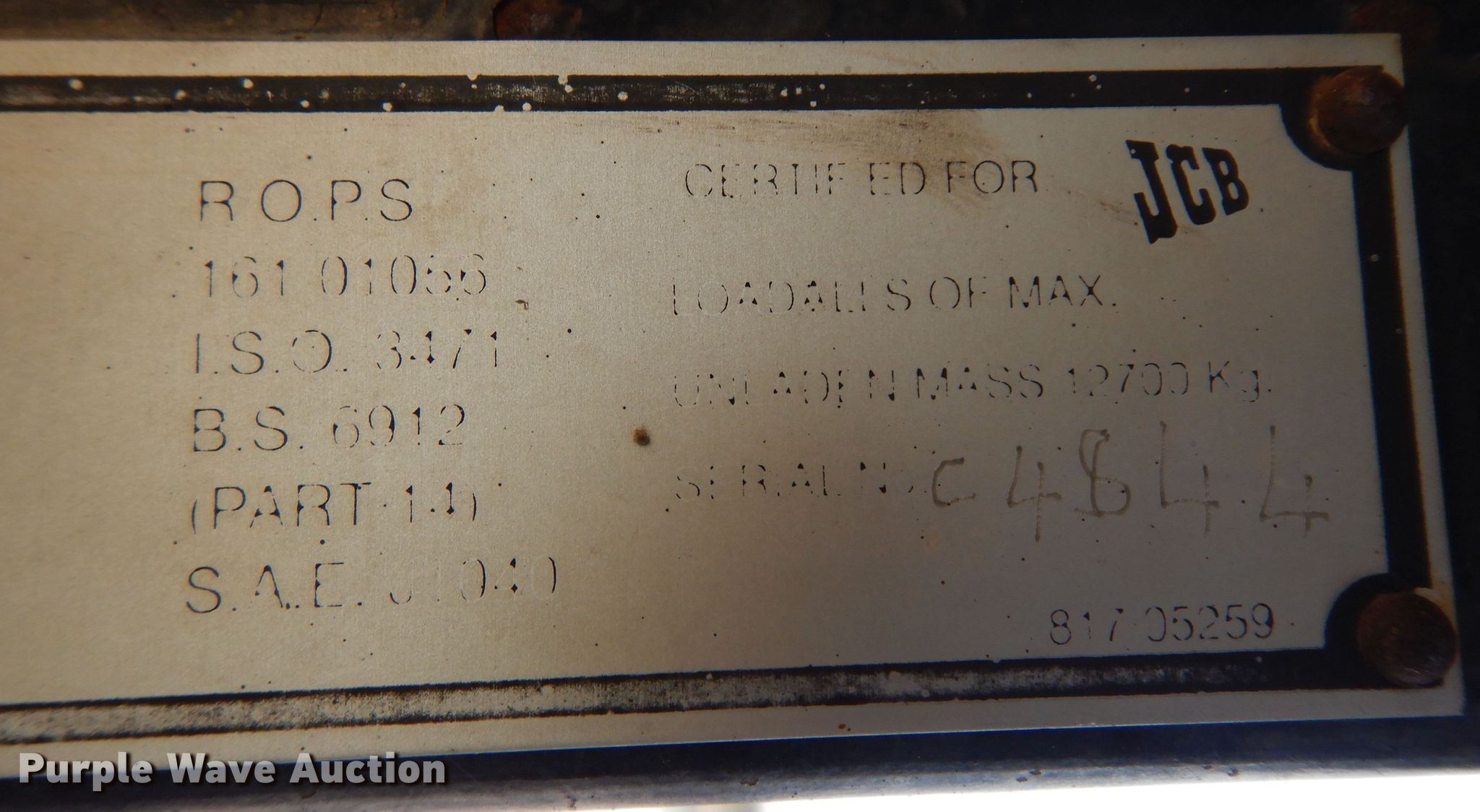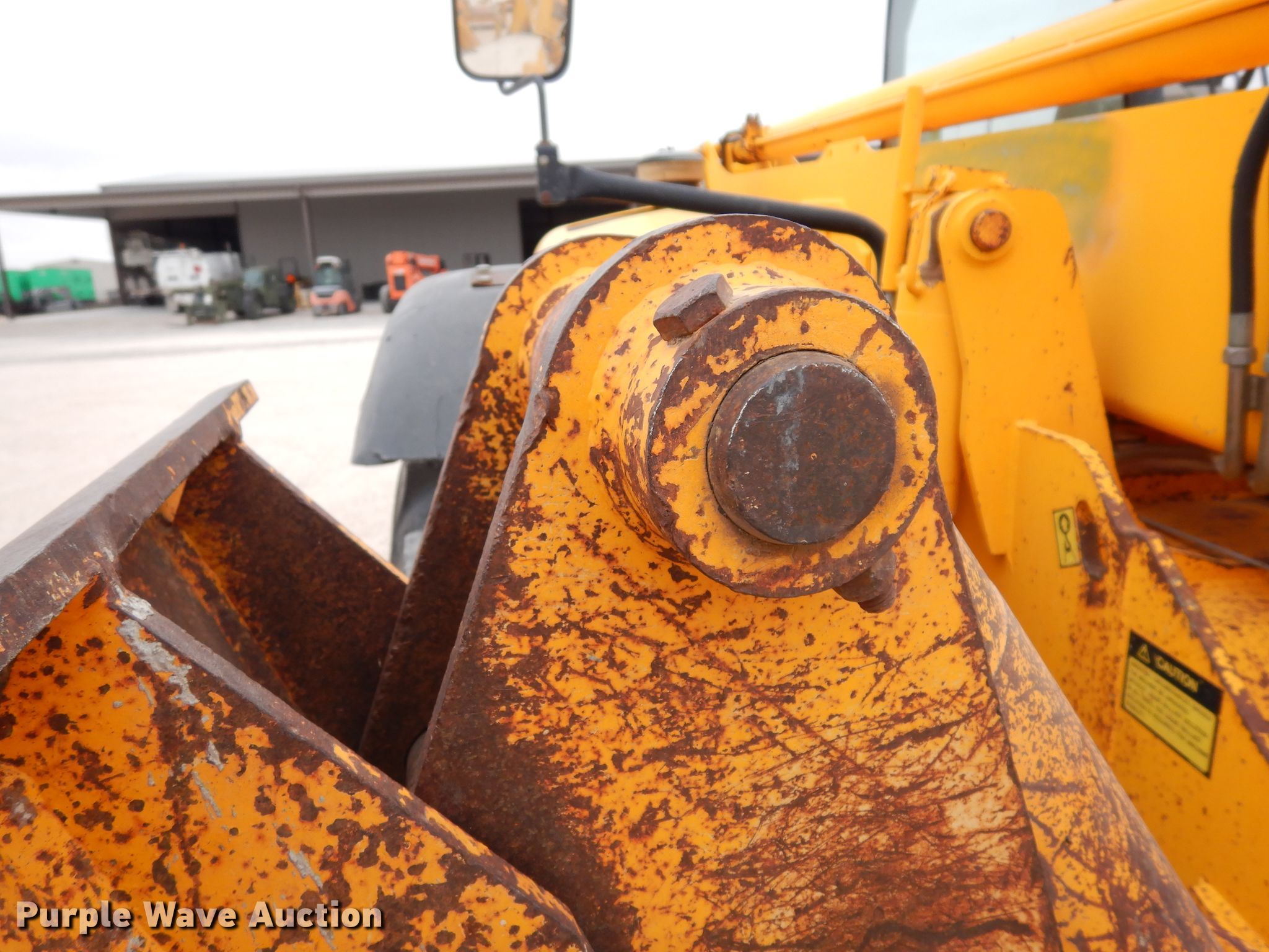 1999 JCB 550 telehandler. Hours: 5,805 on meter, Serial: SLP55000XE0775777. Engine JCB, Cylinders: 4, Fuel type: Diesel. Transmission Powershift, 4F - 4R, Four wheel drive. Operators station OROPS, Steering: Crab, Four wheel. Features Boom stages: 3, Fork length: 48", Bucket JCB, Width: 96", Hydraulic outriggers, Quick attach: Manual, Bucket size: 96". Tires Size: 17.5-25. 587 US HWY 180W. Seminole, TX 79360