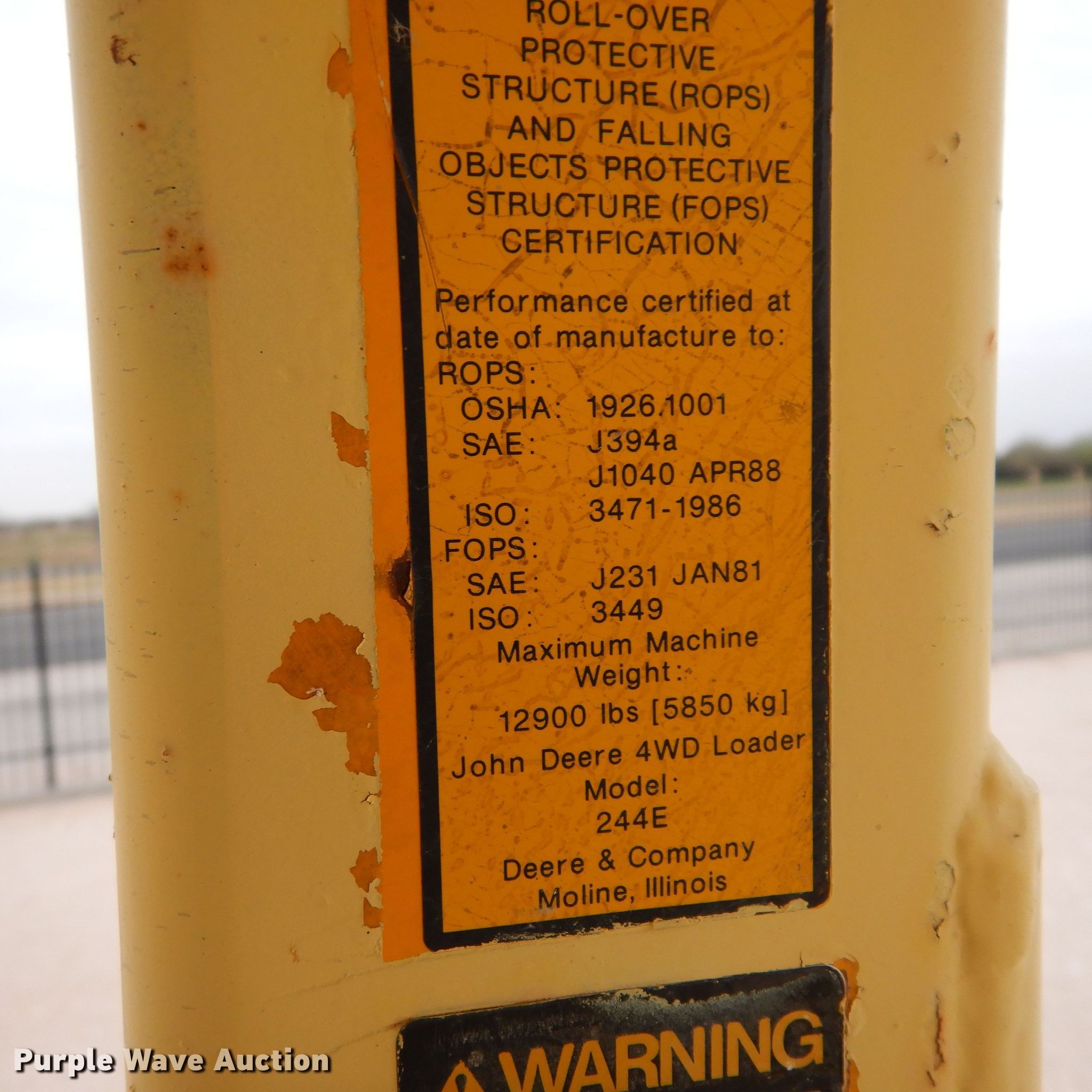 Purple Wave is selling a used Wheel Loader in Texas. This item is a 1991 John Deere 244E wheel loader with the following: Hours: 9,516 on meter, Serial: T6244EB000019