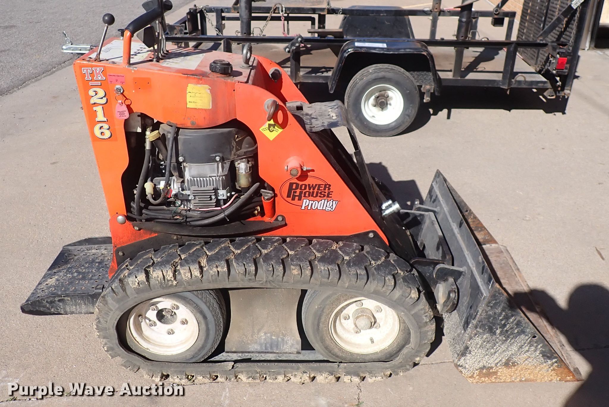 Purple Wave is selling a used Compact Utility Loader in Kansas. This item is a Powerhouse Prodigy TK216 compact utility loader with trailer with the following: Serial: 052265