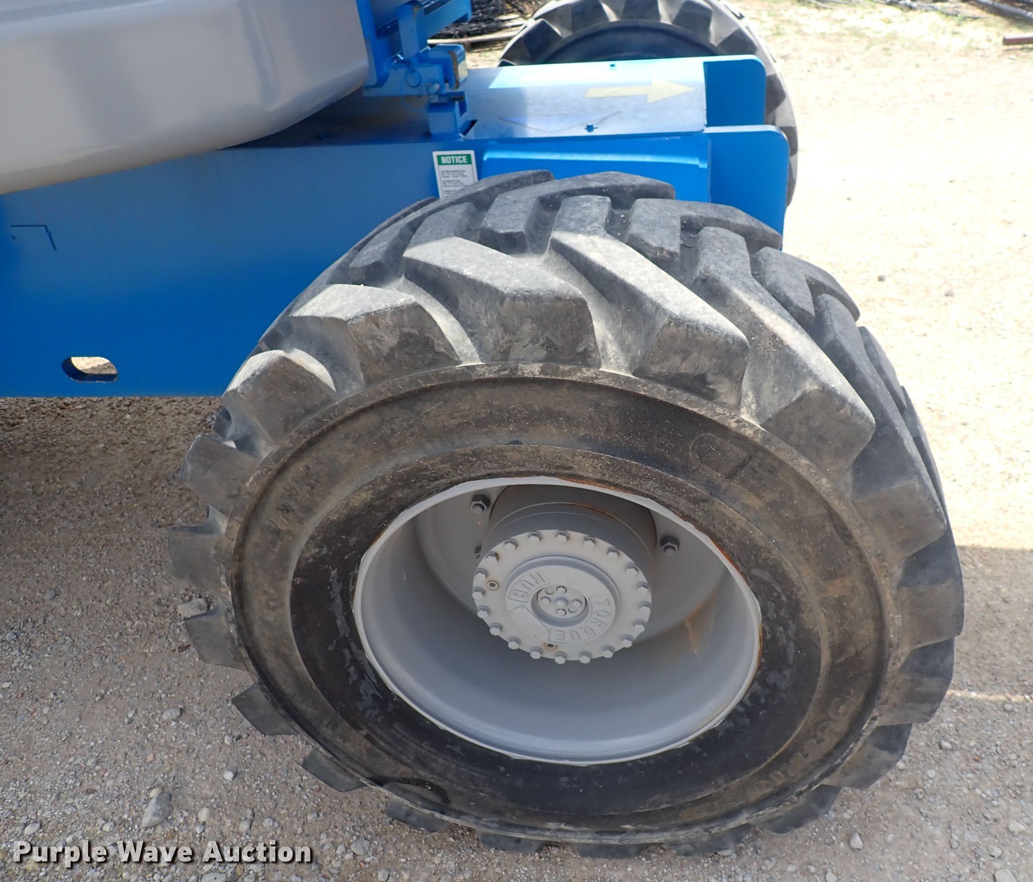 2001 Genie Z60/34 boom lift. Hours: 8,225 on meter, Serial: Z60-3268. Engine Ford LRG-425I-6007-Z, Cylinders: 4, Fuel type: Dual fuel. Chassis Four wheel drive. Features Articulating boom, Rough terrain, Maximum lift capacity: 500 lbs, Maximum reach length: 34', Maximum lift height: 60', Platform: 70" L x 28" W, AC power outlet, Controls: Platform, Ground, Platform rotation: Hydraulic. Tires Tire size: IN385/65D19.5. Notes Hydraulic leak, Lift cylinder issues. Snodgrass and Sons Construction. Wichita, KS 67204