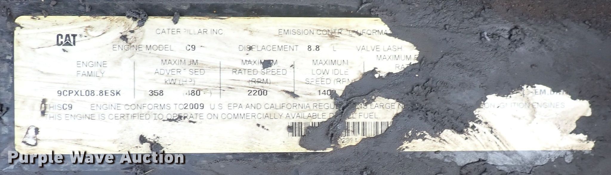 2009 Caterpillar 336D L excavator. Hours: 13,398 on meter, Serial: 0336DLW3K00667, Unit #: 20.508L. Engine Caterpillar C9, Displacement: 8.8L, Cylinders: 6, Fuel type: Diesel, HP: 480. Transmission Hydrostatic. Operators station EROPS, AC, Heat. Features Auxiliary hydraulics, Boom Standard, Stick Stick length: 12' 10", Quick coupler: Hydraulic Caterpillar 330DB, Thumb: Hydraulic, Bucket Caterpillar, Width: 55", Cutting edge: Bolt on, Teeth: 5. Tracks Width: 33.5", Steel, Grouser pads: Triple. Sherwood Construction. 5407 N 145th E Ave. Owasso, OK 74055