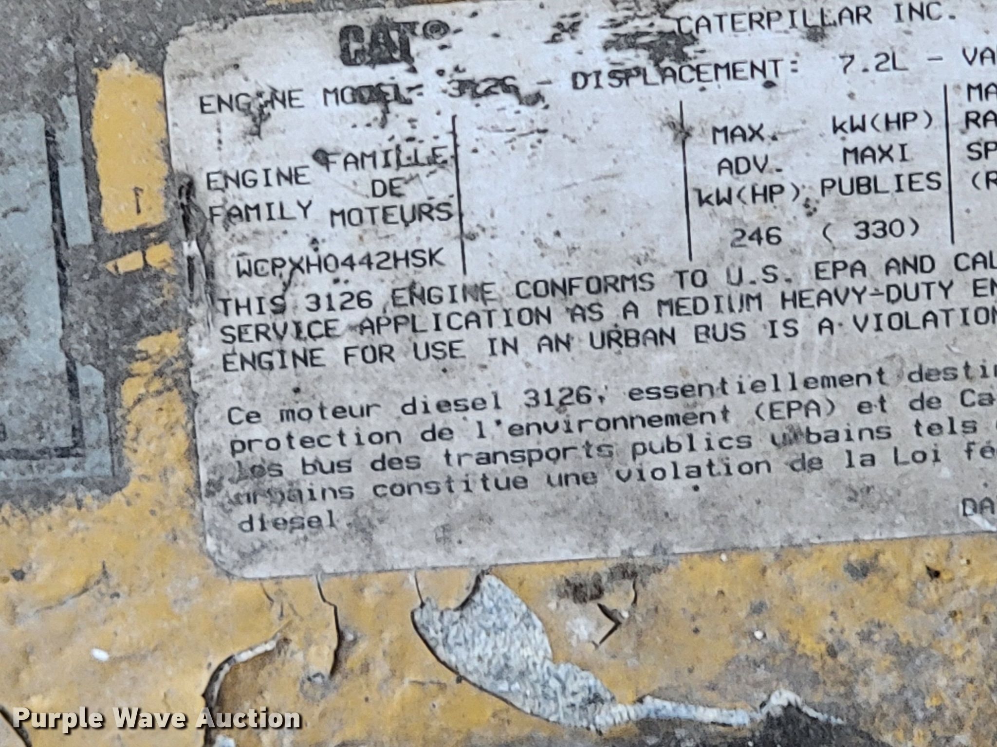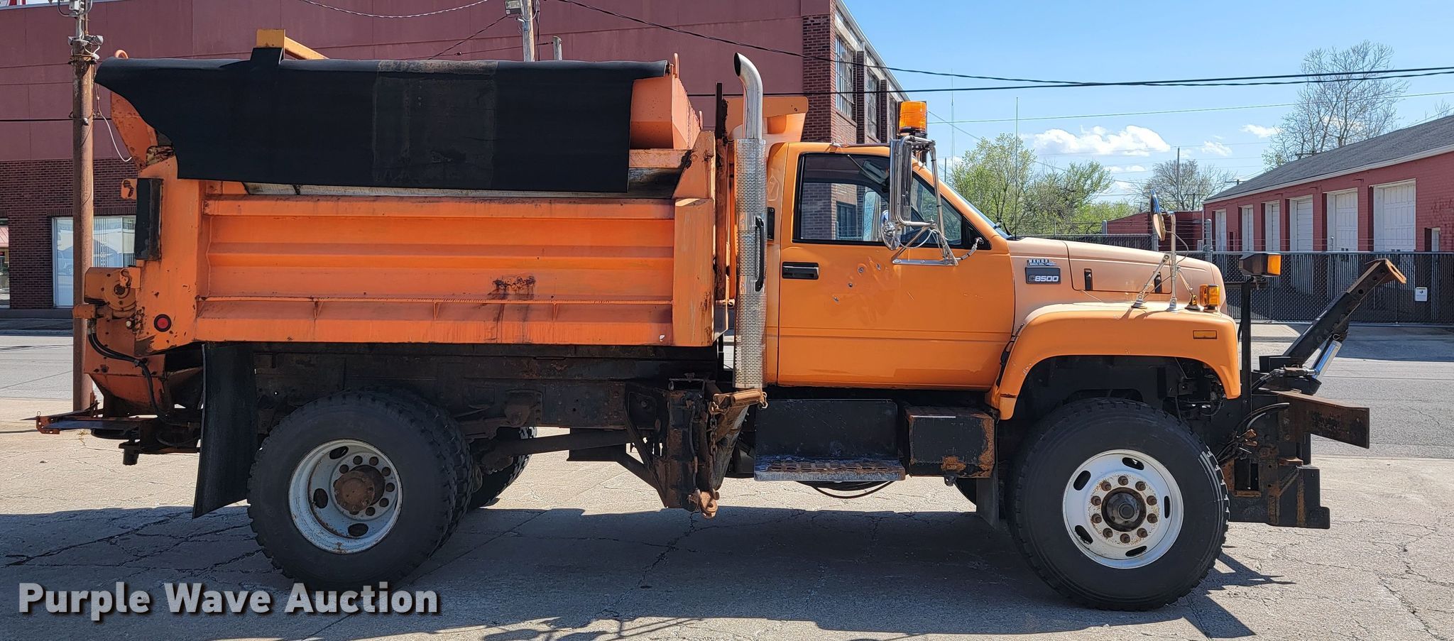 1999 Chevrolet C7H042 dump truck. Miles: 89,313 on odometer, Hours: 9,820 on meter, VIN: 1GBP7H1CXXJ102061. Engine Caterpillar 3126, Displacement: 7.2L, Cylinders: 6, Fuel type: Diesel. Transmission Automatic. Chassis Axles: Single, Suspension: Spring, Brakes: Air, Front mount PTO, Wheelbase: 158". Interior AC, Heat. Features Dump bed 10' L x 8' W, Side height: 32", Bed type: Steel, Ram: Single , End gate: Air operated, Plow Schmidt, Width: 132", Spreader. Tires Size: 315/80R22.5. Notes Air leak. Missouri title. Title distribution may be delayed up to 14 days from verification of funds. Nip Kelley Construction. 41 N Sprigg St. Cape Girardeau, MO 63701
