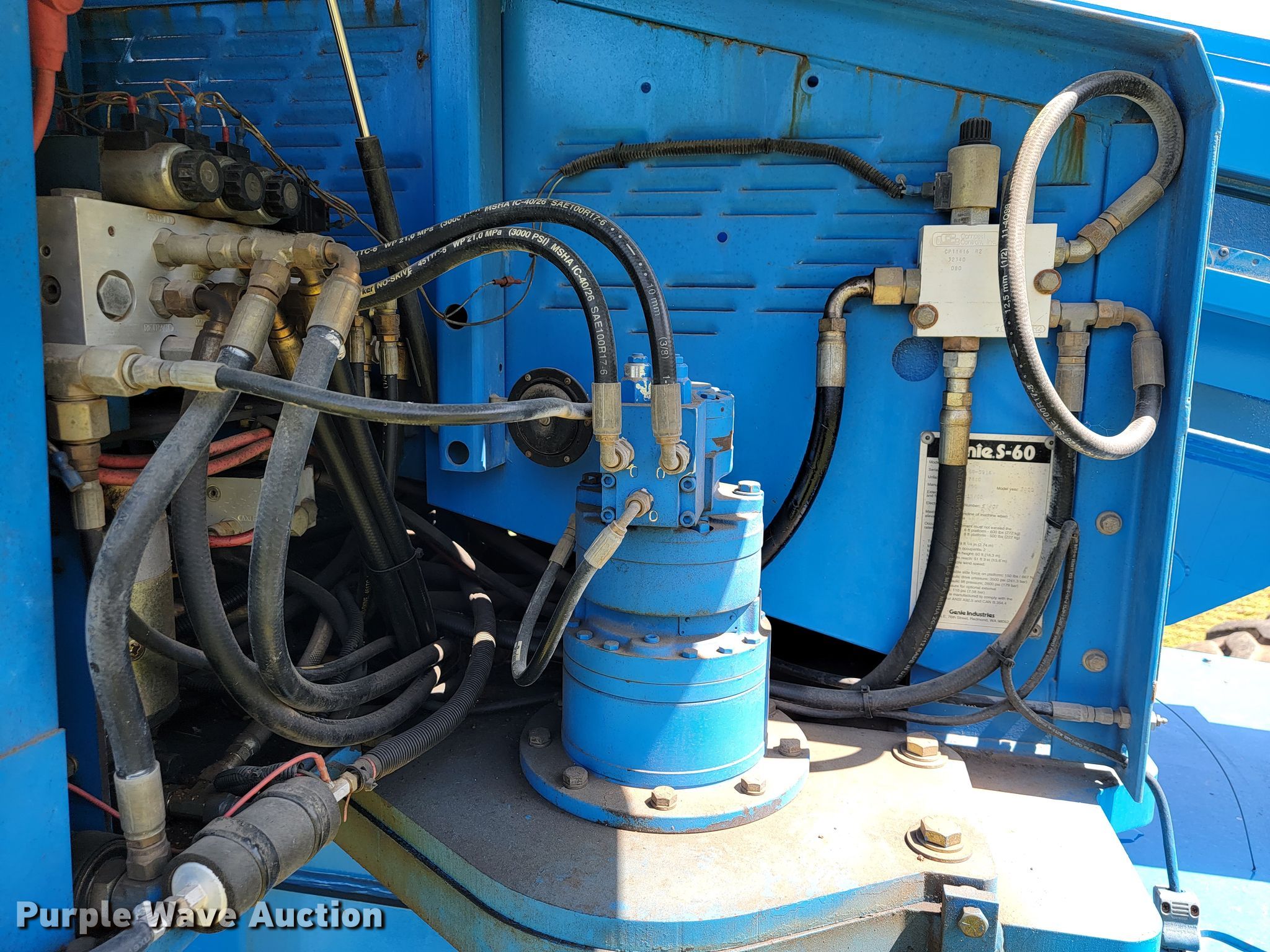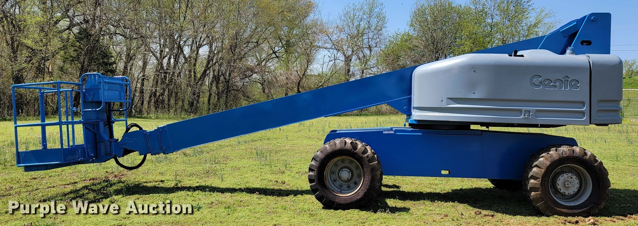 Purple Wave is selling a used Boom Lift in Arkansas. This item is a 2000 Genie S60 boom lift with the following: Hours: 4,701 on meter, Serial: S60-5914