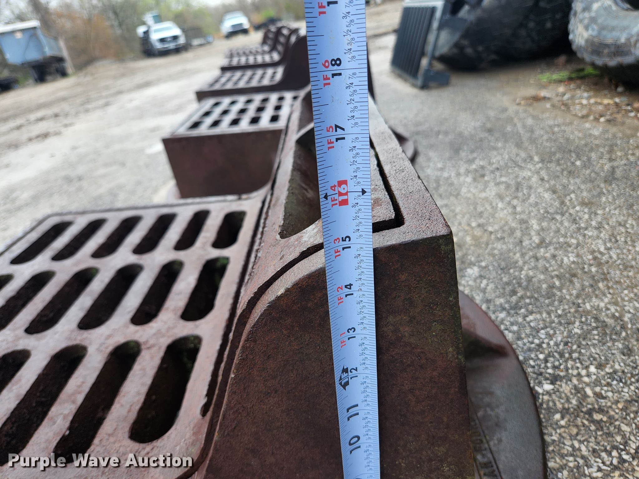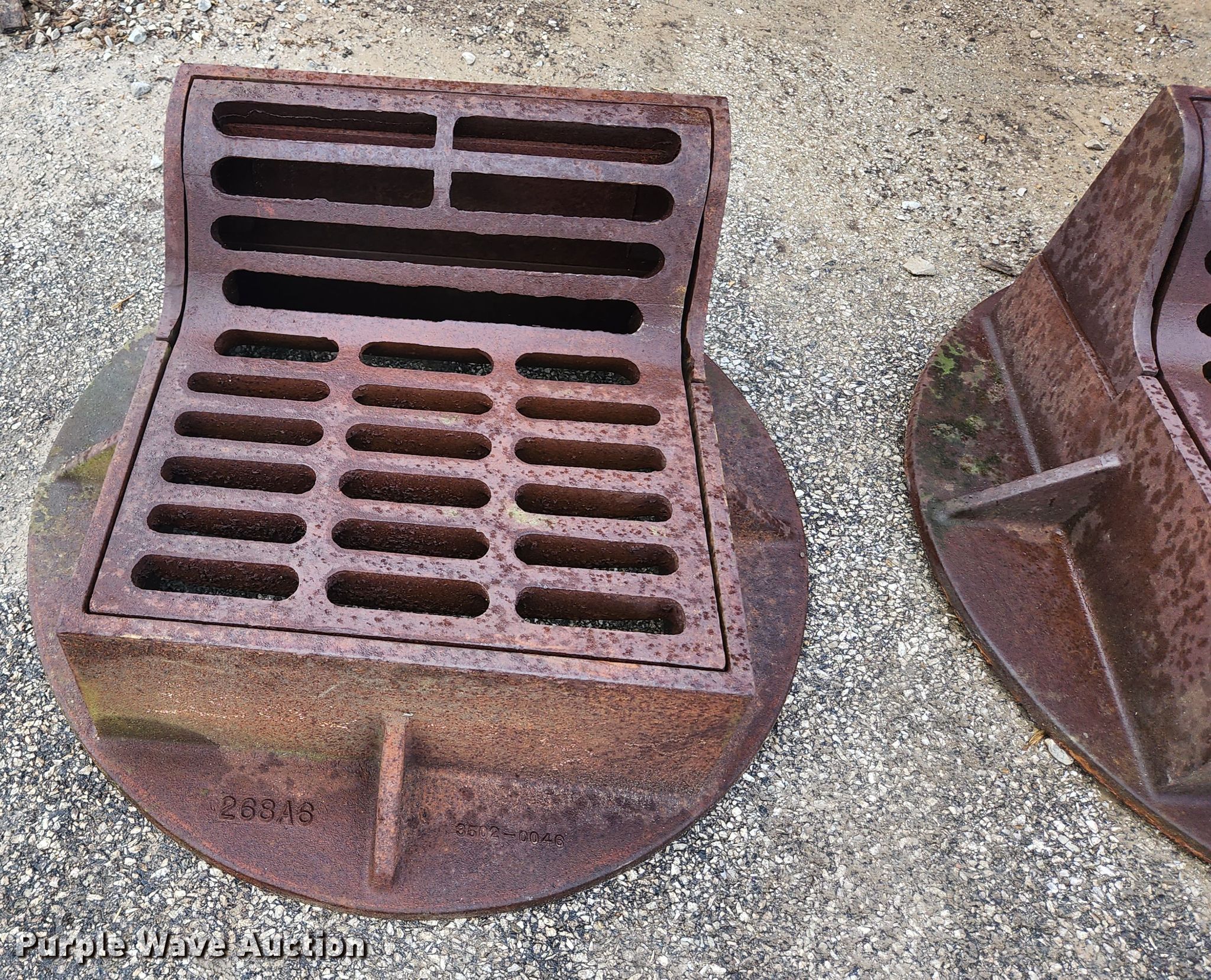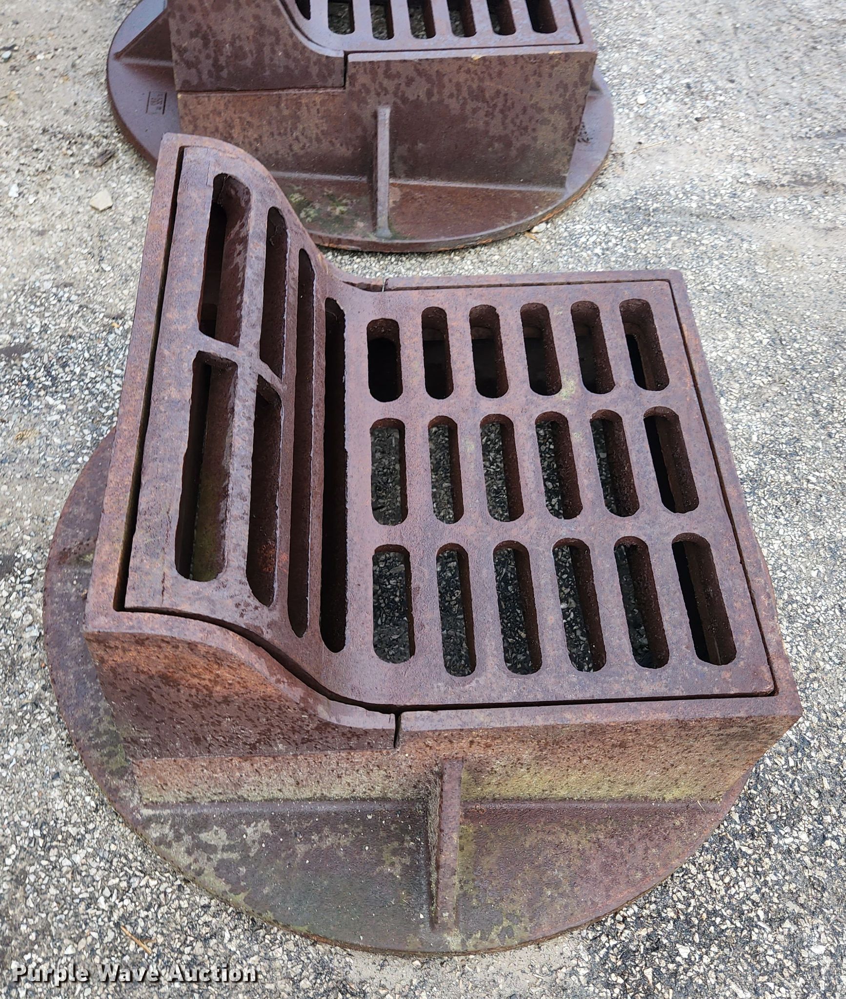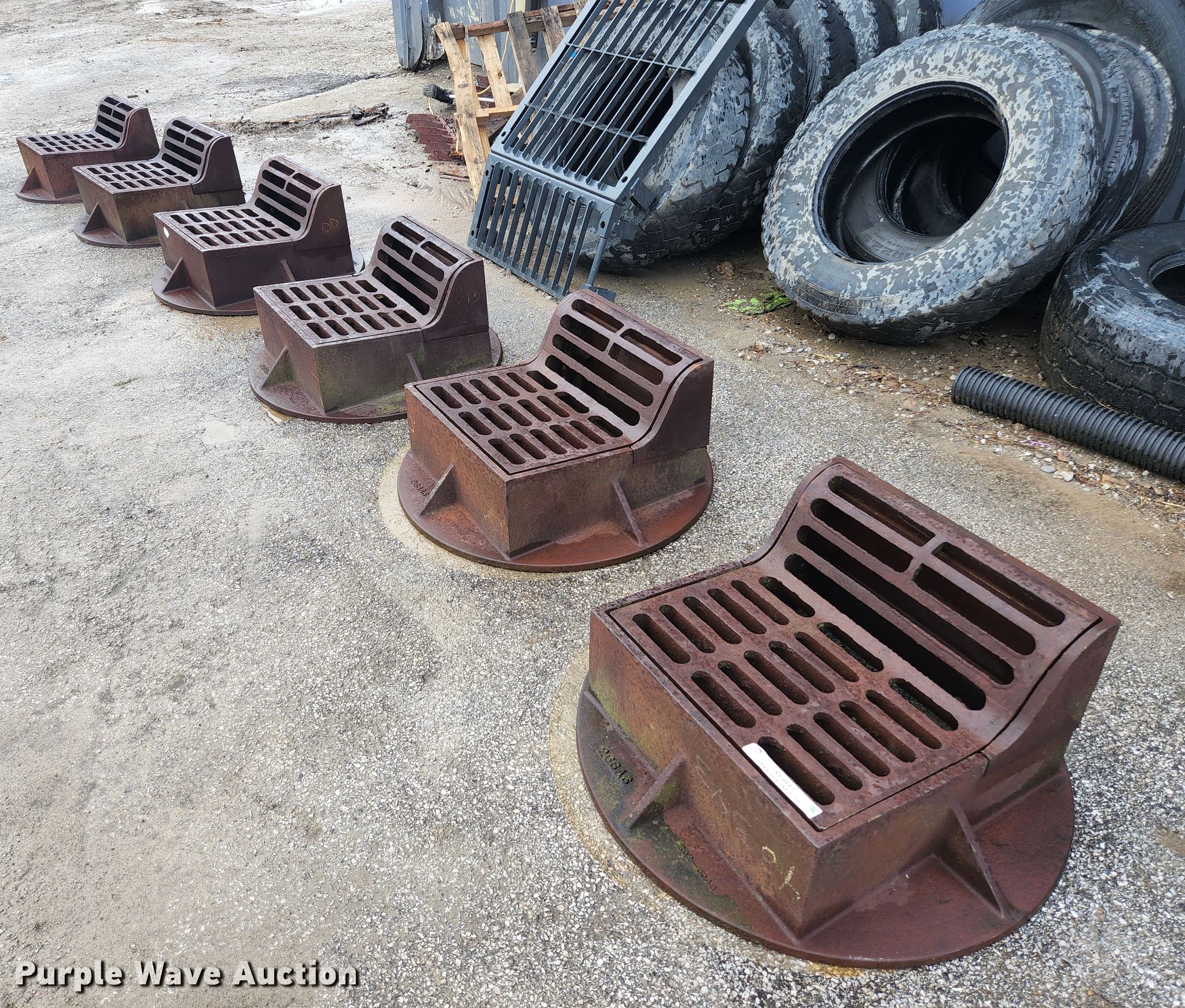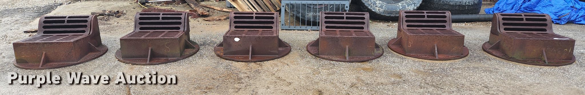 Purple Wave is selling a used Building Materials in Illinois. This item is a (6) Neenah Foundry curb inlet sewer gates with the following: 36" diameter base