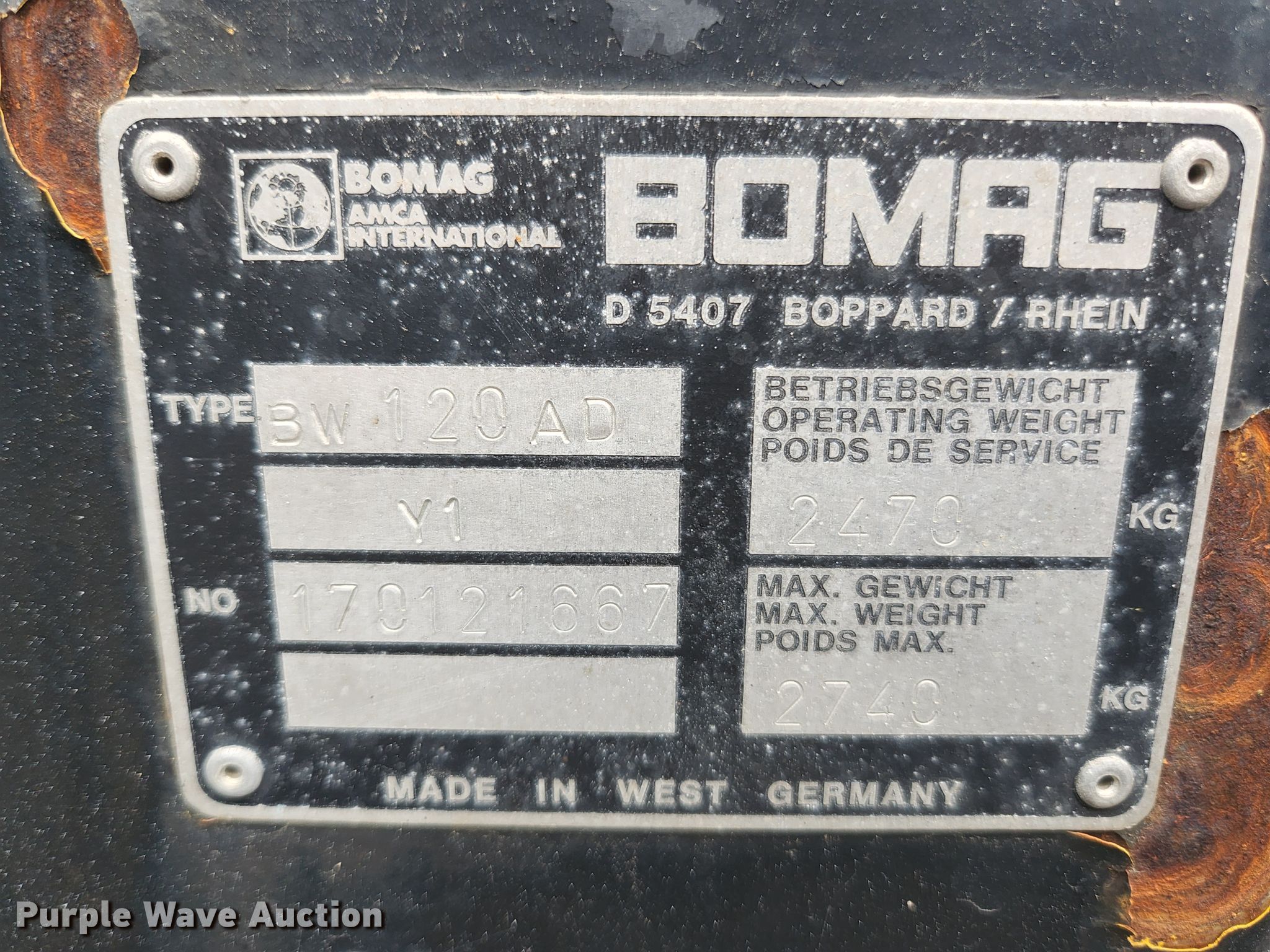 Purple Wave is selling a used Double Drum Roller Compactor in Illinois. This item is a Bomag BW120AD double drum vibratory roller with the following: Hours: 1,813 on meter, Serial: 170121667