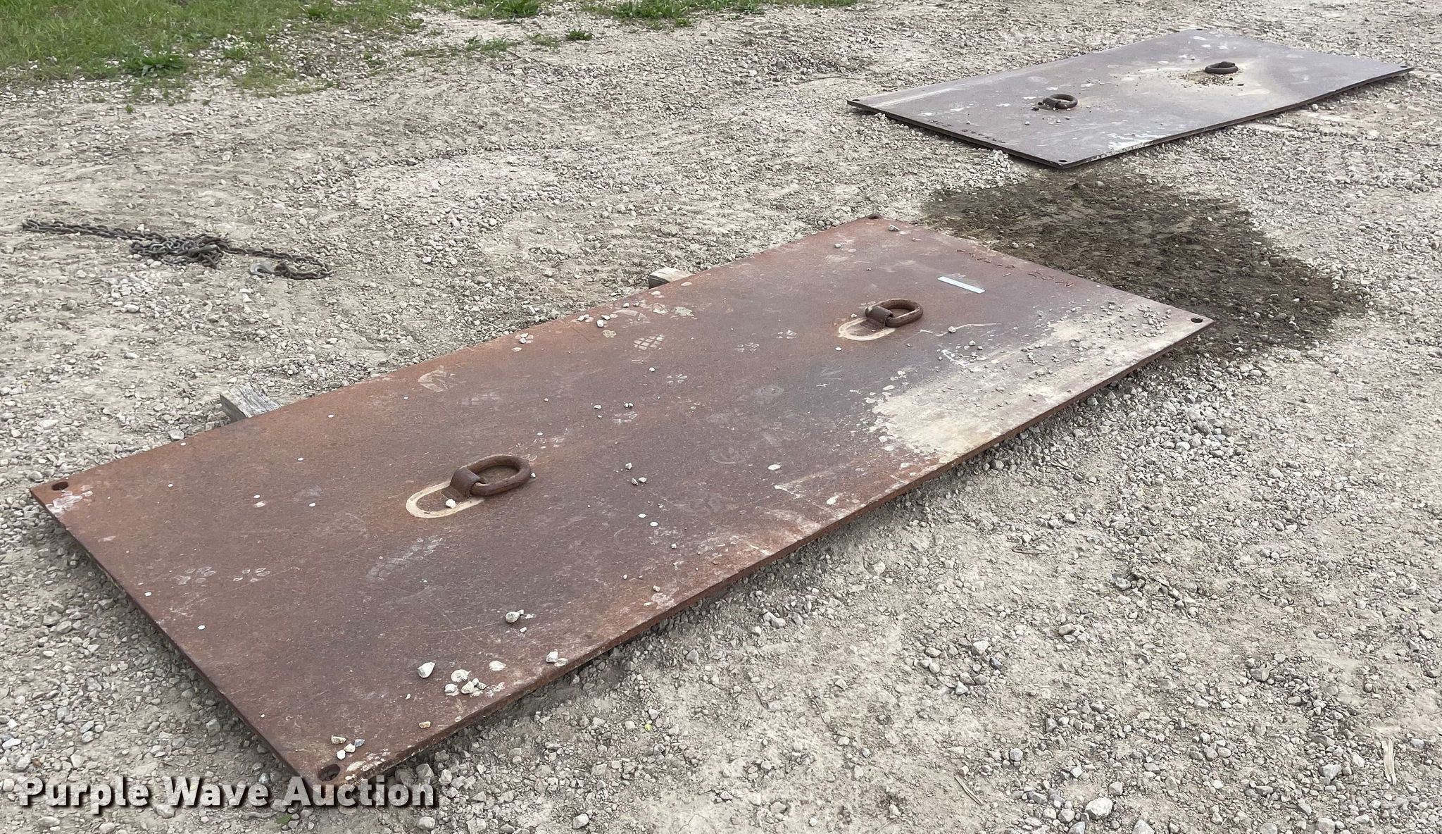 (2) steel road plates. 8' L x 4' W x 3/4" thick. Mitchell's Construction. 415 W Wilson St. Ottawa, KS 66067