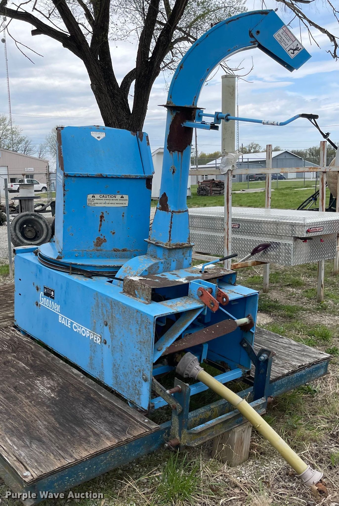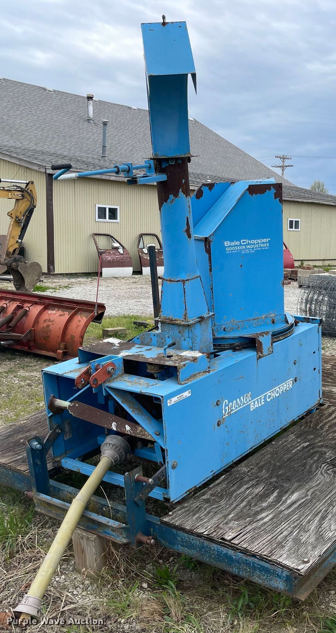 Purple Wave is selling a used Lawn and Garden in Kansas. This item is a Goossen bale chopper with the following: Grinding tub: 20" x 17", 540 PTO, Three point hitch