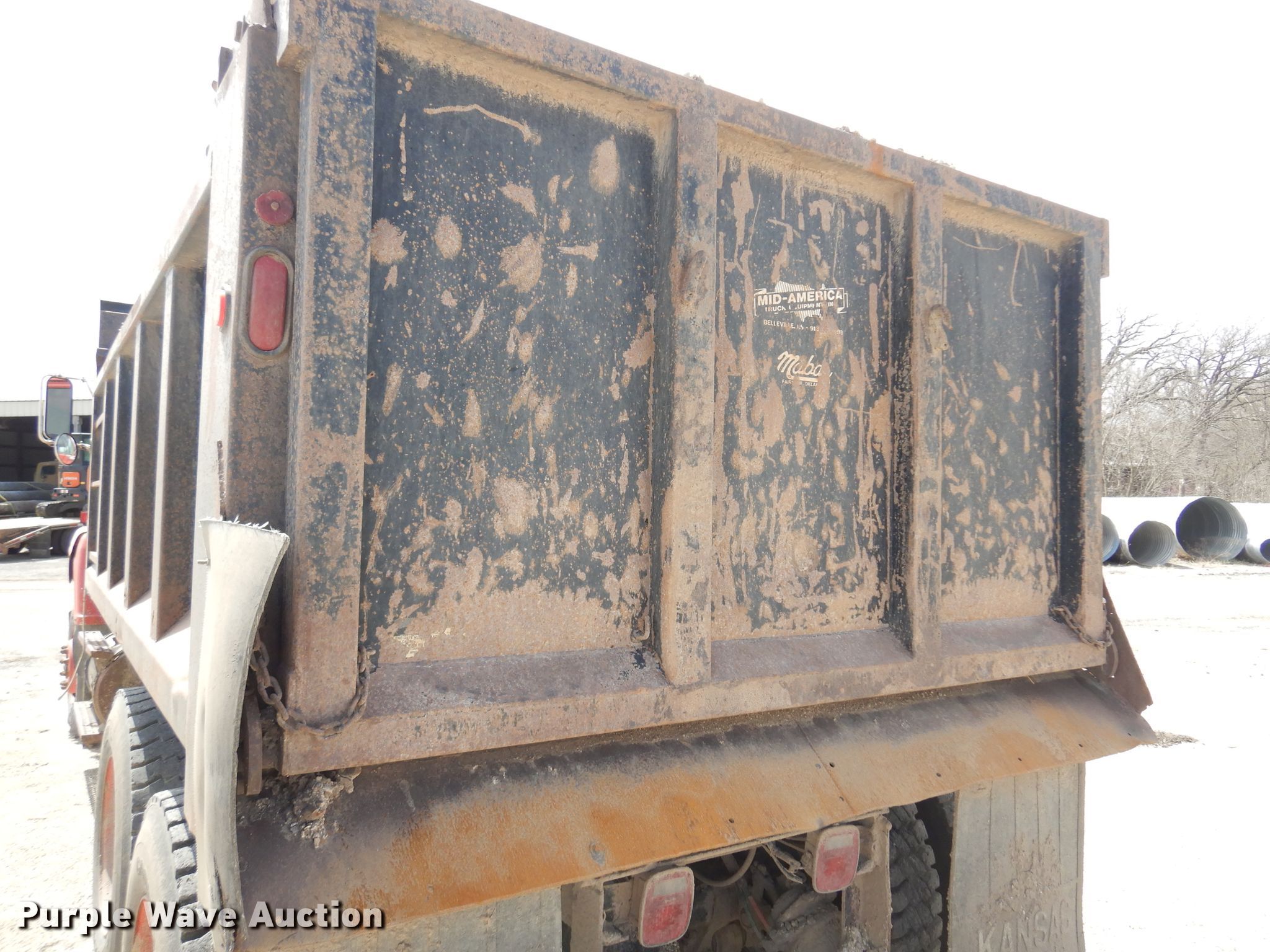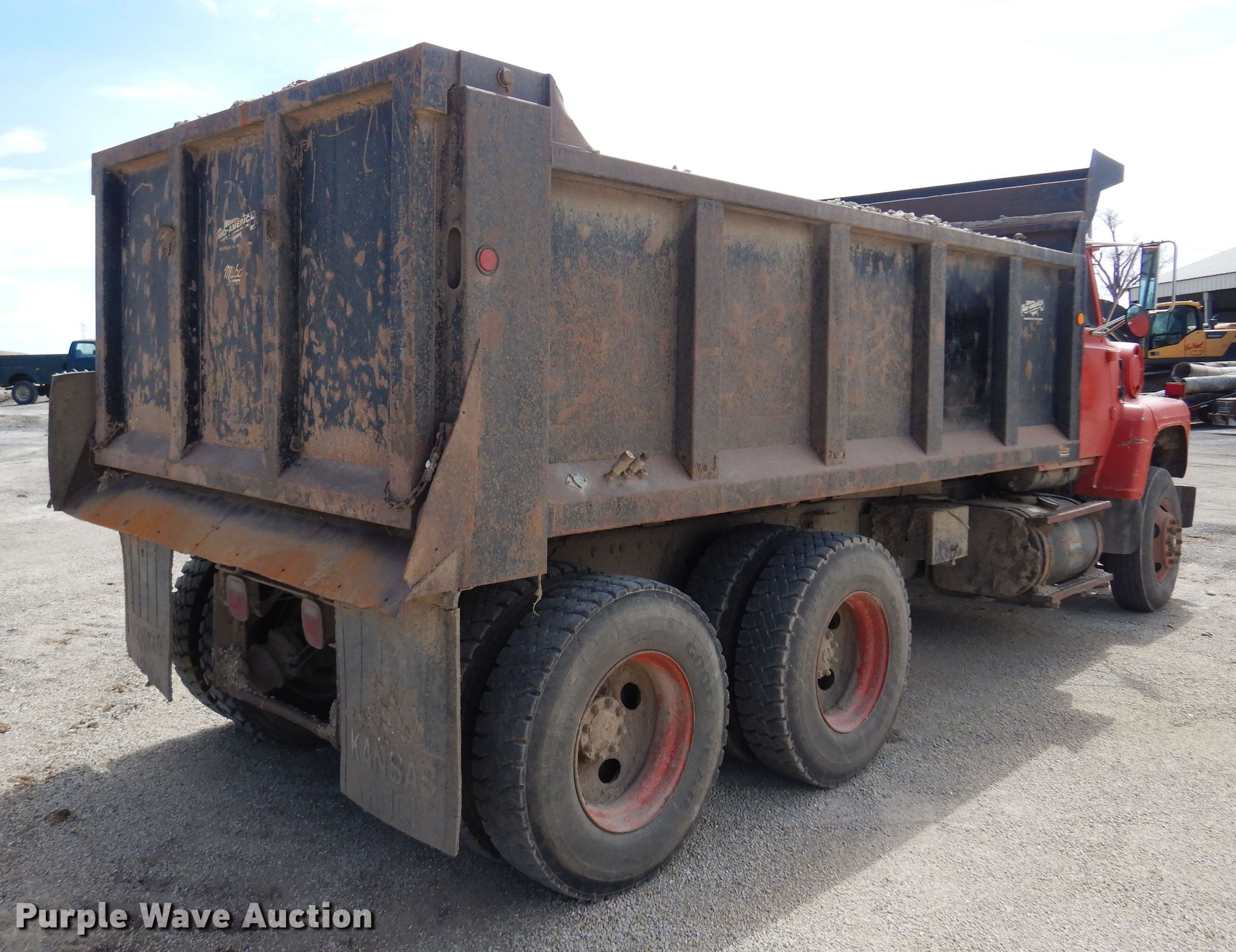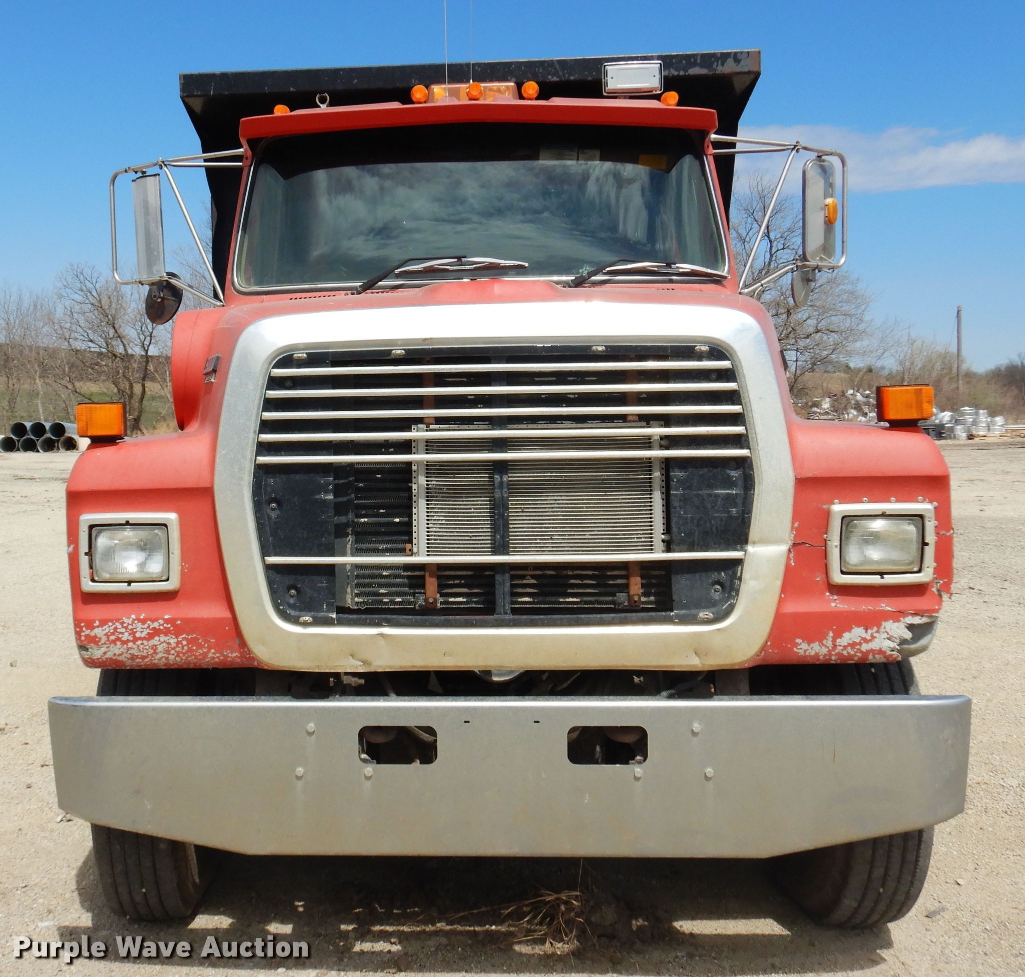 1995 Ford LNT8000 dump truck. Miles: 281,071 on odometer, VIN: 1FDYW82E1SVA08988. Engine Cummins, Displacement: 8.3L, Cylinders: 6, Fuel type: Diesel. Transmission Manual, Speed: 10. Chassis Axles: Tandem, Differential lock: Full, Suspension: Spring, Brakes: Air, PTO. Interior AC, Heat. Features Dump bed 15' 3" L x 96" W, Side height: 40", Bed type: Steel, Ram: Single , End gate: Manual. Tires Size: 11R22.5. Kansas title. Morris County Highway Dept. Council Grove, KS 66846