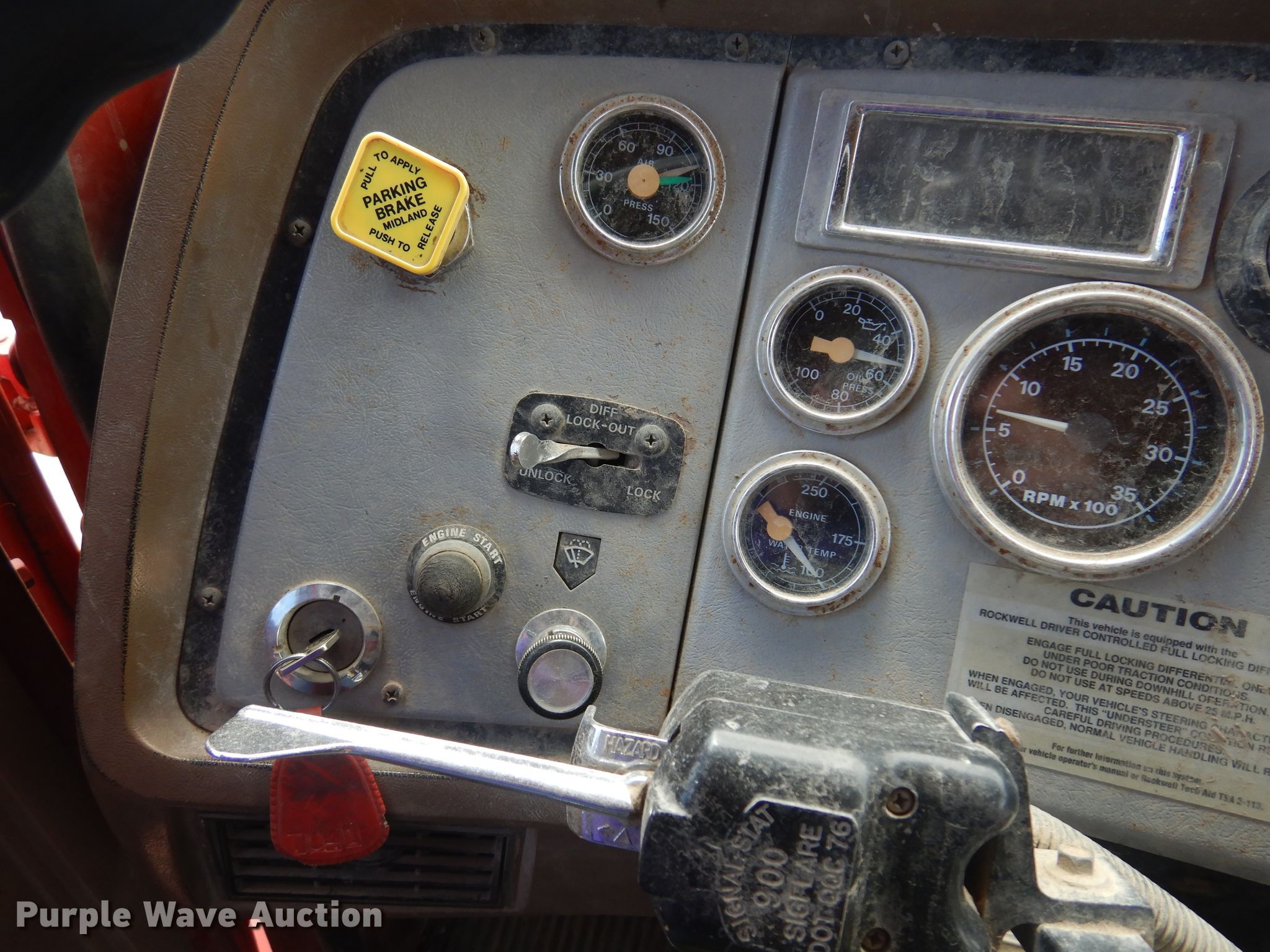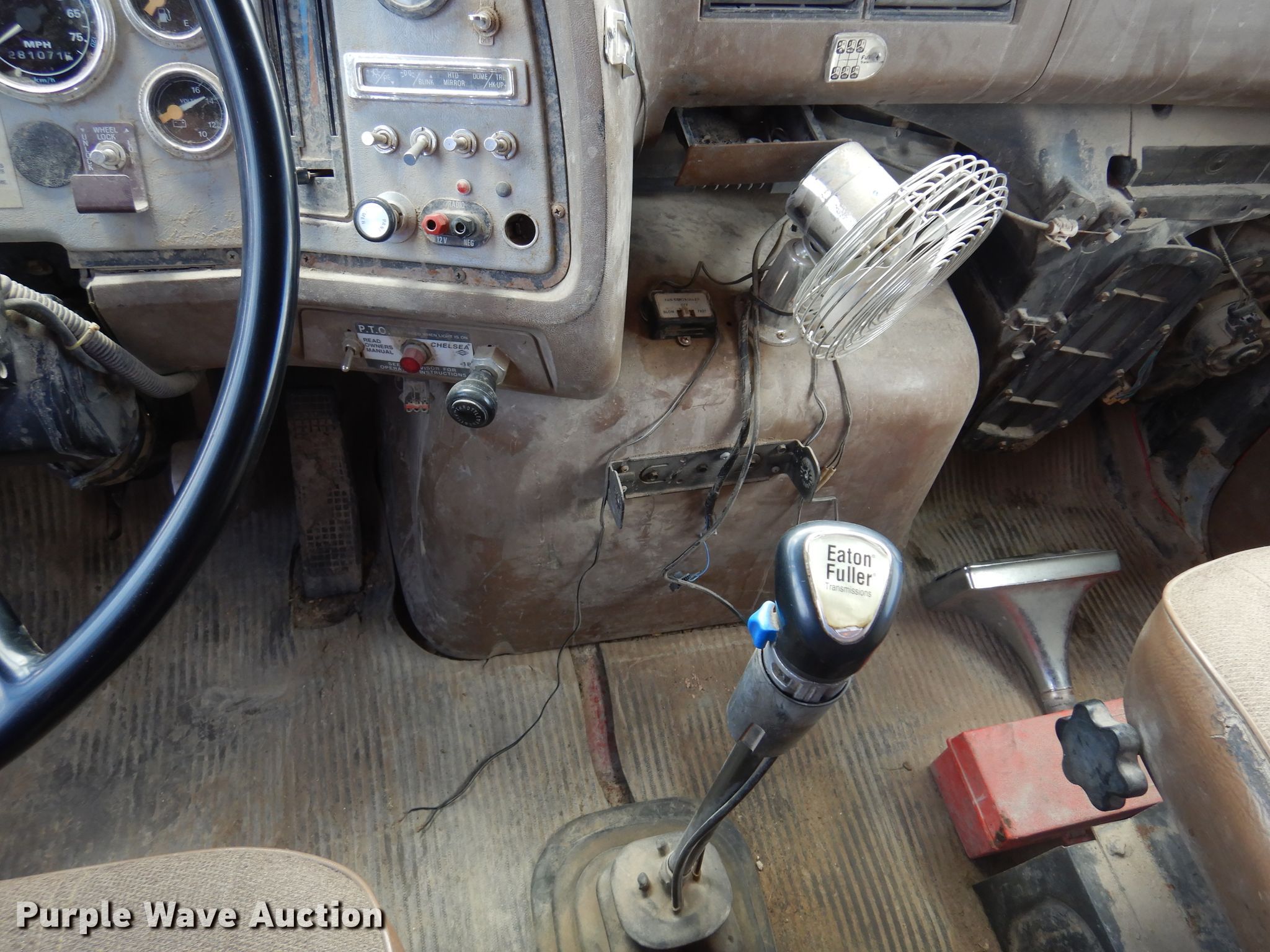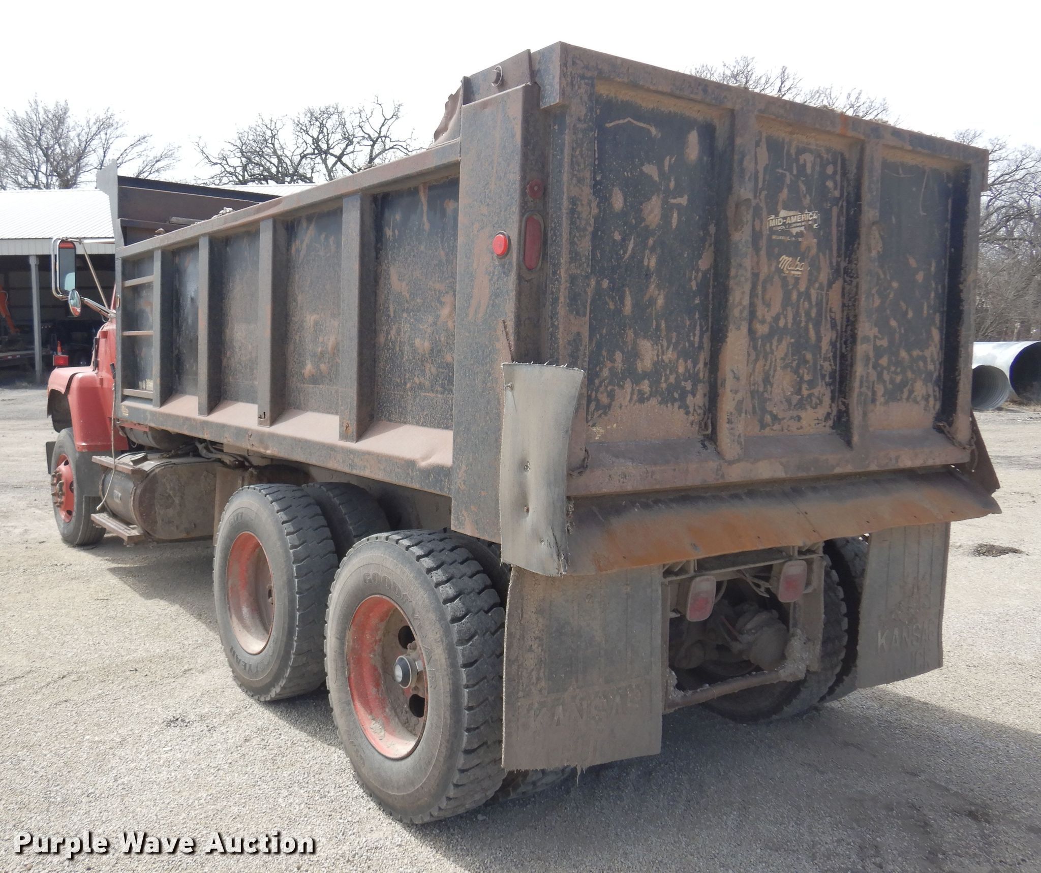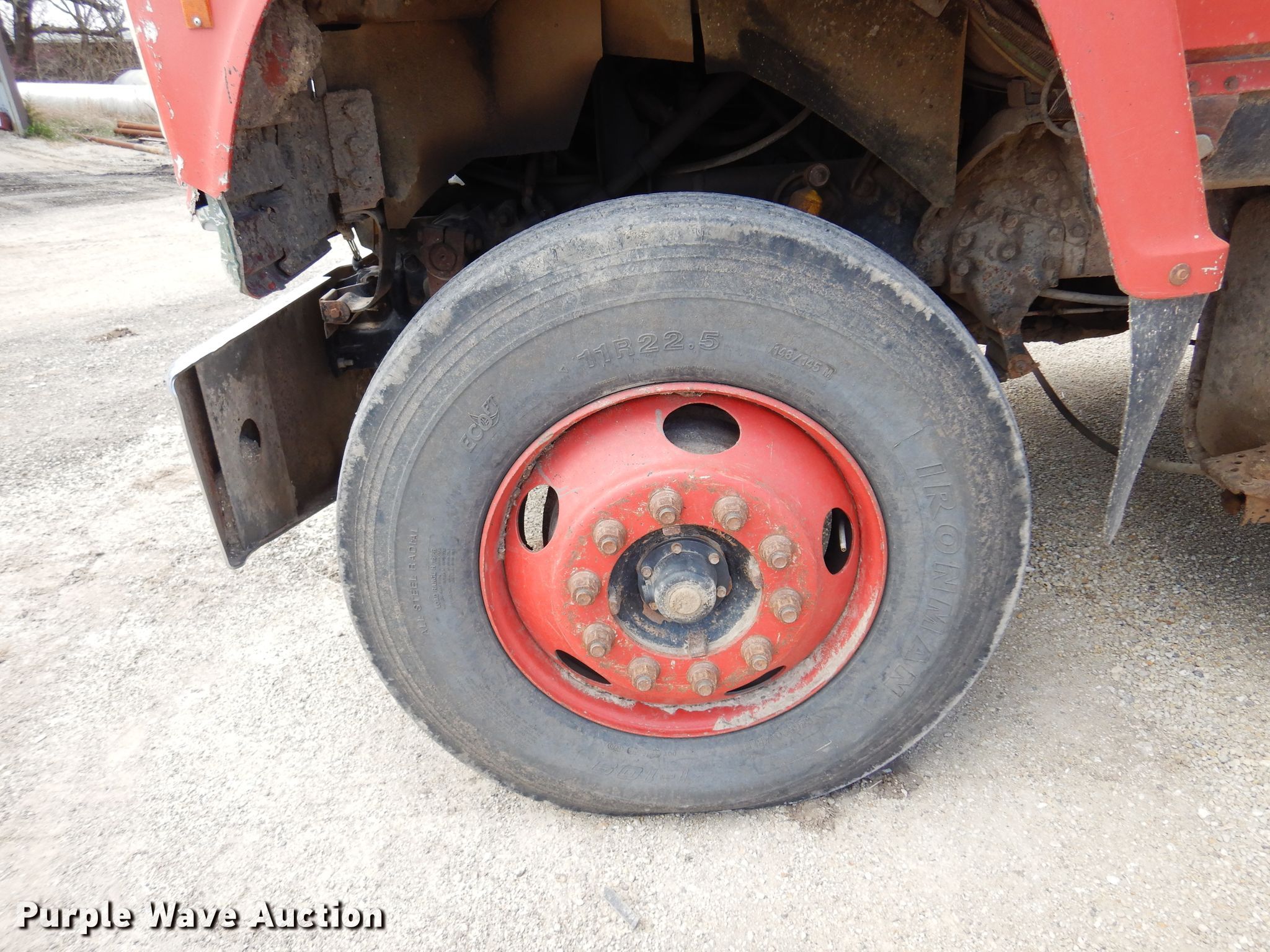 1995 Ford LNT8000 dump truck. Miles: 281,071 on odometer, VIN: 1FDYW82E1SVA08988. Engine Cummins, Displacement: 8.3L, Cylinders: 6, Fuel type: Diesel. Transmission Manual, Speed: 10. Chassis Axles: Tandem, Differential lock: Full, Suspension: Spring, Brakes: Air, PTO. Interior AC, Heat. Features Dump bed 15' 3" L x 96" W, Side height: 40", Bed type: Steel, Ram: Single , End gate: Manual. Tires Size: 11R22.5. Kansas title. Morris County Highway Dept. Council Grove, KS 66846