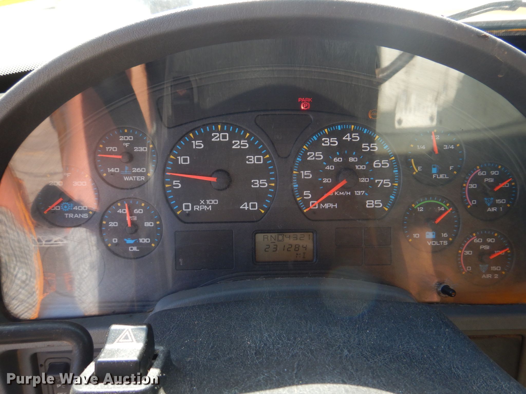2006 International 7400 dump truck. Miles: 231,284 on odometer, VIN: 1HTWHAZT46J244021, Unit #: 7533. Engine International 570, Displacement: 9.3L, Cylinders: 6, Fuel type: Diesel. Transmission Automatic. Chassis Axles: Tandem, Suspension: Walking beam, Brakes: Air, PTO, GVWR: 56,000 lbs. Interior AC, Heat, Heated mirrors, Power windows, Cruise control. Features Dump bed 13' L x 96" W, Side height: 36", Bed type: Steel, Roll tarp, Ram: Single , End gate: Air operated. Tires Front: 315/80R22.5, Rear: 11R22.5. Notes Dash warning indicator: ABS. Missouri title. Missouri Department of Transportation. 52 Business Highway US 54. Eldon, MO 65026