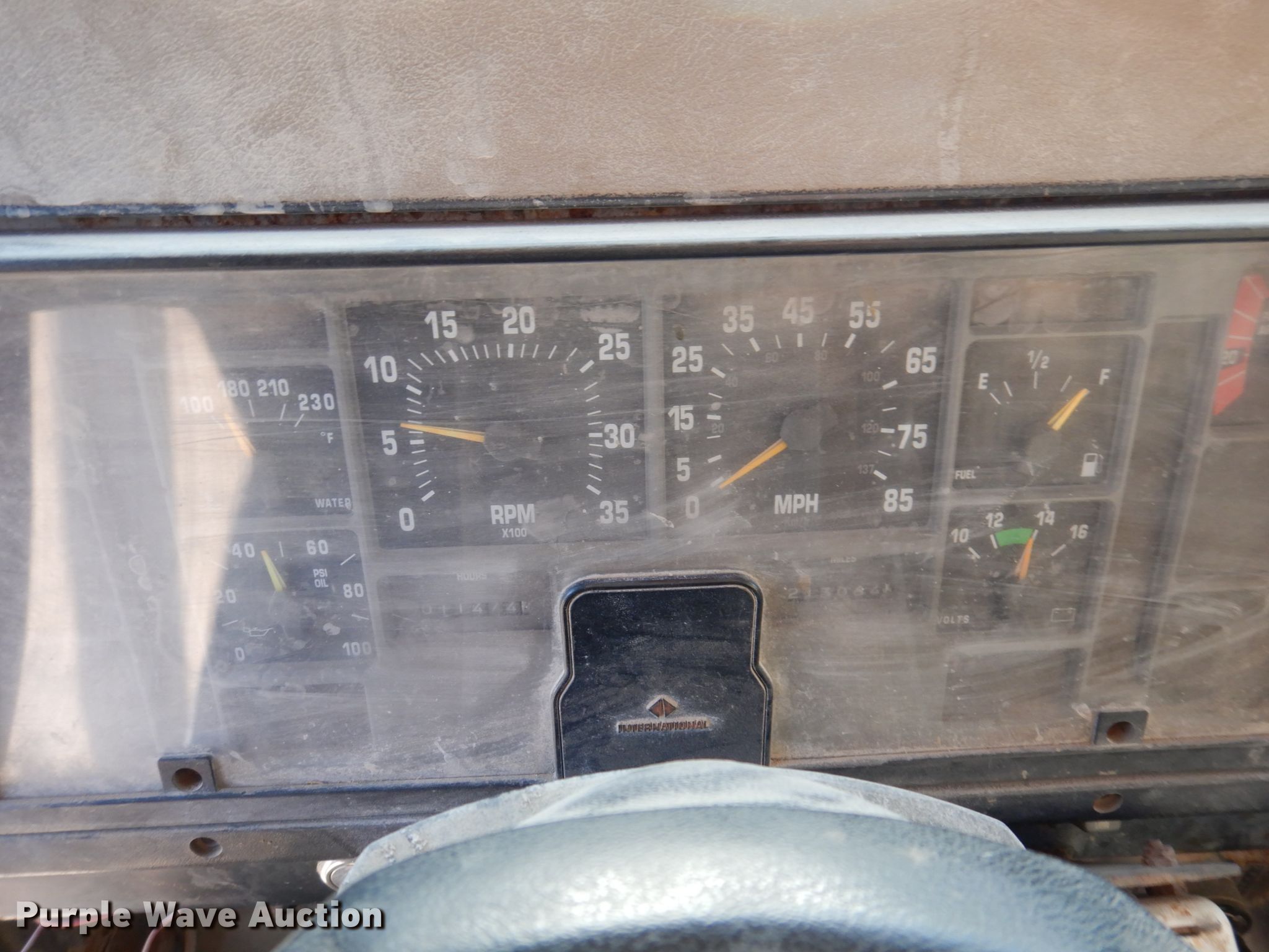 1993 International 4900 dump truck. Miles: 213,064 on odometer, Hours: 11,475 on meter, VIN: 1HTSDPNN8PH475727, Unit #: 86. Engine International E195, Displacement: 7.6L, Cylinders: 6, Fuel type: Diesel. Transmission Automatic. Chassis Axles: Single, Suspension: Spring, Brakes: Air, GVWR: 33,000 lbs FAWR: 12,000 lbs, RAWR: 21,000 lbs, Wheelbase: 170". Interior Heat, Heated mirrors, Brake controller. Features Dump bed 10' L x 8' W, Side height: 26", Side board height: 9", Bed type: Steel, End gate: Air operated. Tires Size: 11R22.5. Notes Possible oil leak, Windshield chipped or cracked. Iowa title. Seller is a government entity who will be assigning and distributing the title. Please contact the seller for distribution questions. Wayne County Secondary Roads. 713 2nd Ave. Corydon, IA 50060