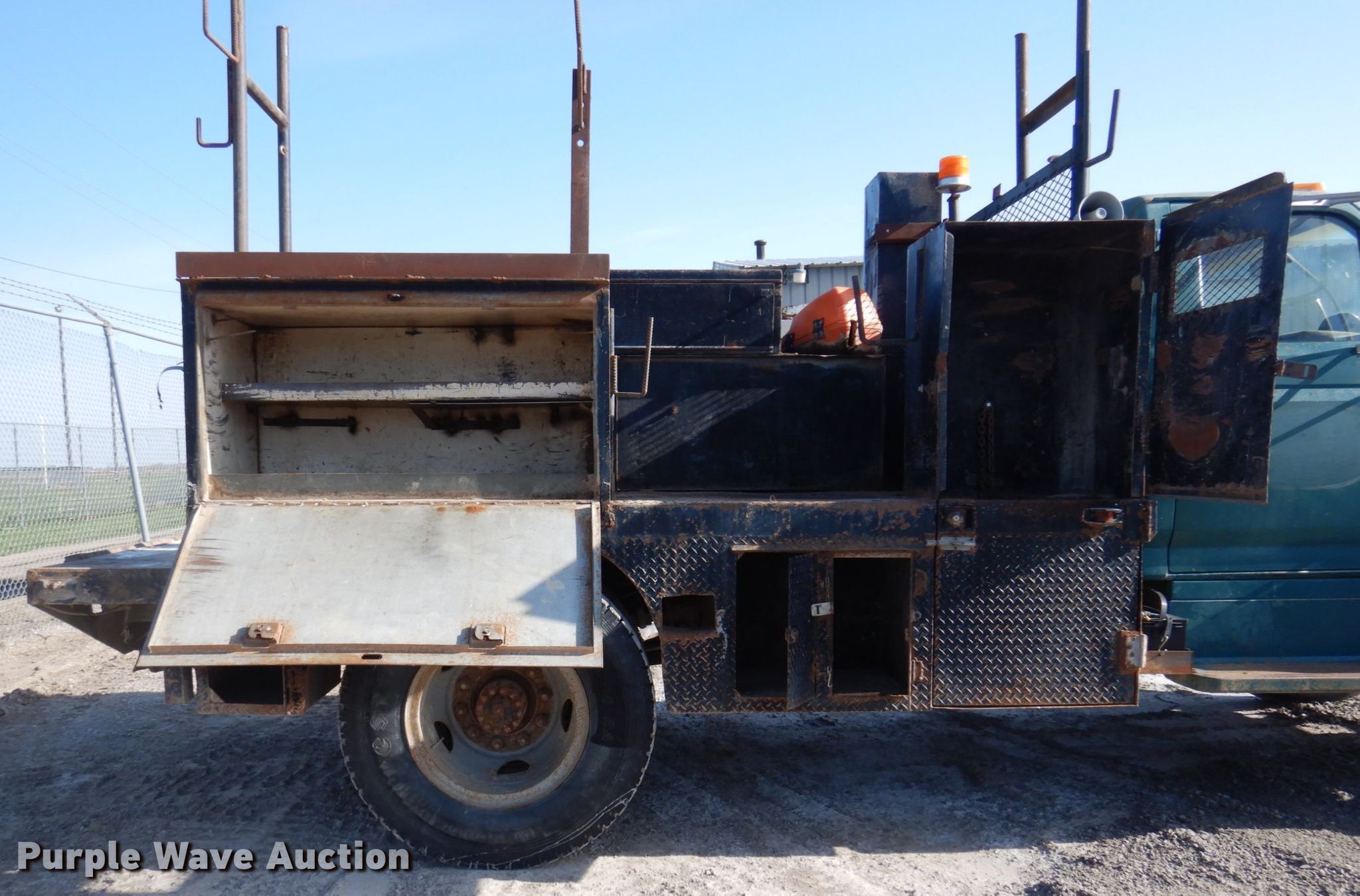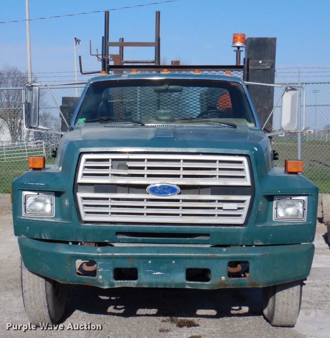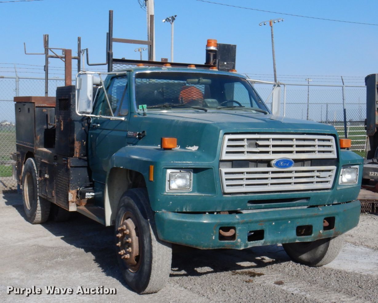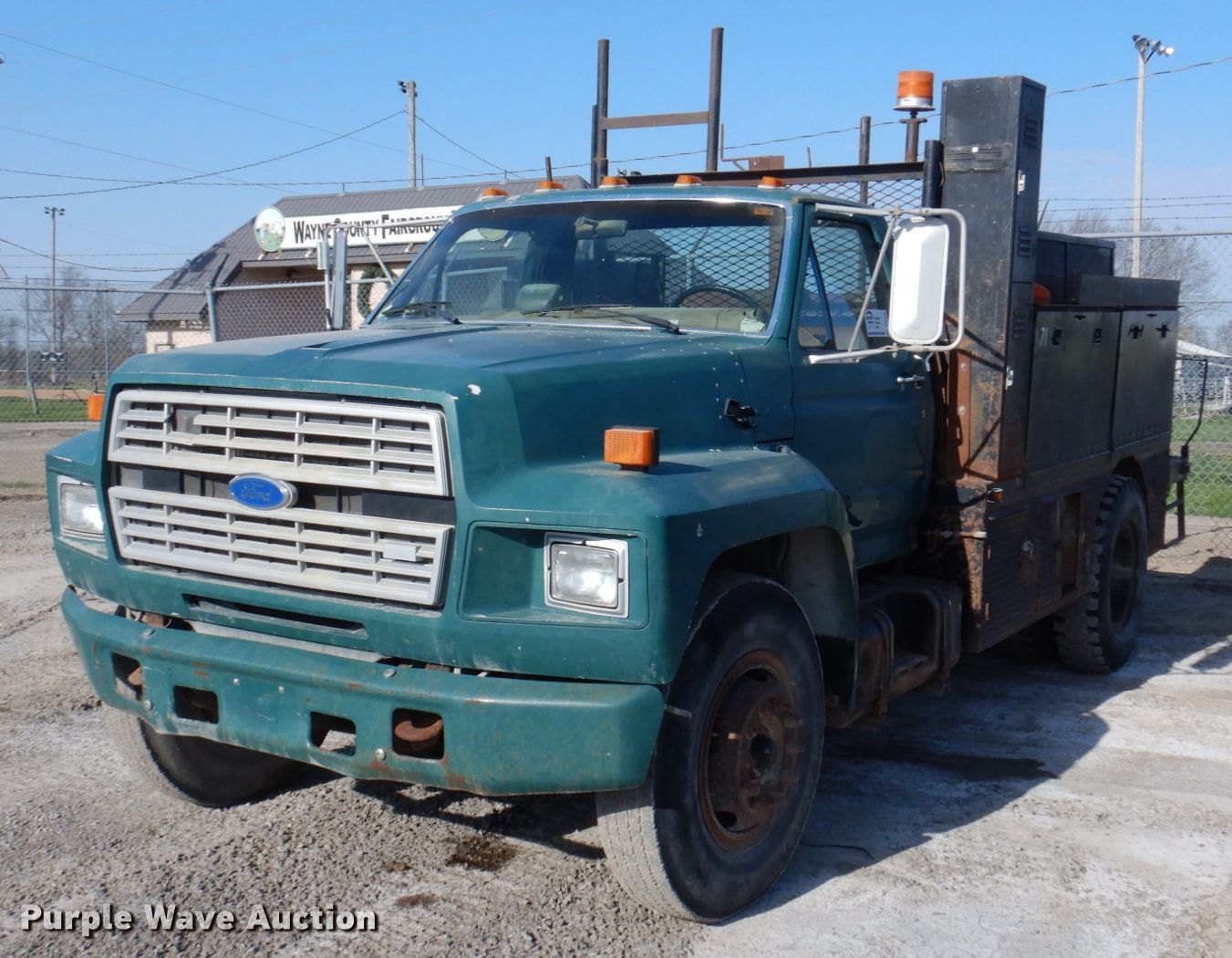 1986 Ford F700 utility / service truck. Miles: 72,754 on odometer, VIN: 1FDWF70H3GVA55851, Unit #: 71. Engine Displacement: 6.1L, Cylinders: 8, Fuel type: Gas. Transmission Manual, Speed: 5. Chassis Axles: Single, Suspension: Spring, Brakes: Air, GVWR: 22,800 lbs, Wheelbase: 153". Interior Heat. Features Bed 140" L x 92" W, Torch bottle rack. Tires Size: 9.00R20. Notes Possible transmission issues. Iowa title. Seller is a government entity who will be assigning and distributing the title. Please contact the seller for distribution questions. Wayne County Secondary Roads. 713 2nd Ave. Corydon, IA 50060