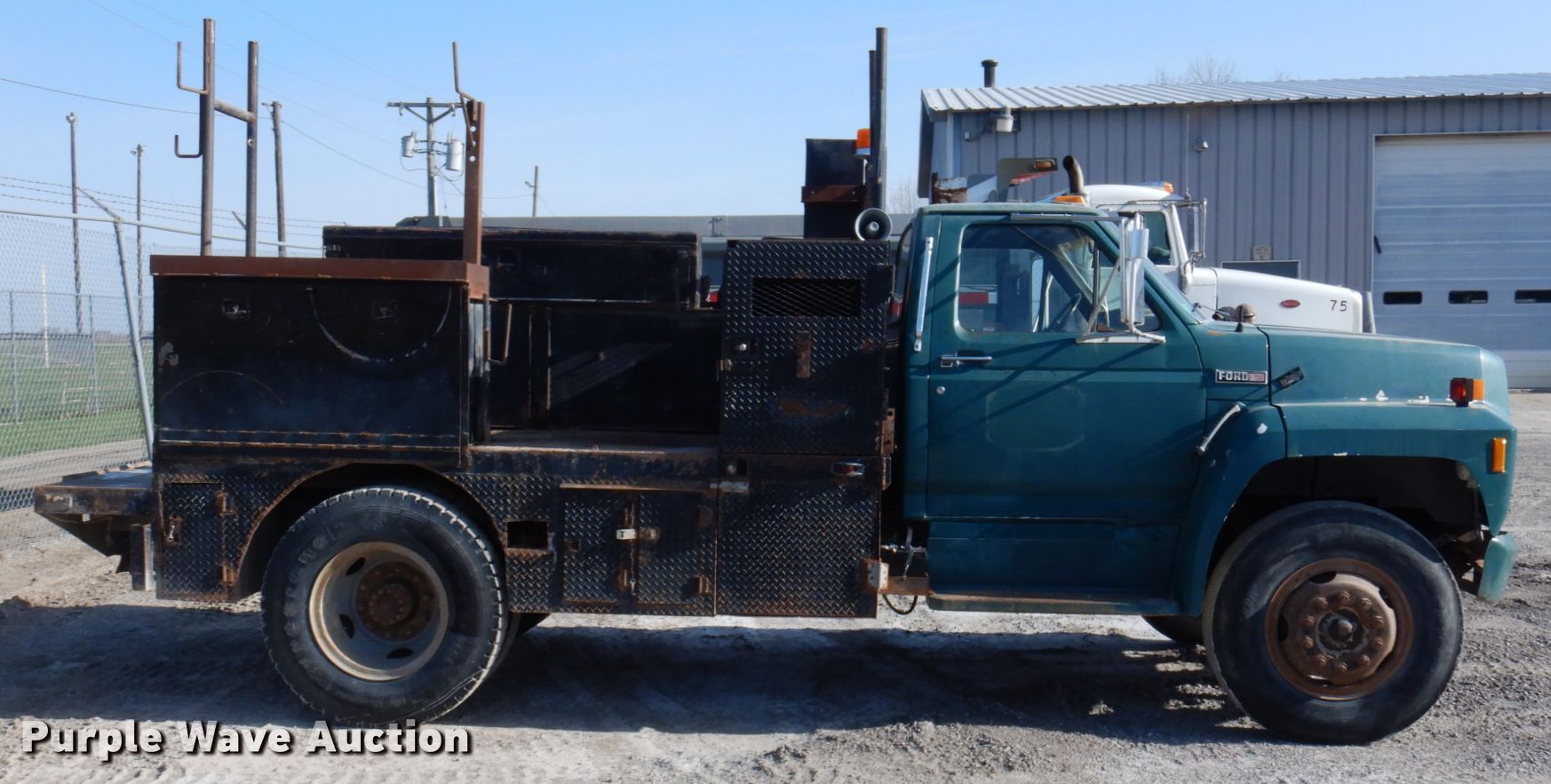 Purple Wave is selling a used Service Truck in Iowa. This item is a 1986 Ford F700 utility / service truck with the following: Miles: 72,754 on odometer, VIN: 1FDWF70H3GVA55851, Unit #: 71
