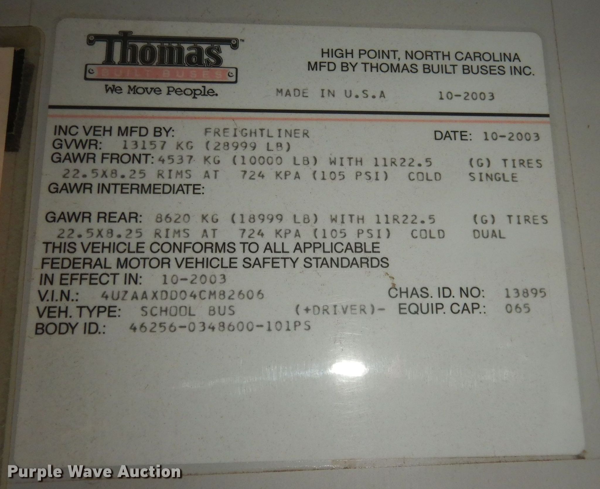 Purple Wave is selling a used Bus in Kansas. This item is a 2004 Freightliner FS65 school bus with the following: Miles: 140,555 on odometer, Hours: 7,354 on meter, VIN: 4UZAAXDD04CM82606, Unit #: 0411