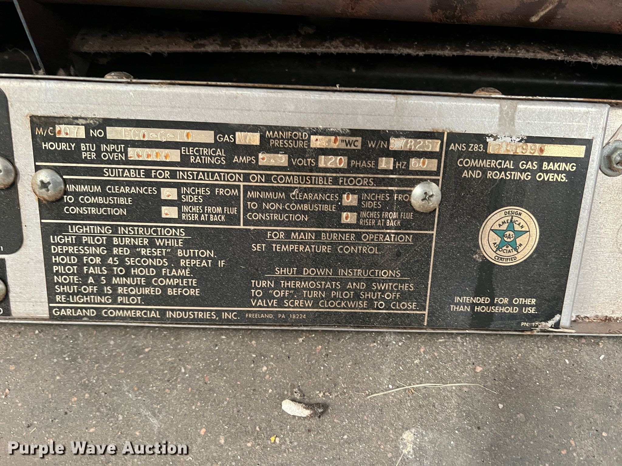 Purple Wave is selling a used Appliances in Kansas. This item is a (2) Garland ovens with the following: 120V, Single phase