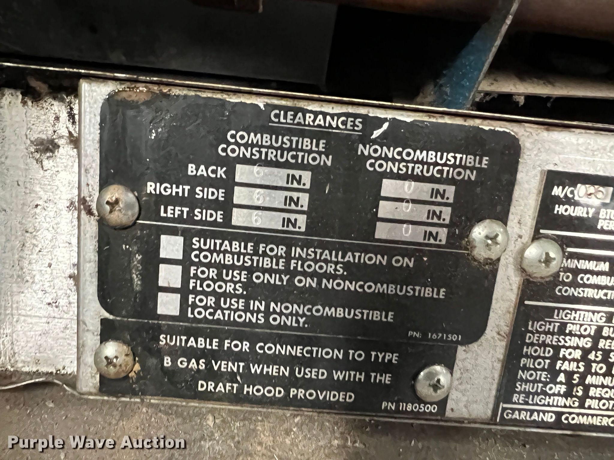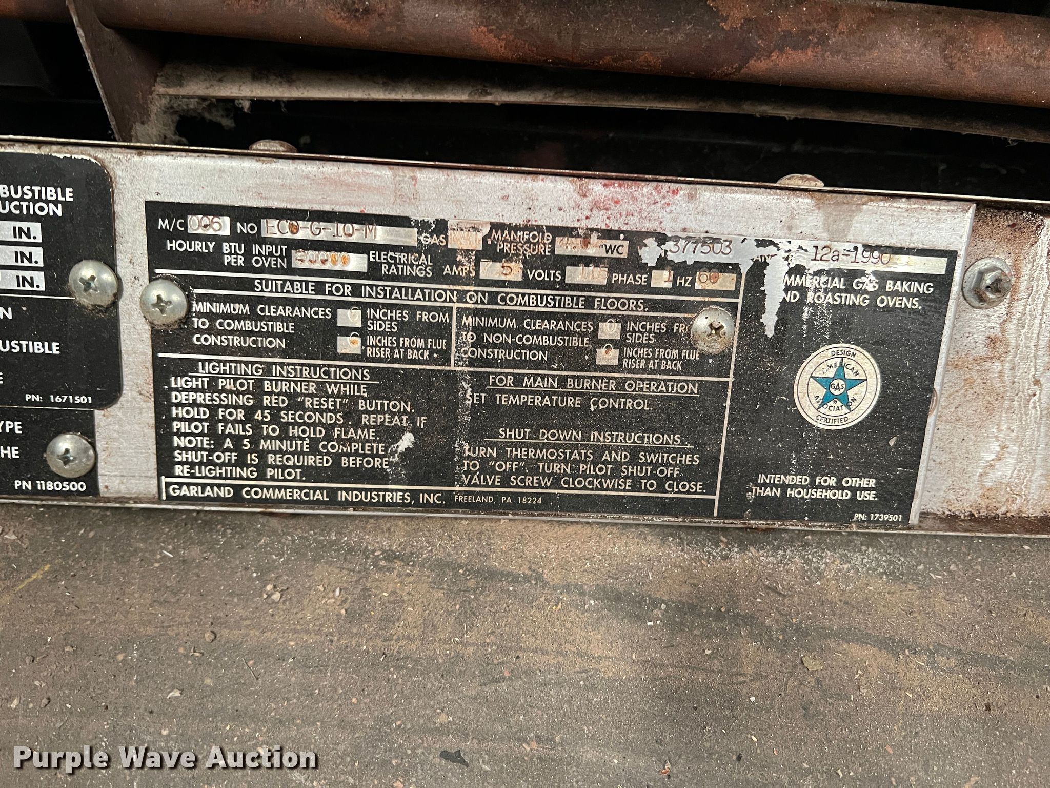 Purple Wave is selling a used Appliances in Kansas. This item is a (2) Garland ovens with the following: 120V, Single phase, One damaged