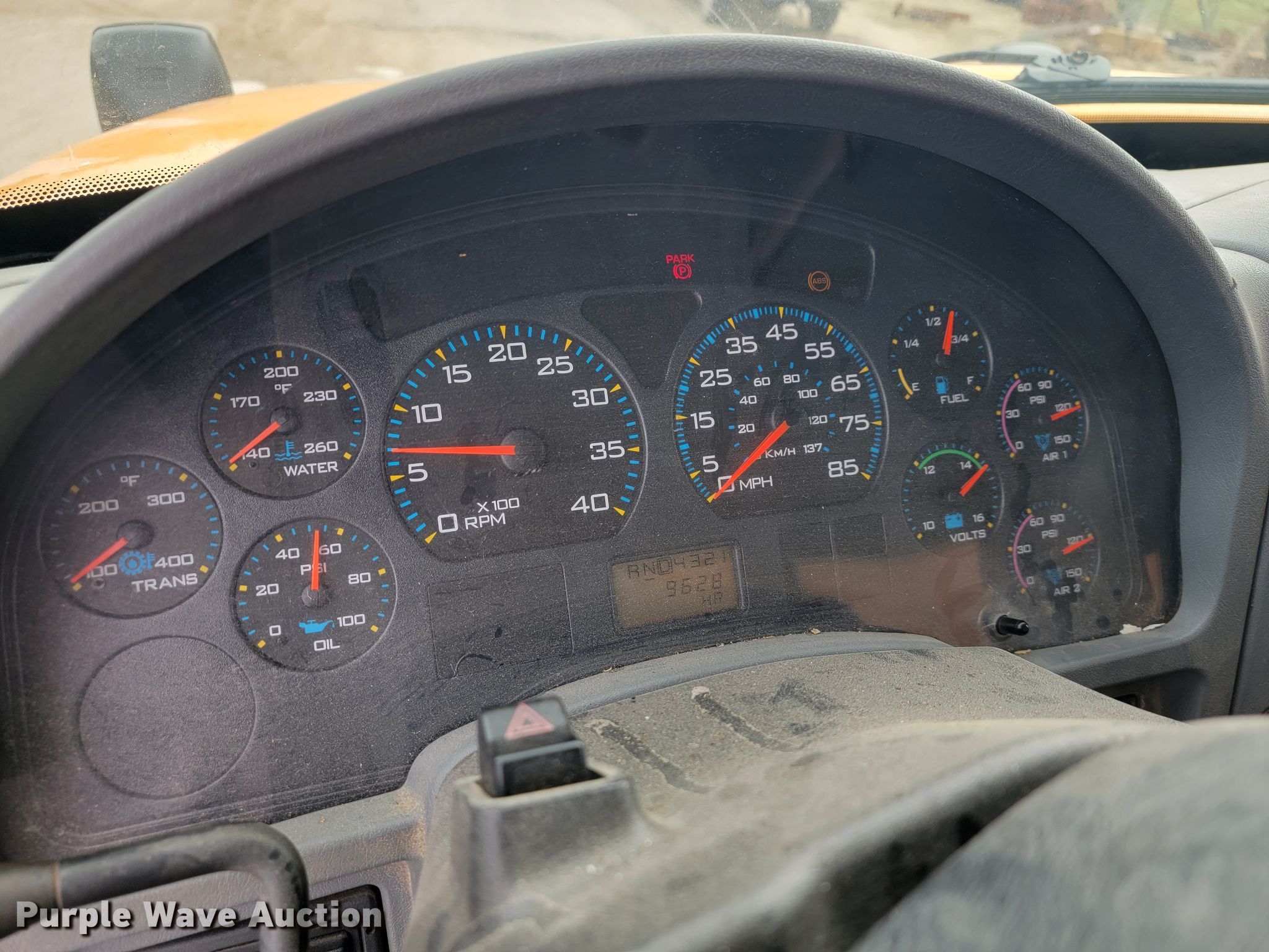 2006 International 7400 dump truck. Miles: 190,401 on odometer, Hours: 9,628 on meter, VIN: 1HTWDAAR96J324717, Unit #: 7666. Engine Displacement: 7.6L L6, Cylinders: 6, Fuel type: Diesel. Transmission Automatic. Chassis Axles: Single, Suspension: Spring, Brakes: Air, Front mount PTO, GVWR: 35,000 lbs, Wheelbase: 172". Interior AC, Heat, Power windows, Cruise control. Features Dump bed Wheeler, 10' L x 8' W, Side height: 24", Bed type: Steel, Roll tarp, Ram: Single , End gate: Air operated. Tires Front: 315/80R22.5, Rear: 11R22.5. Notes Dash warning indicator: ABS, Frame damage, rust Bed must be strapped down. Missouri title. Missouri Department of Transportation. US 54. Eldon, MO 65026