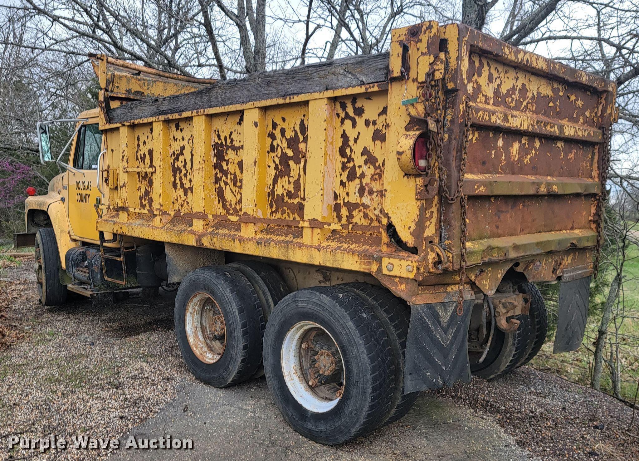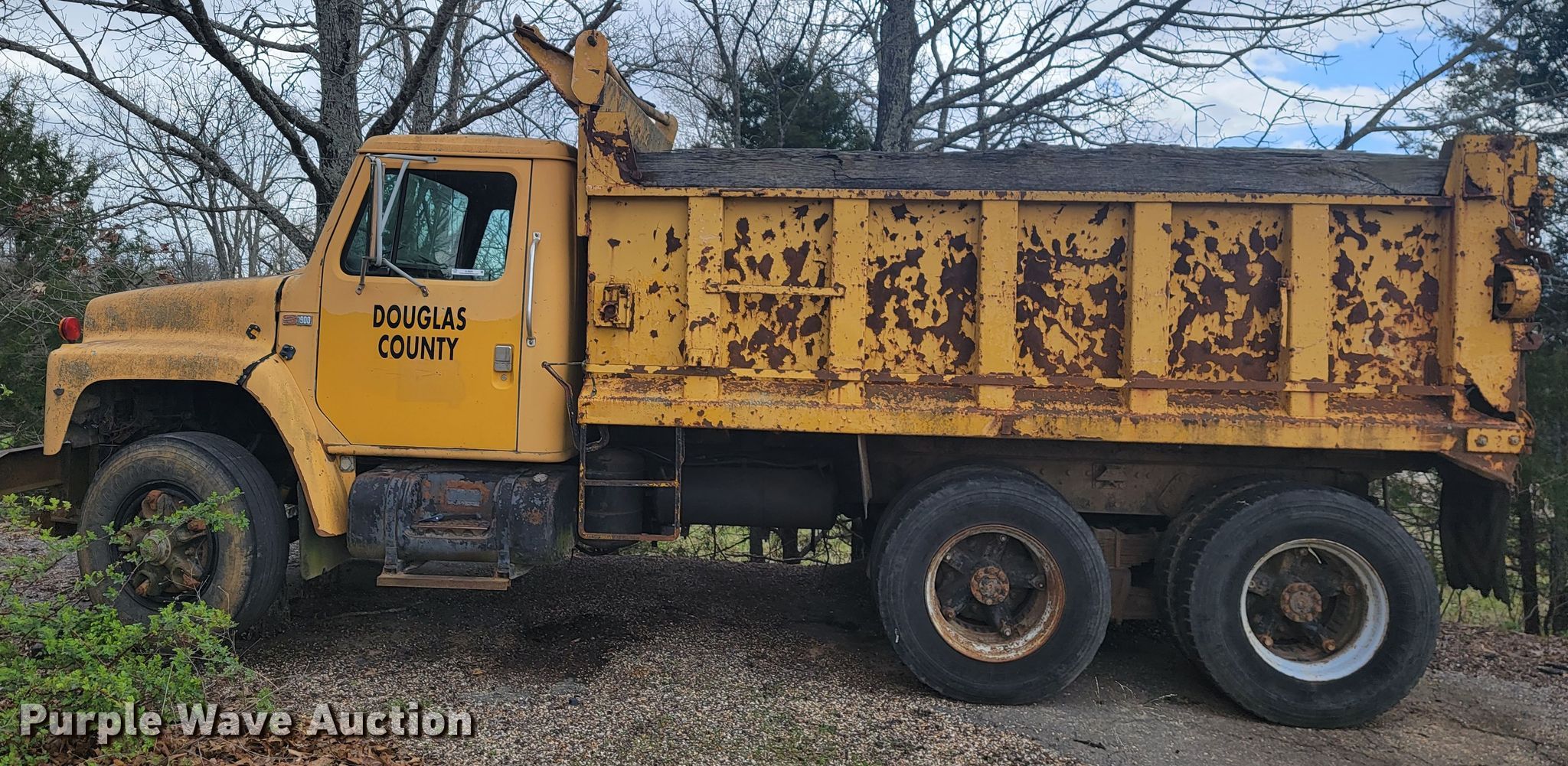 1988 International F1954 dump truck. Miles: 226,332 on odometer, VIN: 1HTLKTVR1JH595026. Engine International DT466, Displacement: 7.6L, Cylinders: 6, Fuel type: Diesel. Transmission Eaton Fuller Roadranger, Manual, Speed: 5, plus 2. Chassis Axles: Tandem, Differential lock: Inter-axle, Suspension: Spring over walking beam, Brakes: Air, PTO, Wheelbase: 172". Features Dump bed 13' L x 96" W, Side height: 42", Side board height: 9", Bed type: Steel, Ram: Single , End gate: Manual. Tires Front: 275/80R22.5, Rear: 11R22.5. Notes Non-operational unit. Missouri title. Mileage has not been verified. Exempt will be written in the odometer disclosure on the title. Seller is a government entity who will be assigning and distributing the title. Please contact the seller for distribution questions. Douglas County. 203 E Lincoln Ave. Ava, MO 65608