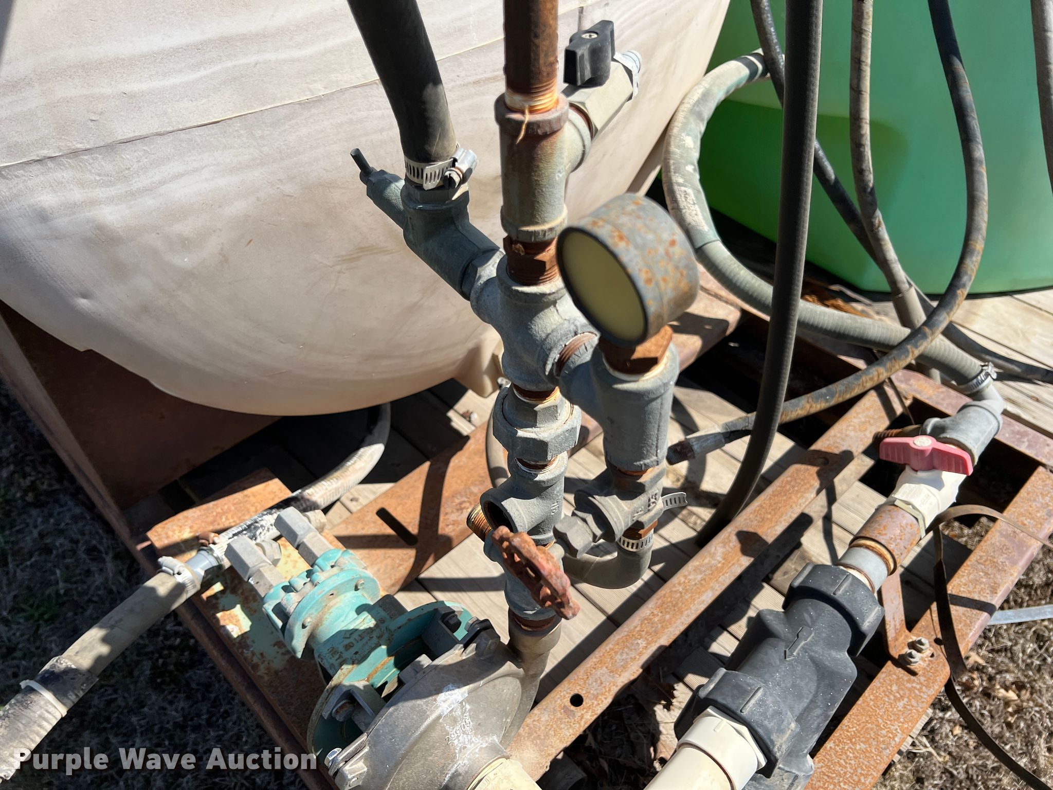 Purple Wave is selling a used Tanks in Oklahoma. This item is a (2) poly tanks with the following: 200 gallon capacity, 300 gallon capacity, Top fill, Unknown operating condition of pump