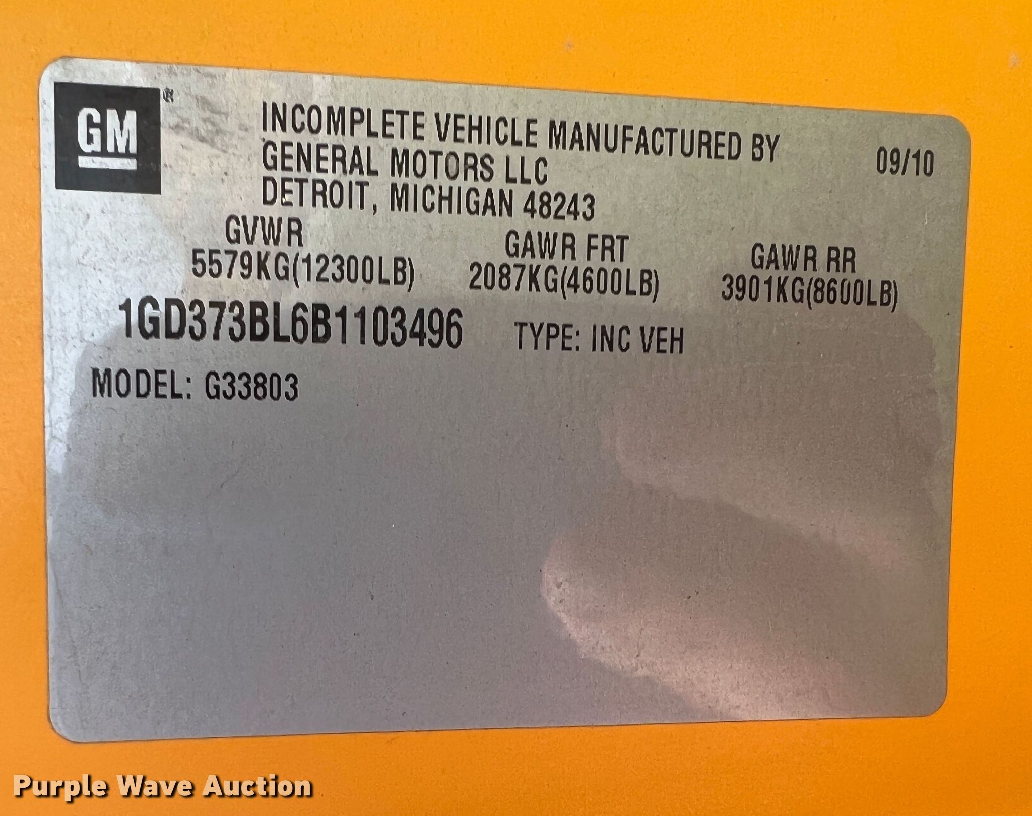 2012 GMC Savana school bus. Miles: 73,925 on odometer, VIN: 1GD373BL6B1103496. Engine Displacement: 6.6L, Cylinders: 8, Fuel type: Diesel. Transmission Automatic. Chassis Axles: Single, Suspension: Spring, Brakes: Hydraulic. Interior AC, Heat, Heated mirrors, Cruise control, Child safety seats: 16. Tires Size: LT225/75R16. Notes Dead battery. Kansas title. ANW Education Cooperative. 710 Bridge St. Humboldt, KS 66748
