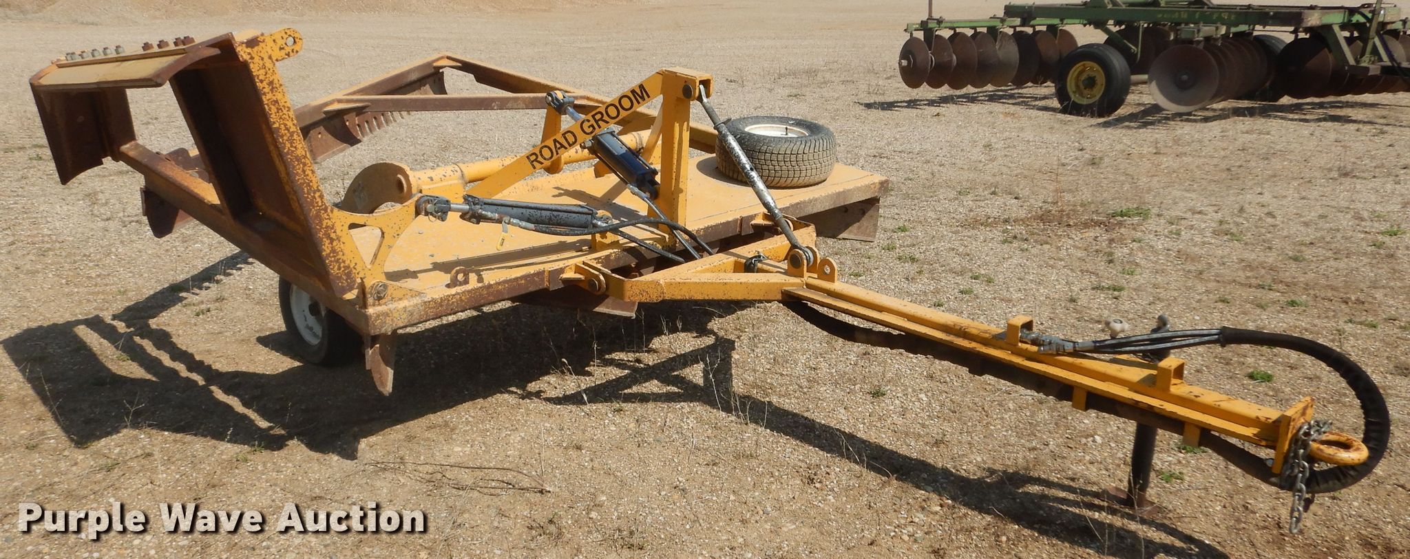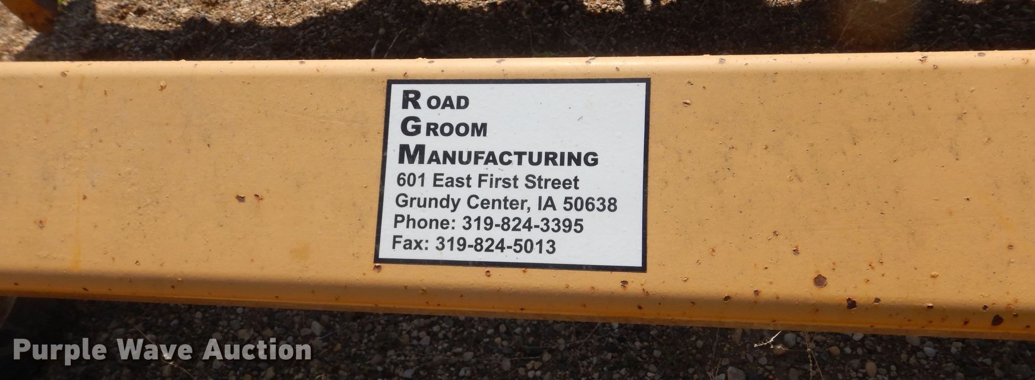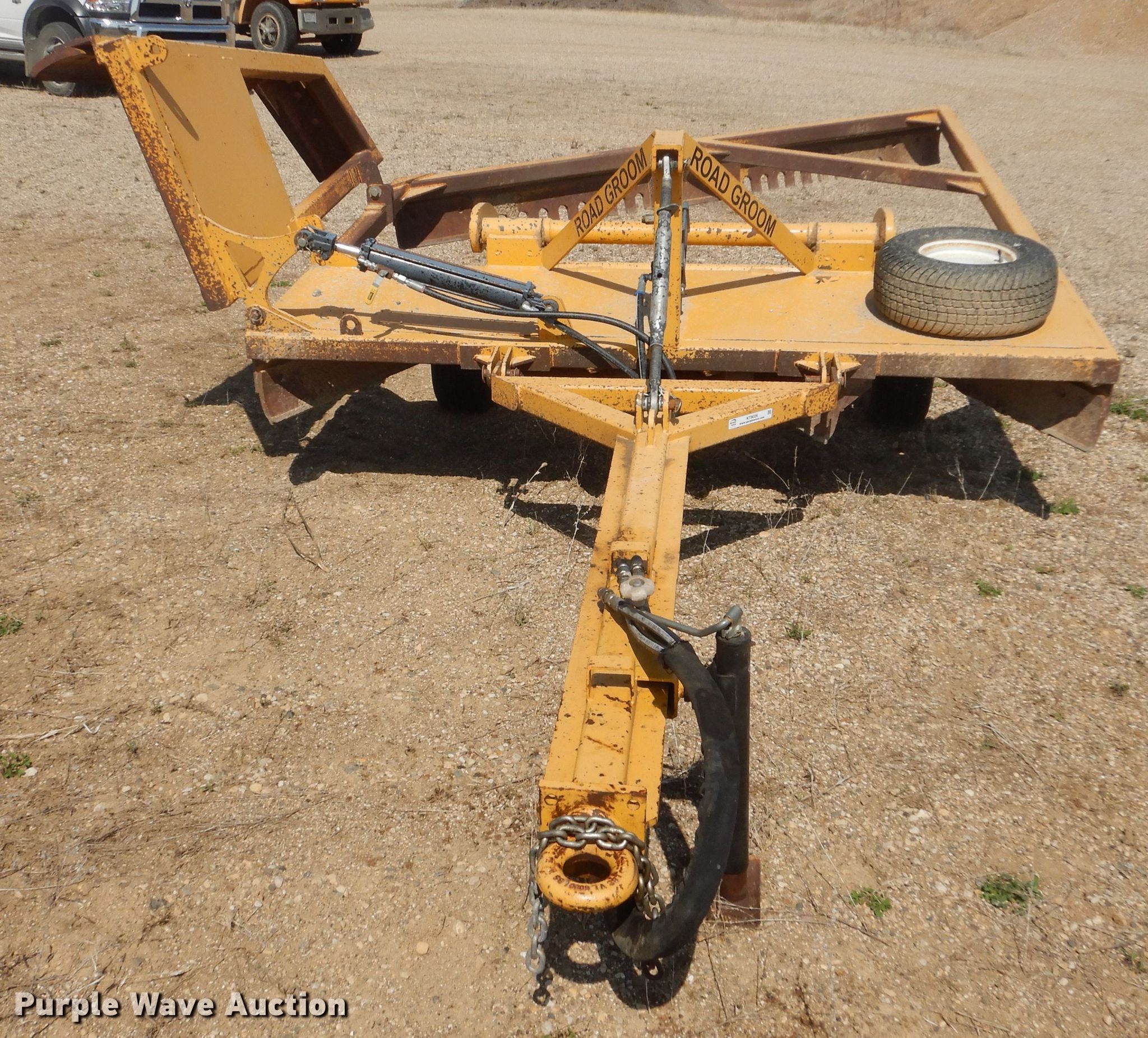 Purple Wave is selling a used Pull Type Scraper in Iowa. This item is a Road Groom road maintainer with the following: Overall width: 130", Wing, Width: 30", Hitch: Pintle, Landing gear: Single, Tires: 205/60-10