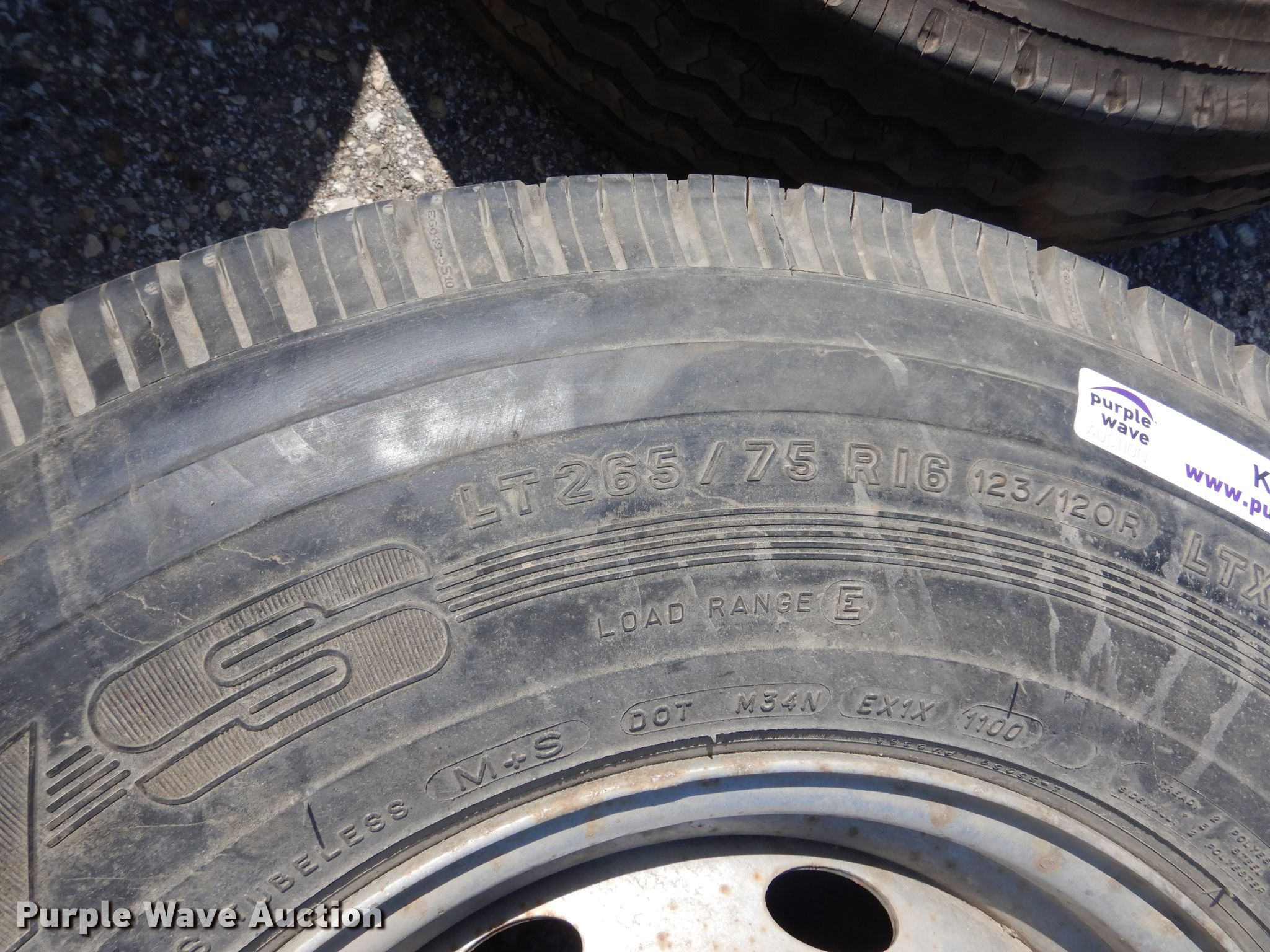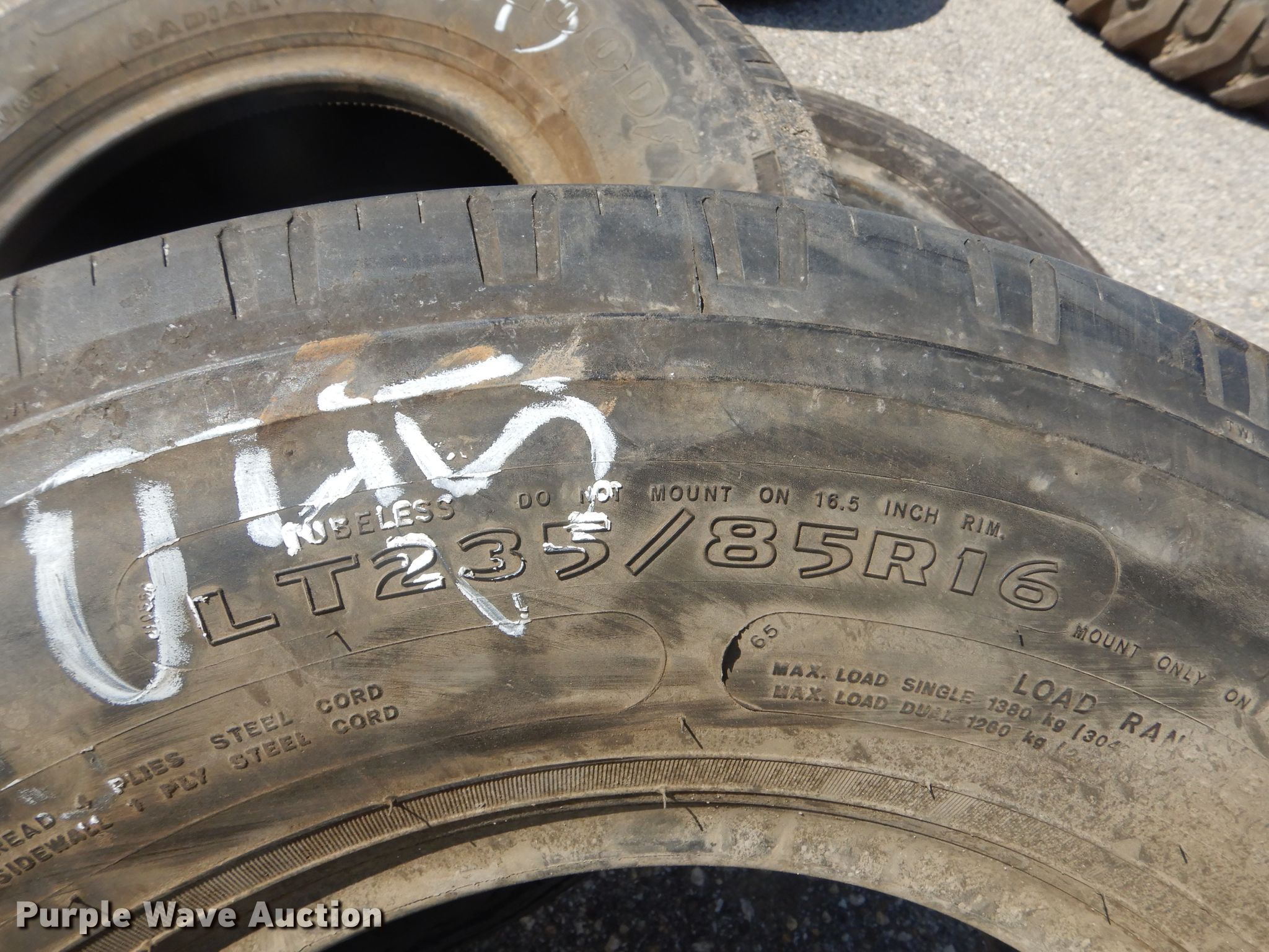 (5) Tires. 9.50-16.50LT, LT265/75R16, (2) LT235/85R16, 225/70R19.5. Cherokee County. 5074 Highway 3. Cherokee, IA 51012