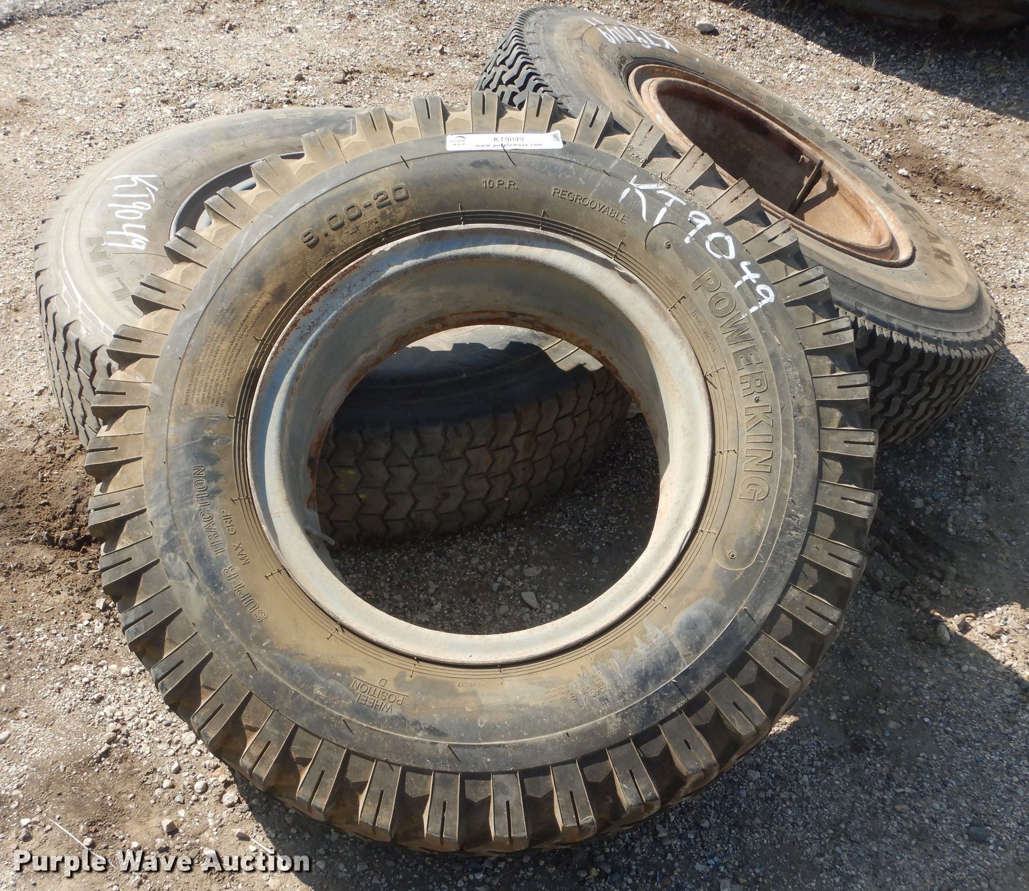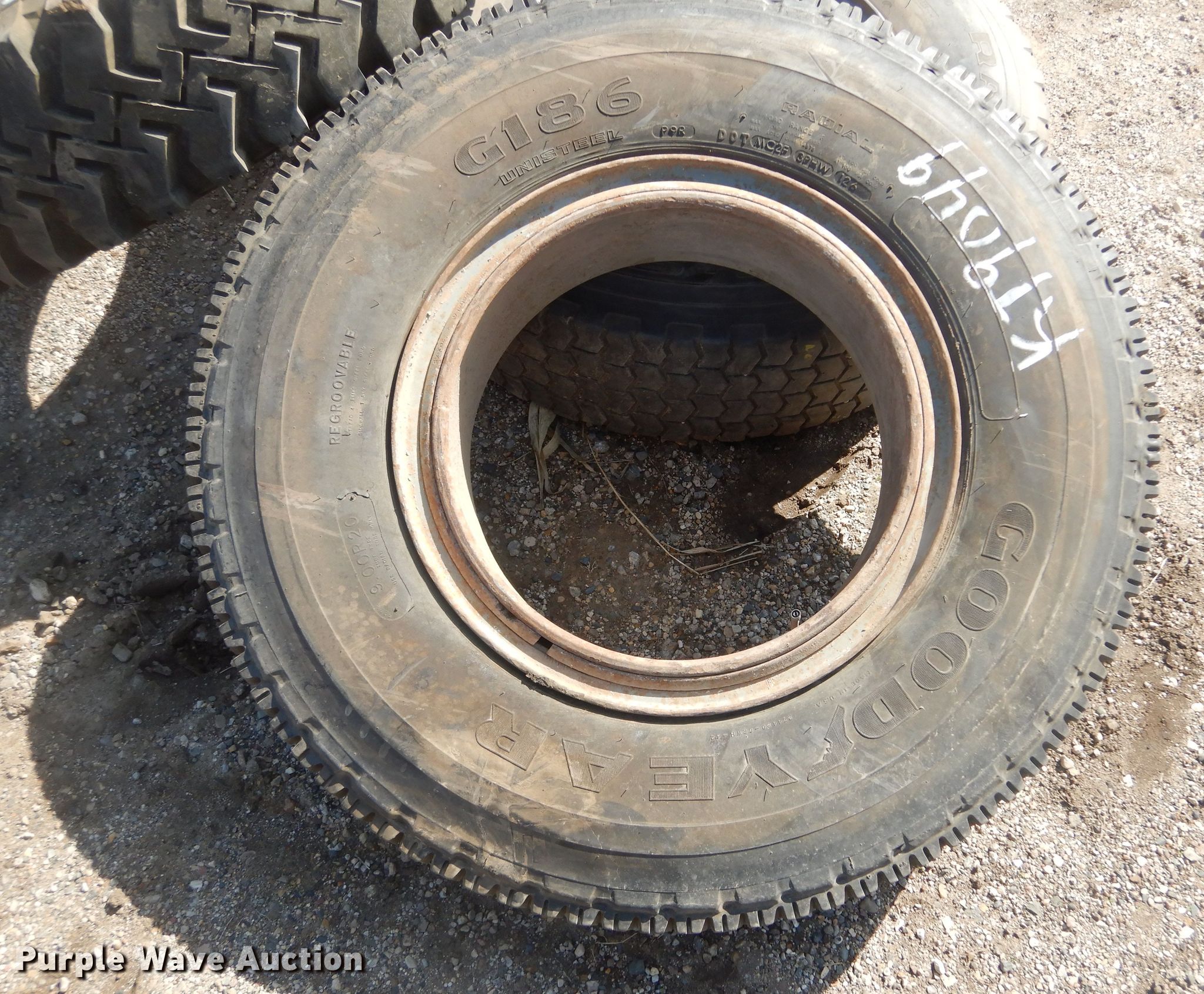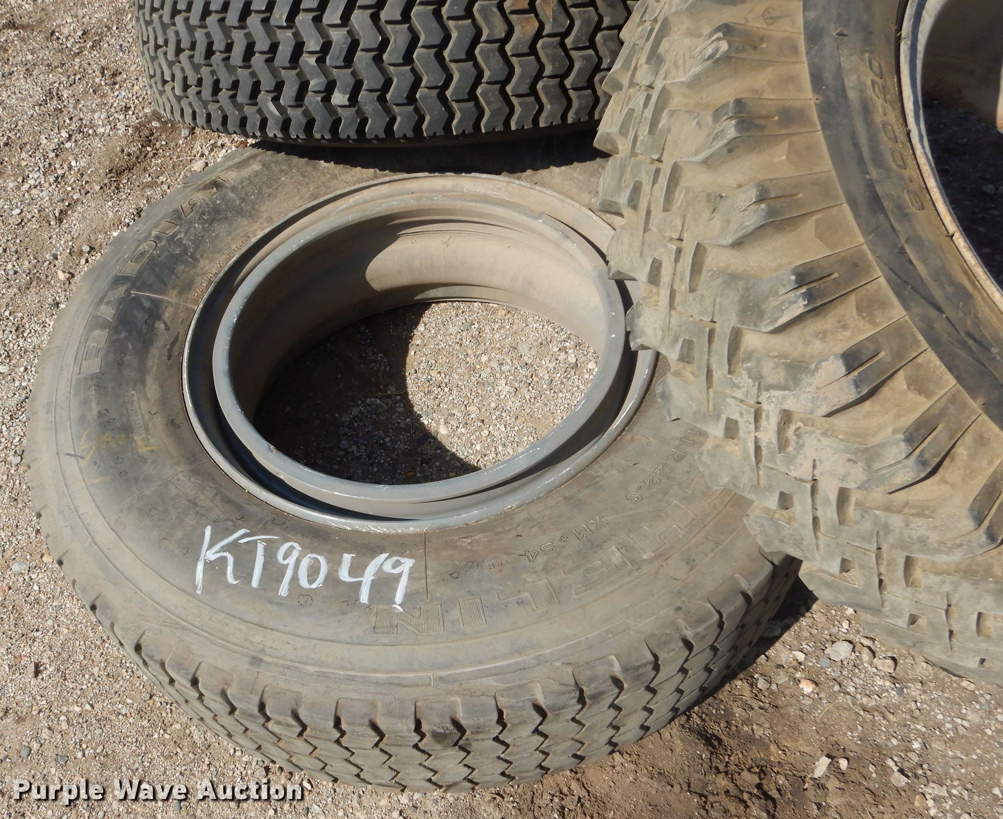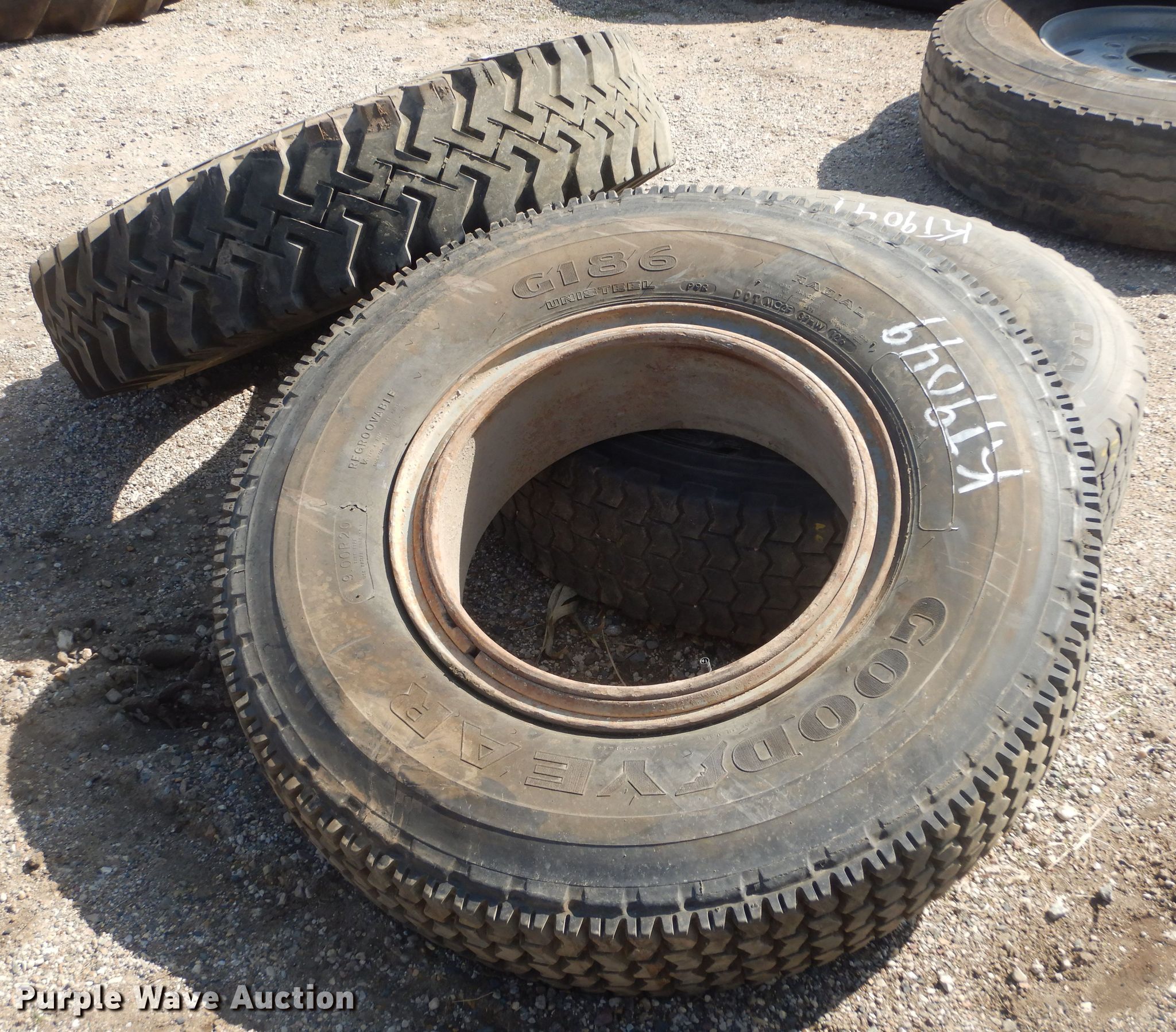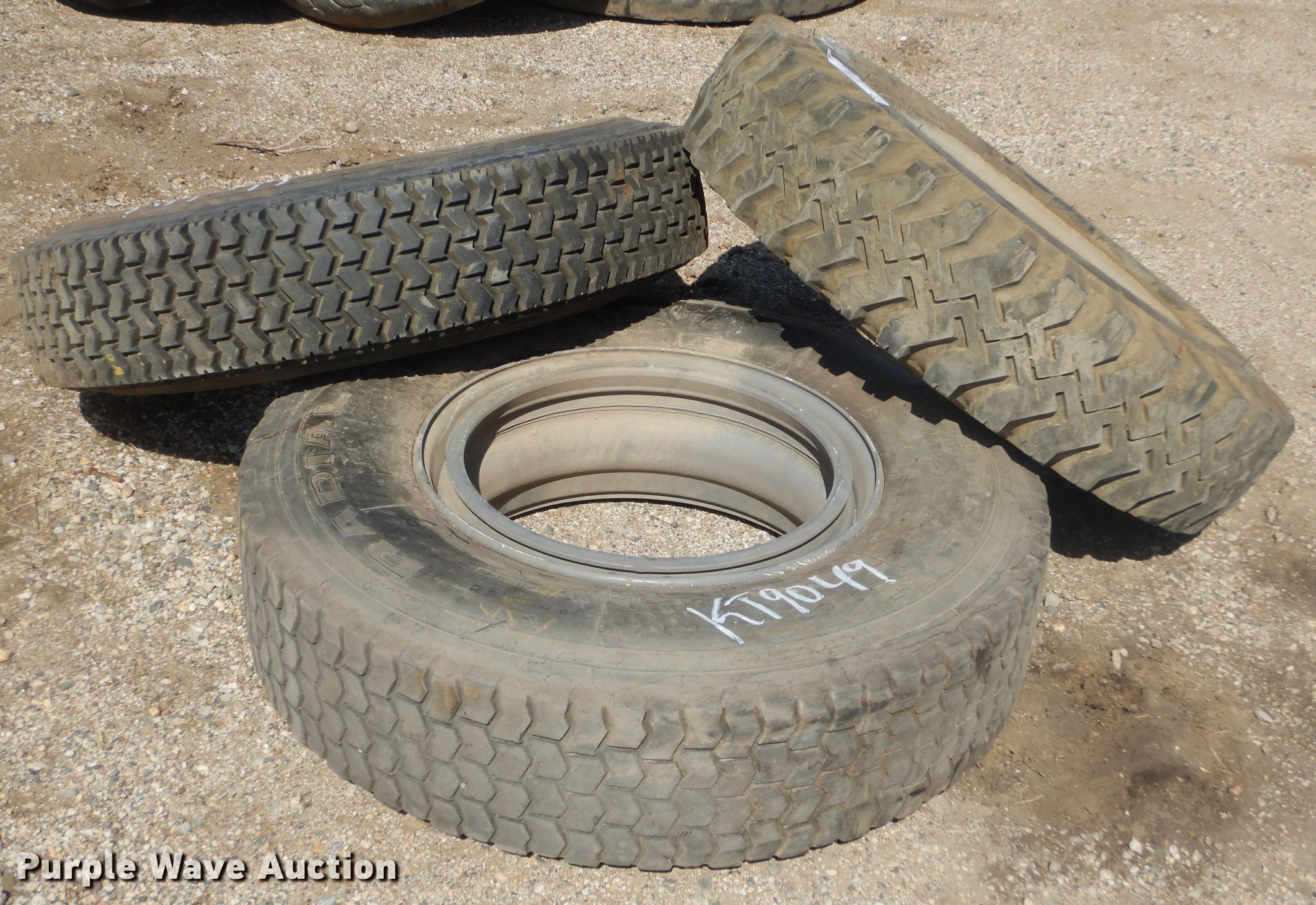 Purple Wave is selling a used Industrial Tires or Tracks in Iowa. This item is a (3) tires and wheels with the following: (2) 9.00-20, 11R22.5
