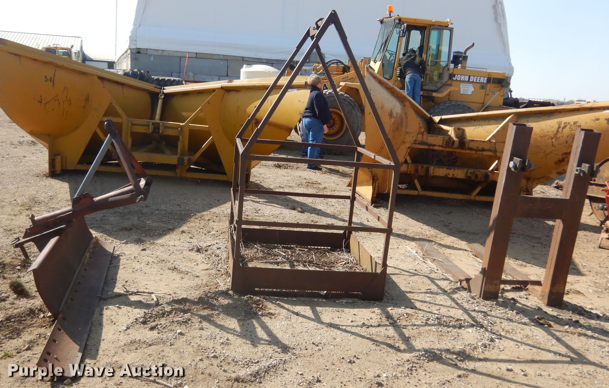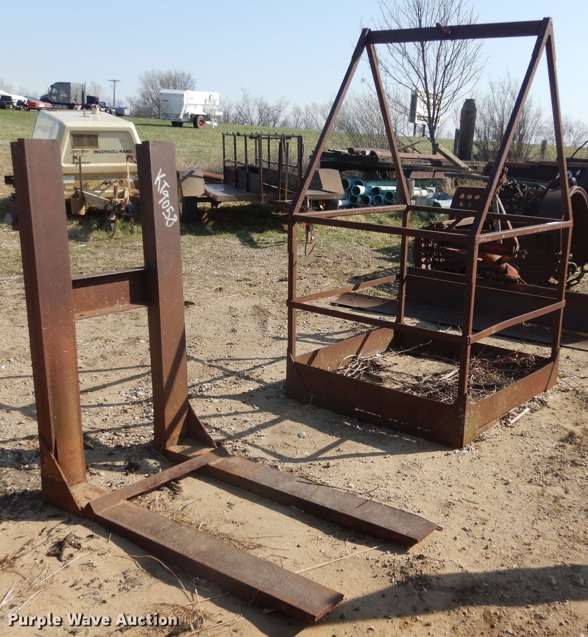 Purple Wave is selling a used Other Attach. or Equip. in Iowa. This item is a Blade with the following: Hitch: Three point, Parts missing, 4' x 4' man basket, 56" L forks