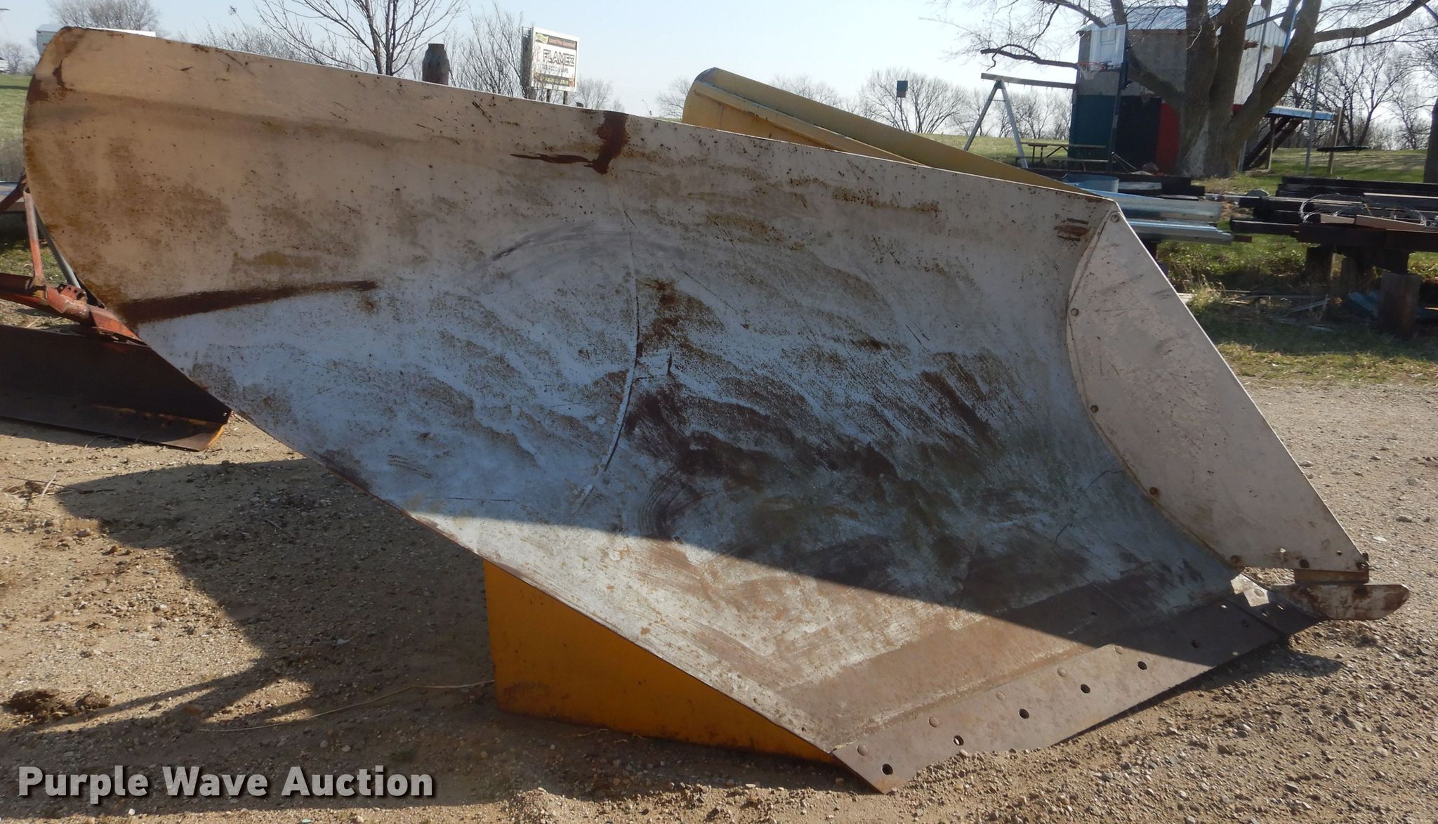 Purple Wave is selling a used Motor Grader Attach. in Iowa. This item is a 146"W V-plow with the following: Bolt-on cutting edges