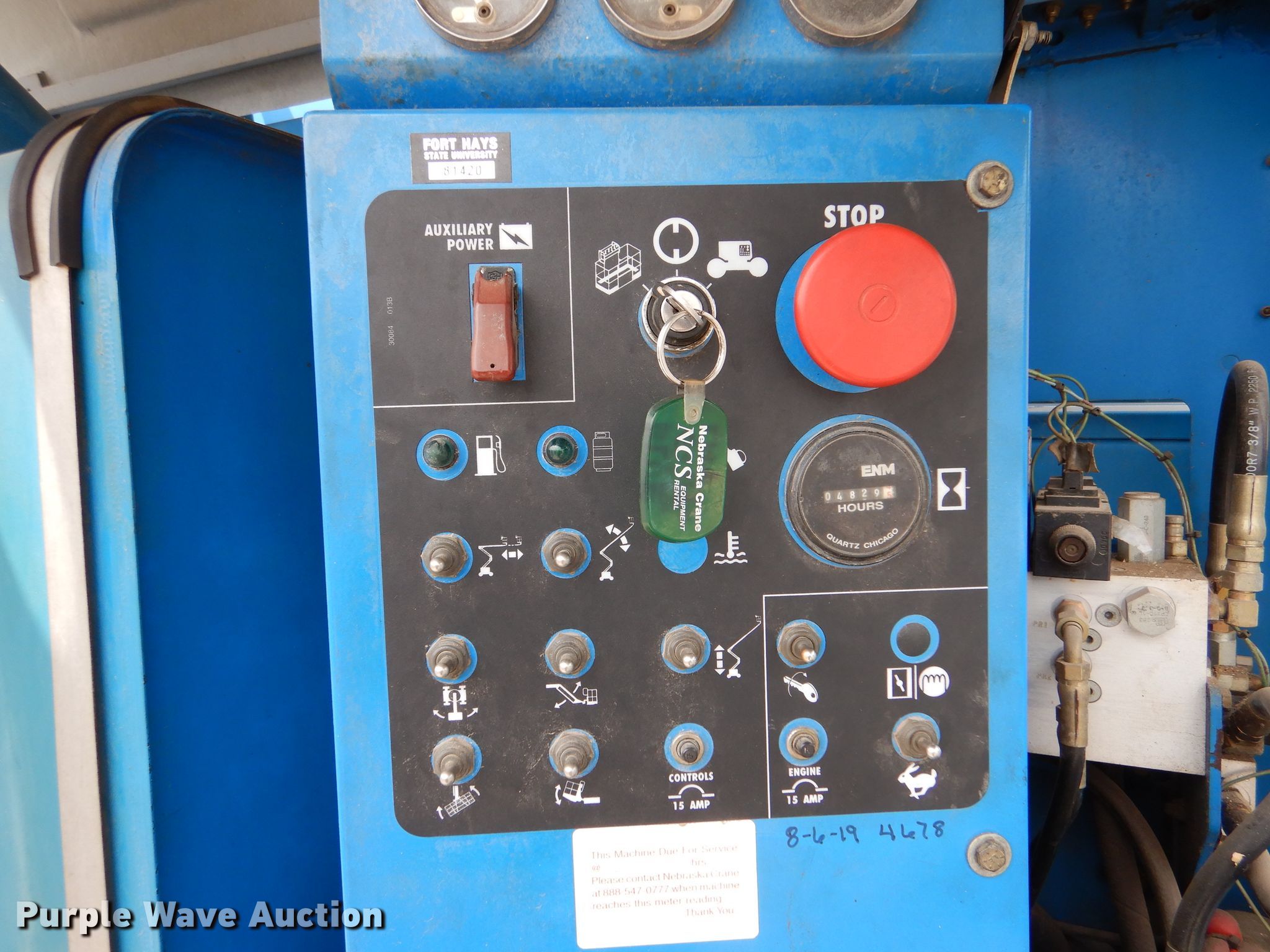 1993 Genie Z-60/34 boom lift. Hours: 4,829 on meter. Engine Ford LSG 423, Cylinders: 3, Fuel type: Dual fuel. Features Articulating boom, Maximum lift capacity: 500 lbs, Maximum lift height: 60', Hydraulic extendable jib, Platform: 71" L x 29" W, AC power outlet, Controls: Platform, Ground, Platform rotation: Hydraulic, Safety alarm. Tires Tire size: 15-19.5. Fort Hays State University. 600 Park St. Hays, KS 67601