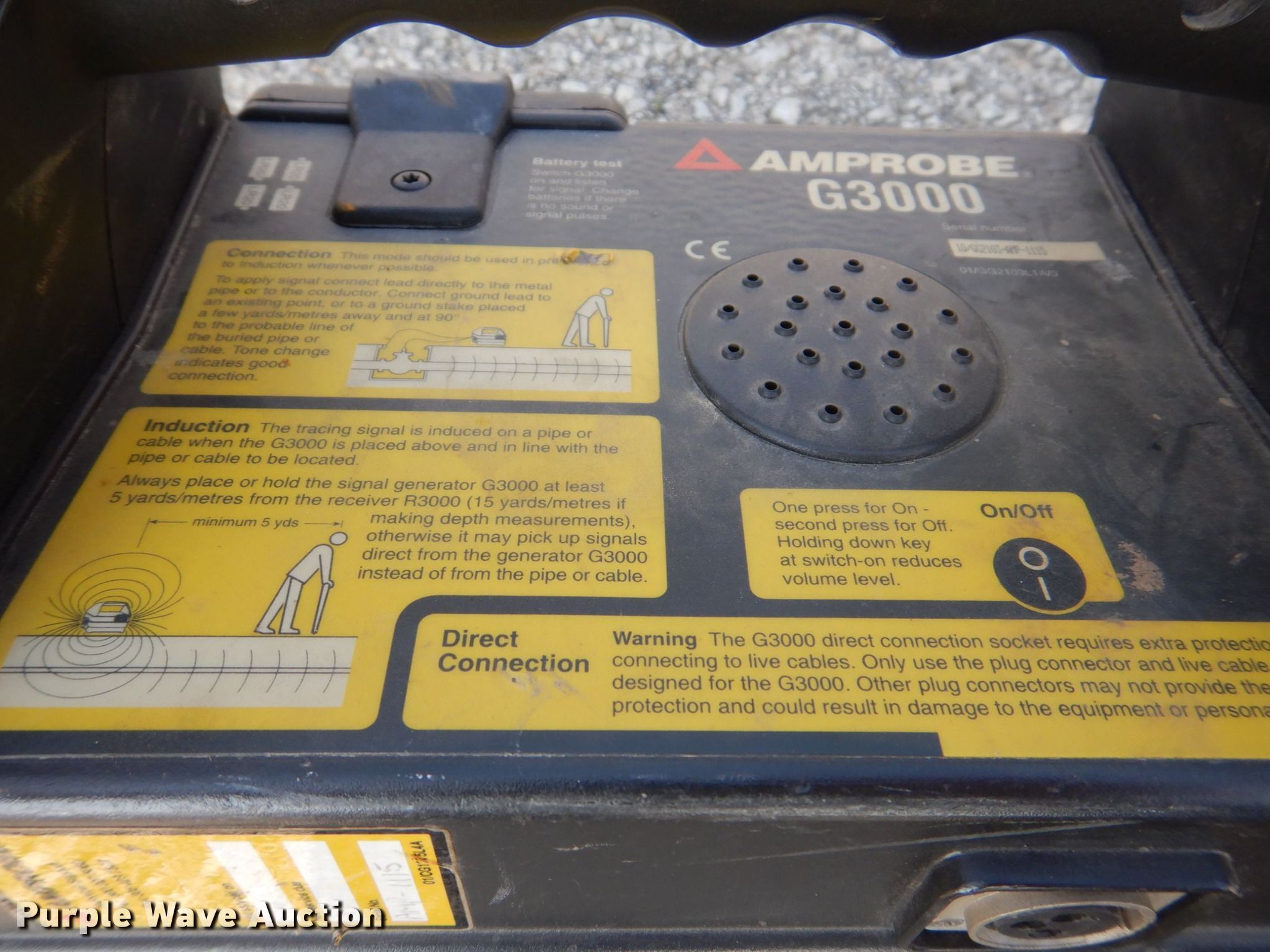 Purple Wave is selling a used Tools in Iowa. This item is a Amprobe underground utility locator with the following: R3000 receiver, G3000 signal transmitter, Leads