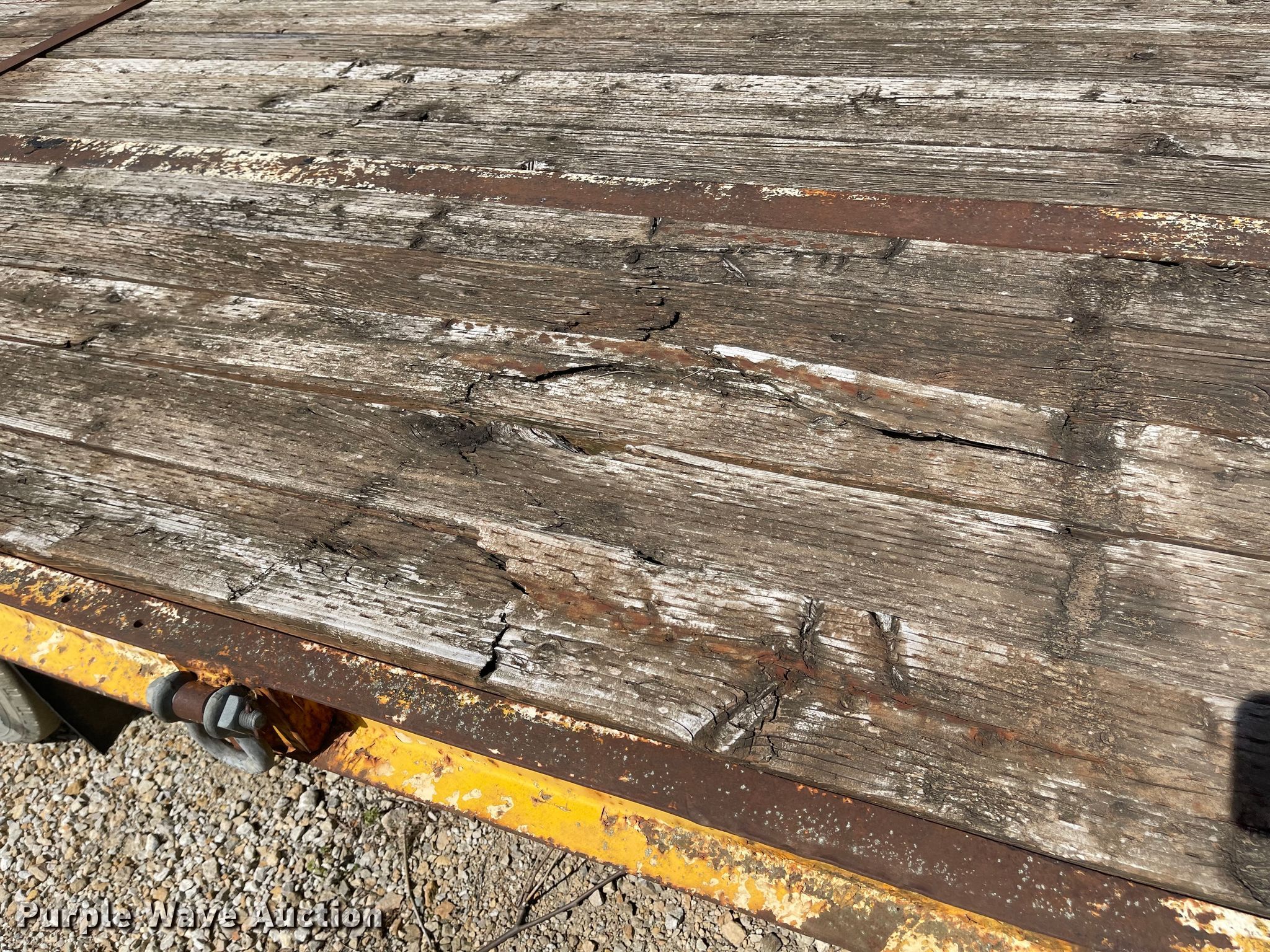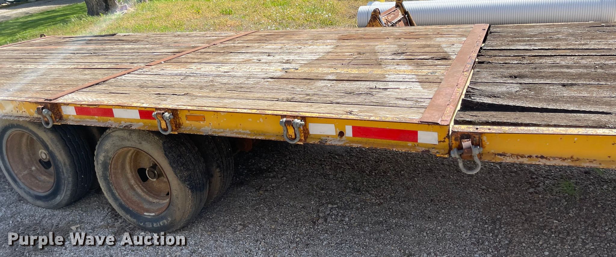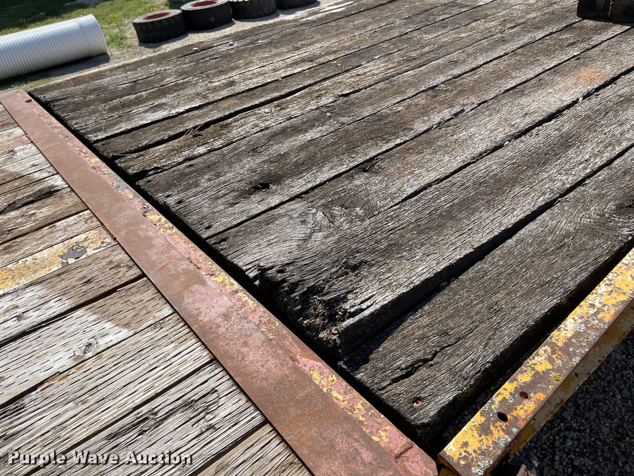 1986 Wisconsin tilt deck equipment trailer. VIN: 1W91SE209G1008369. Dimensions Overall: 29' L x 96" W, Deck: 24' L x 96" W, Tilt deck length: 17', Deck height: 33". Features Deck type: Wood. Chassis Hitch: Pintle, Landing gear: Single, Two speed, Suspension: Spring, Axles: Tandem. Tires Steel wheels, Size: 8.75R16.5LT. Kansas title. Title distribution may be delayed up to 14 days from verification of funds. City of Lecompton. 302 Clark St. Lecompton, KS 66050