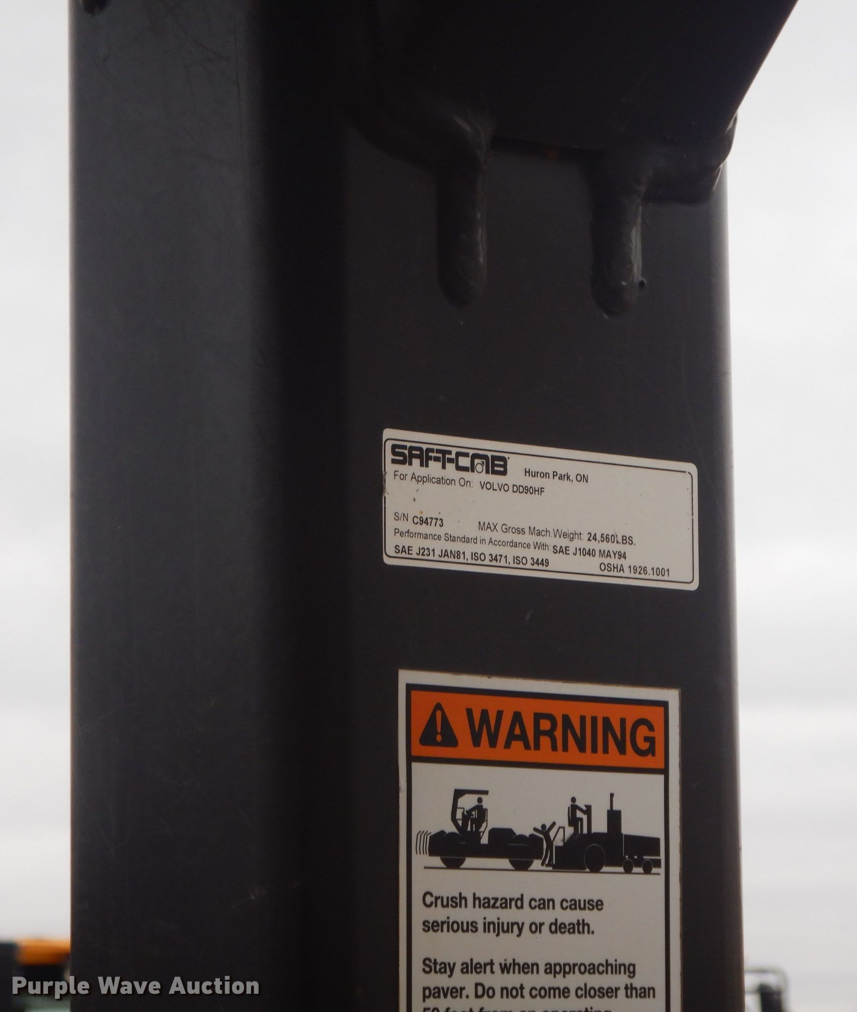 Volvo DD90HF double drum vibratory roller. Hours: 2,440 on meter, Serial: VCE00D90V0S276680, Unit #: 51-32. Engine Cummins, Displacement: 4.5L, Cylinders: 4, Fuel type: Diesel. Transmission Hydrostatic. Operators station OROPS, Vandal cover. Features Drum: Smooth, Vibratory system: Double, Independent drum controls, Two speed, Front drum Width: 66", Diameter: 47", Rear drum Width: 66", Diameter: 47", Drum scrapers: Front, Rear, Water spray applicator: Front, Rear. Sioux Falls Street Department - Open inspection May 19. 1000 E Chambers St. Sioux Falls, SD 57104