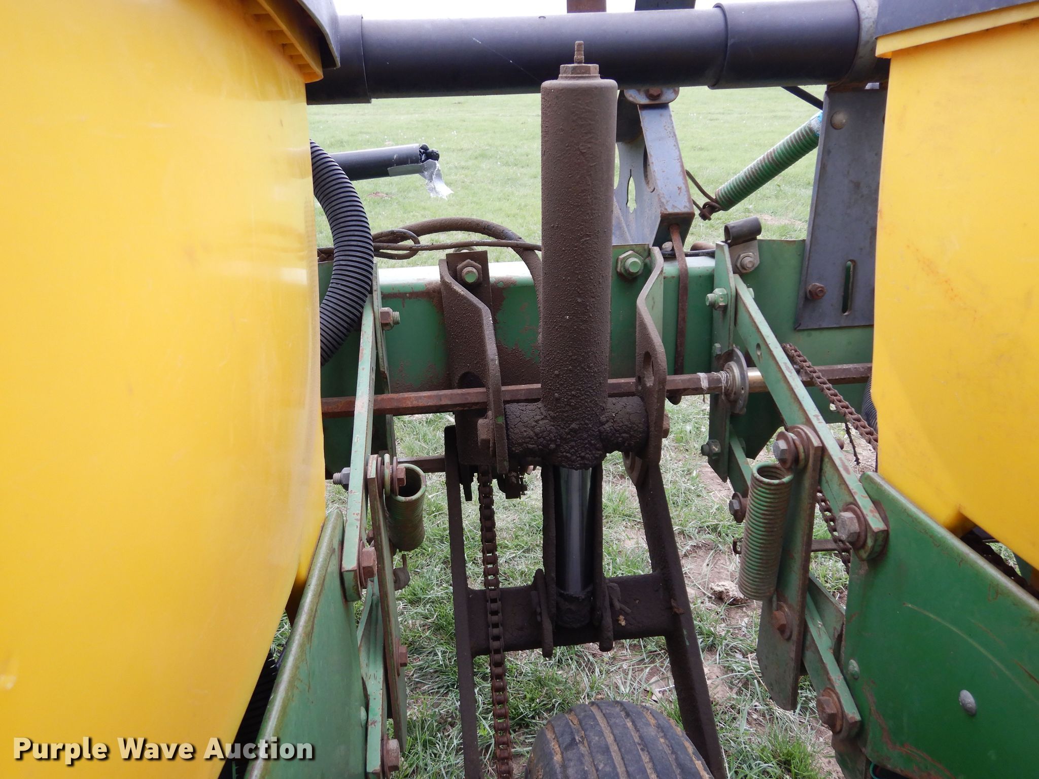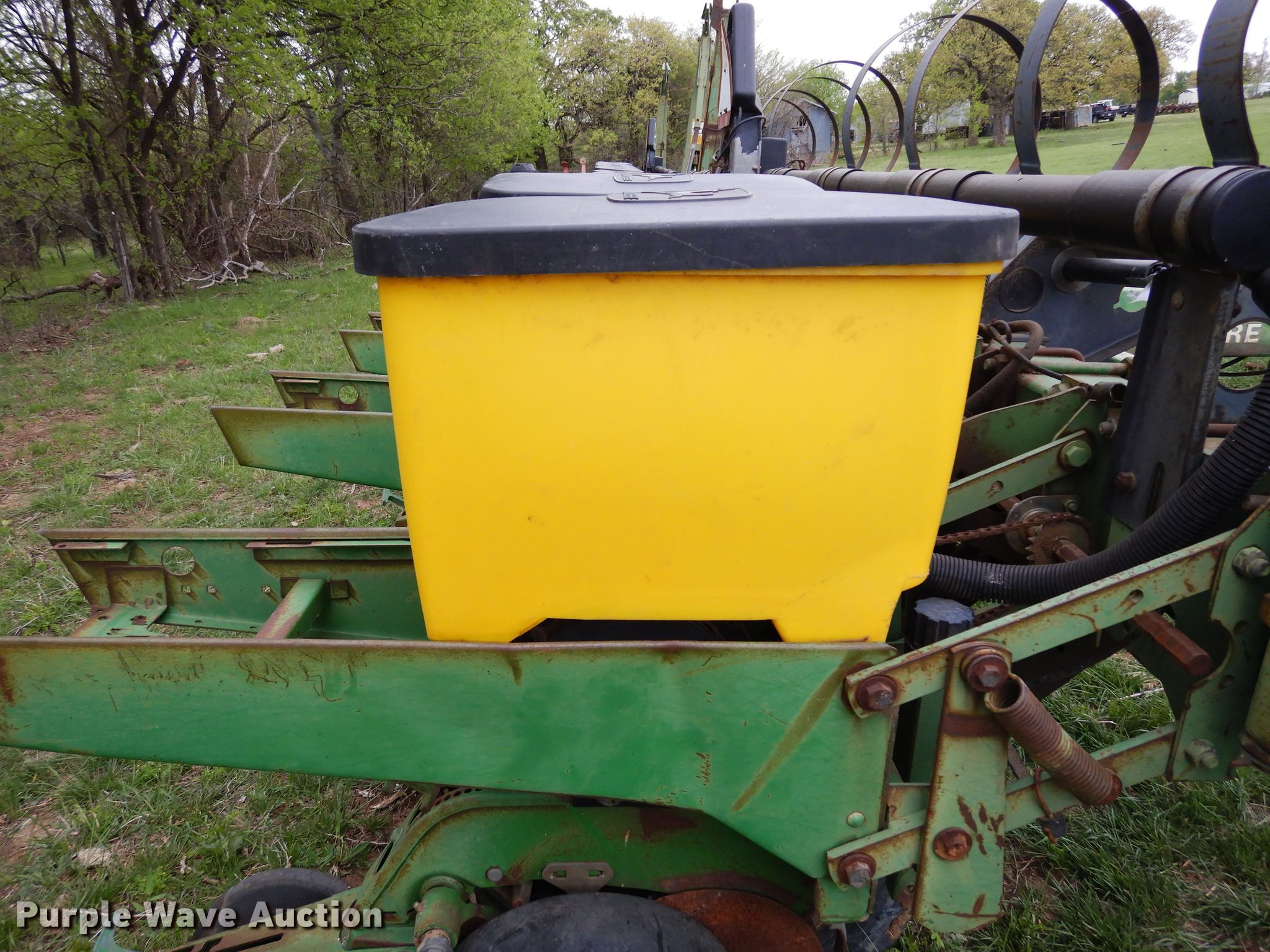 John Deere 7200 planter. Width: 19', Row units: 8, Row spacing: 30", Serial: A07200E205619. Features Frame Marker arm, Seed delivery Individual seed hoppers, Row units Meter drive: Ground, Down pressure: Spring, Gauge wheels: Double, Closing system: Double Type: Rubber.. Tires Transport tire size: 7.60-15SL Quantity: 4. Holloway Harvesting. 10159 Farm To Market Rd 1173. Krum, TX 76249