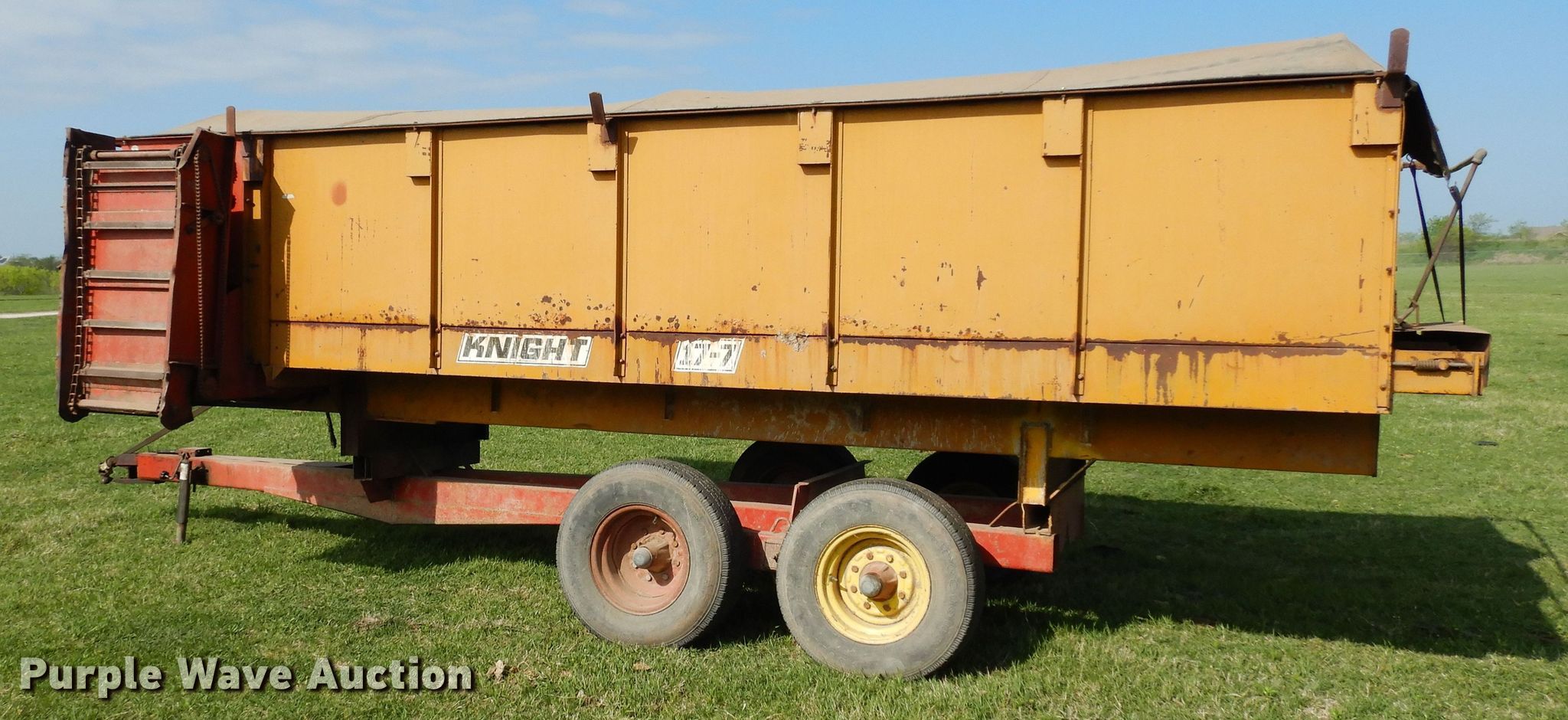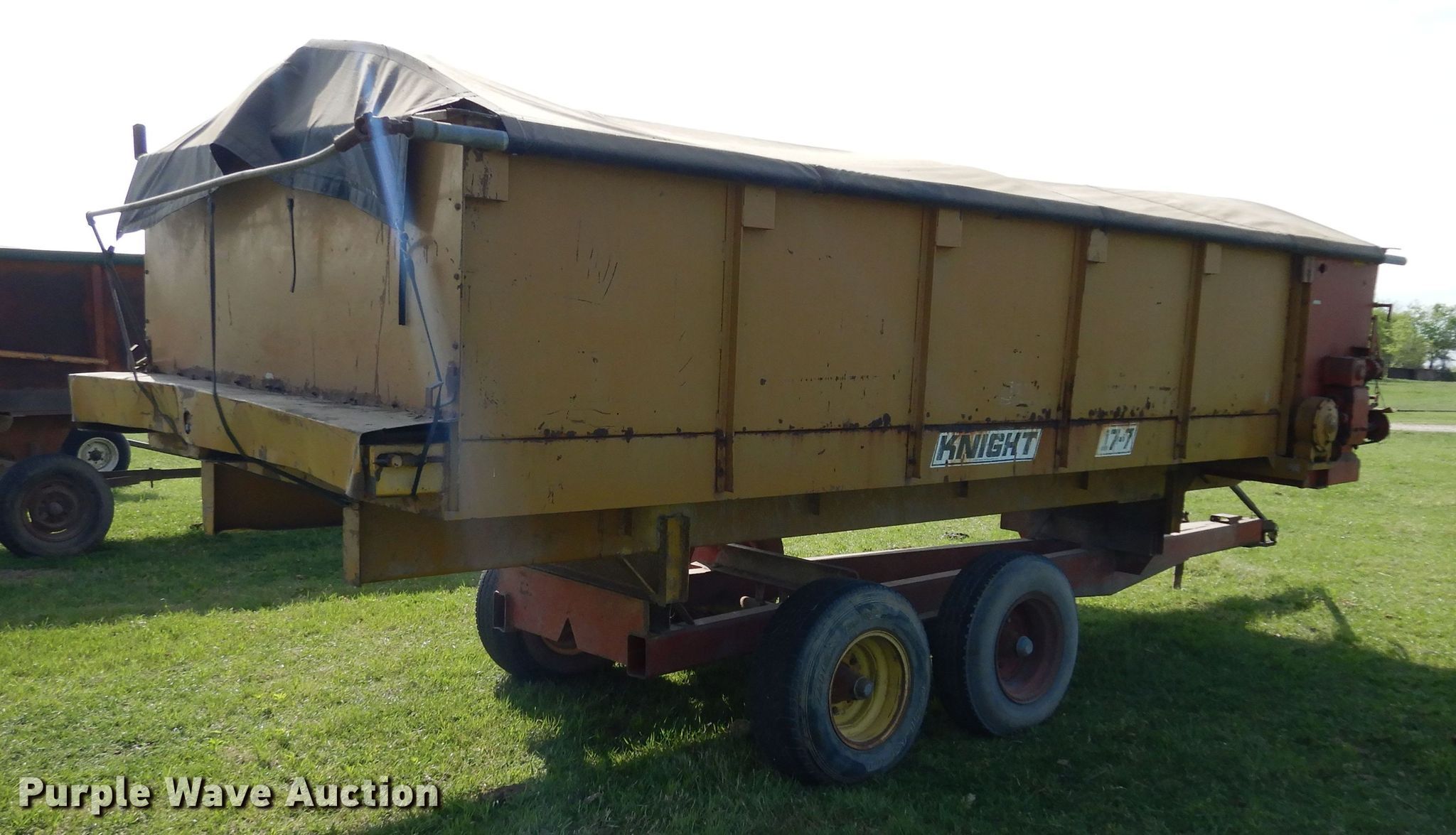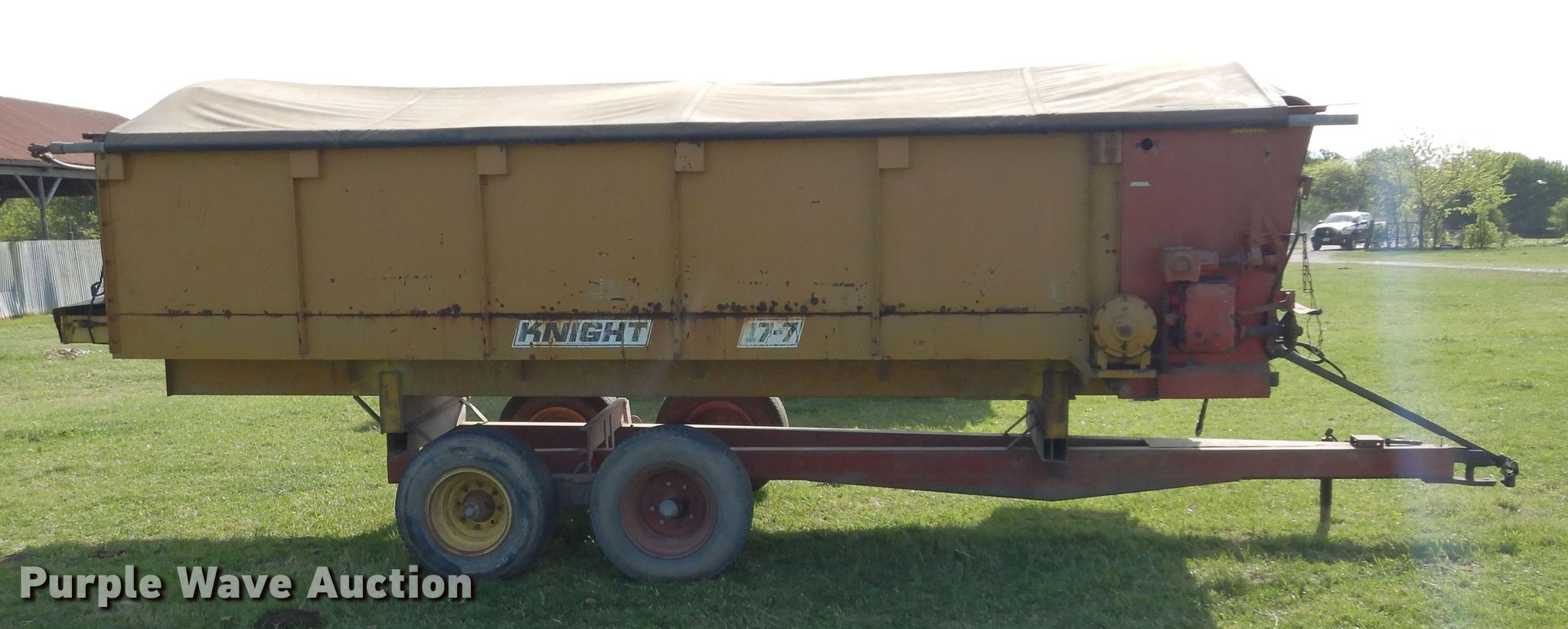 Purple Wave is selling a used Forage Head or Silage Handling in Texas. This item is a Knight 17-7 feed wagon with the following: Overall: 23' L x 7' W, Body: 17' 6" L x 7' W, Side height: 48"