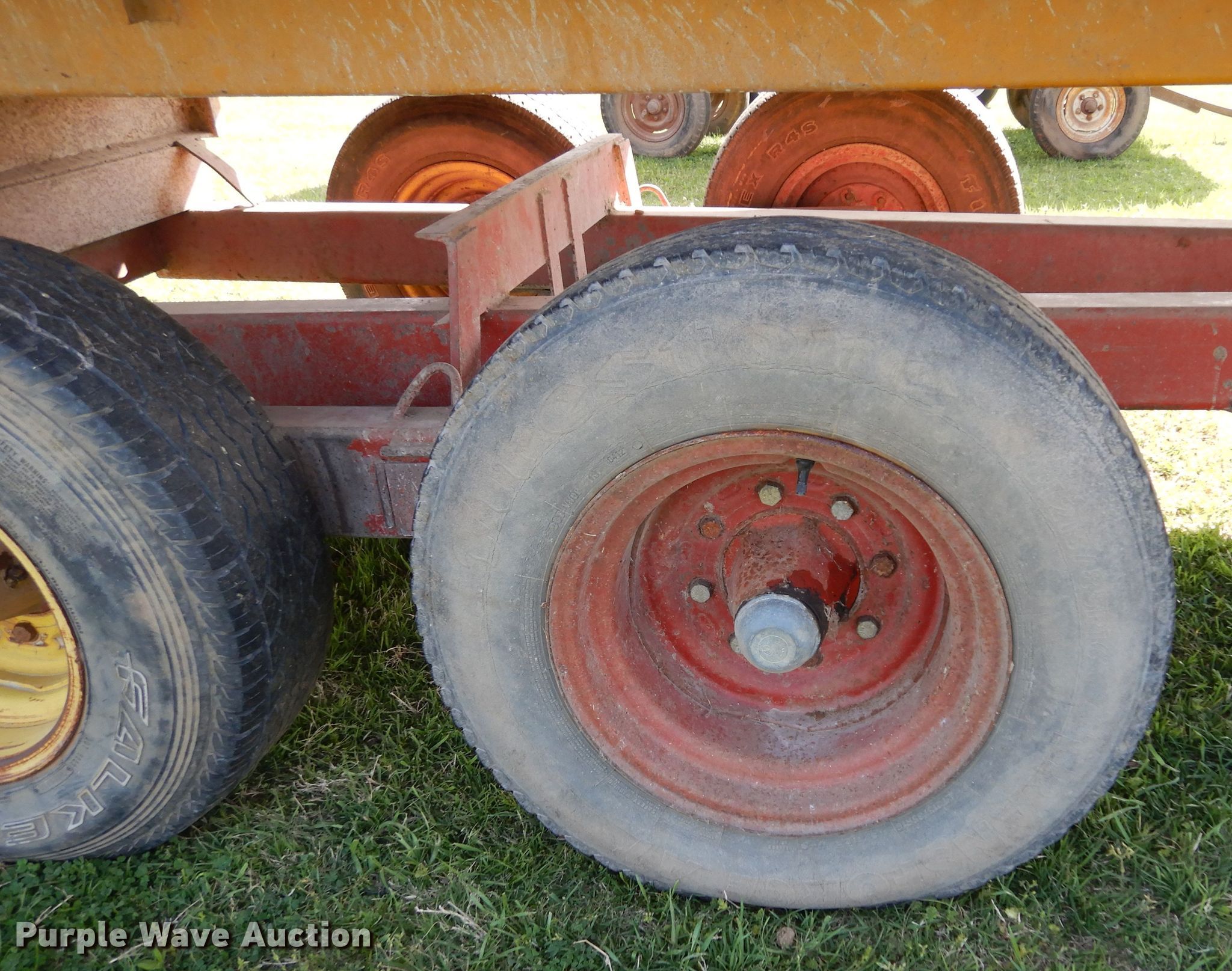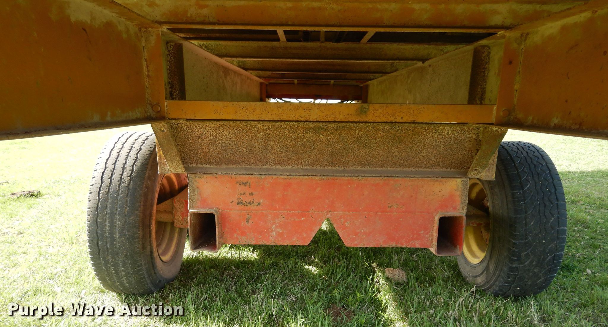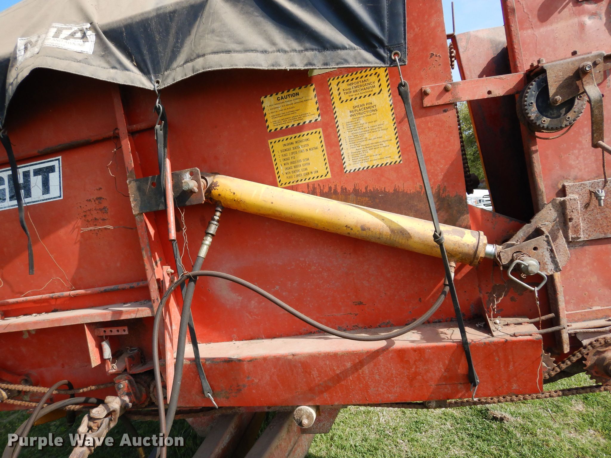 Purple Wave is selling a used Forage Head or Silage Handling in Texas. This item is a Knight 17-7 feed wagon with the following: Overall: 23' L x 7' W, Body: 17' 6" L x 7' W, Side height: 48"