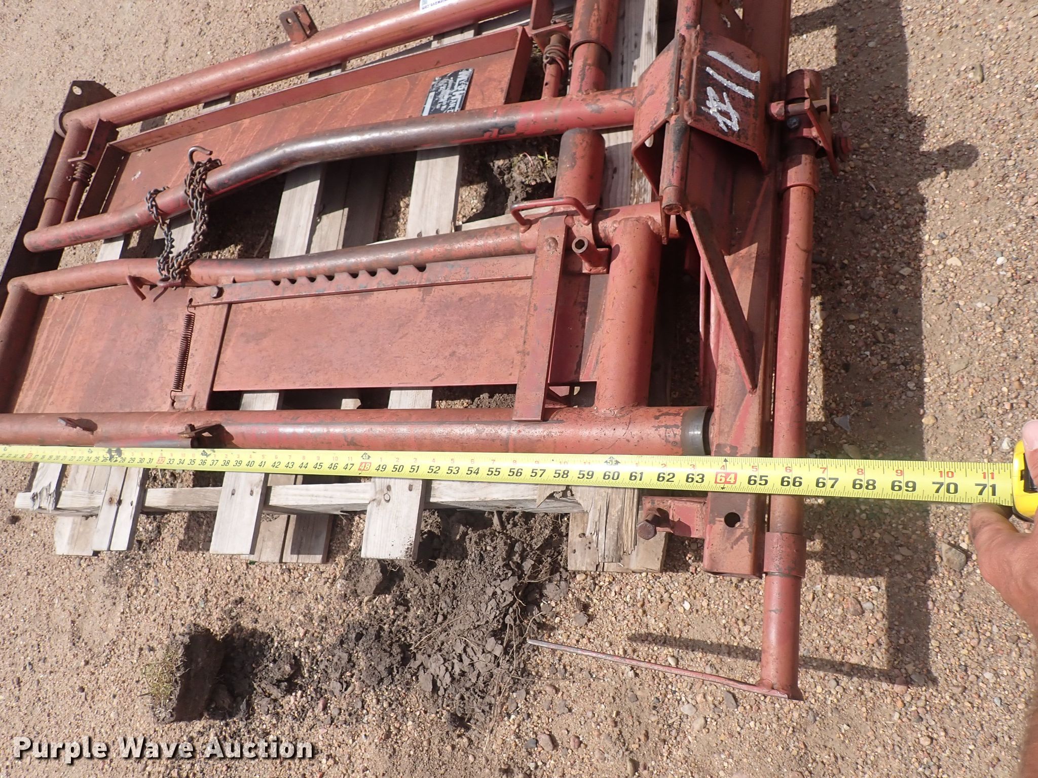 Purple Wave is selling a used Livestock Equip. in Kansas. This item is a My-D Han-D livestock squeeze chute head gate with the following: 66" x 32"