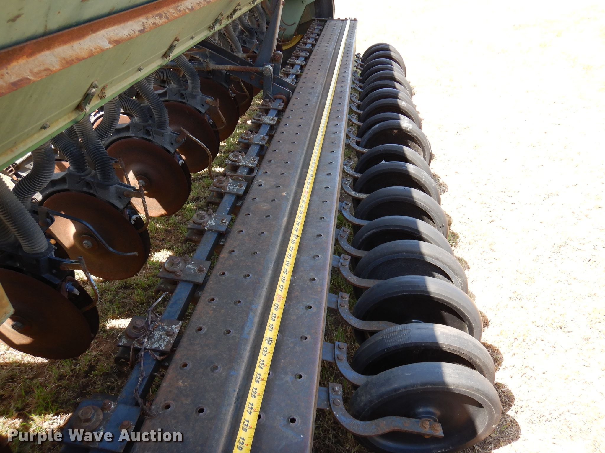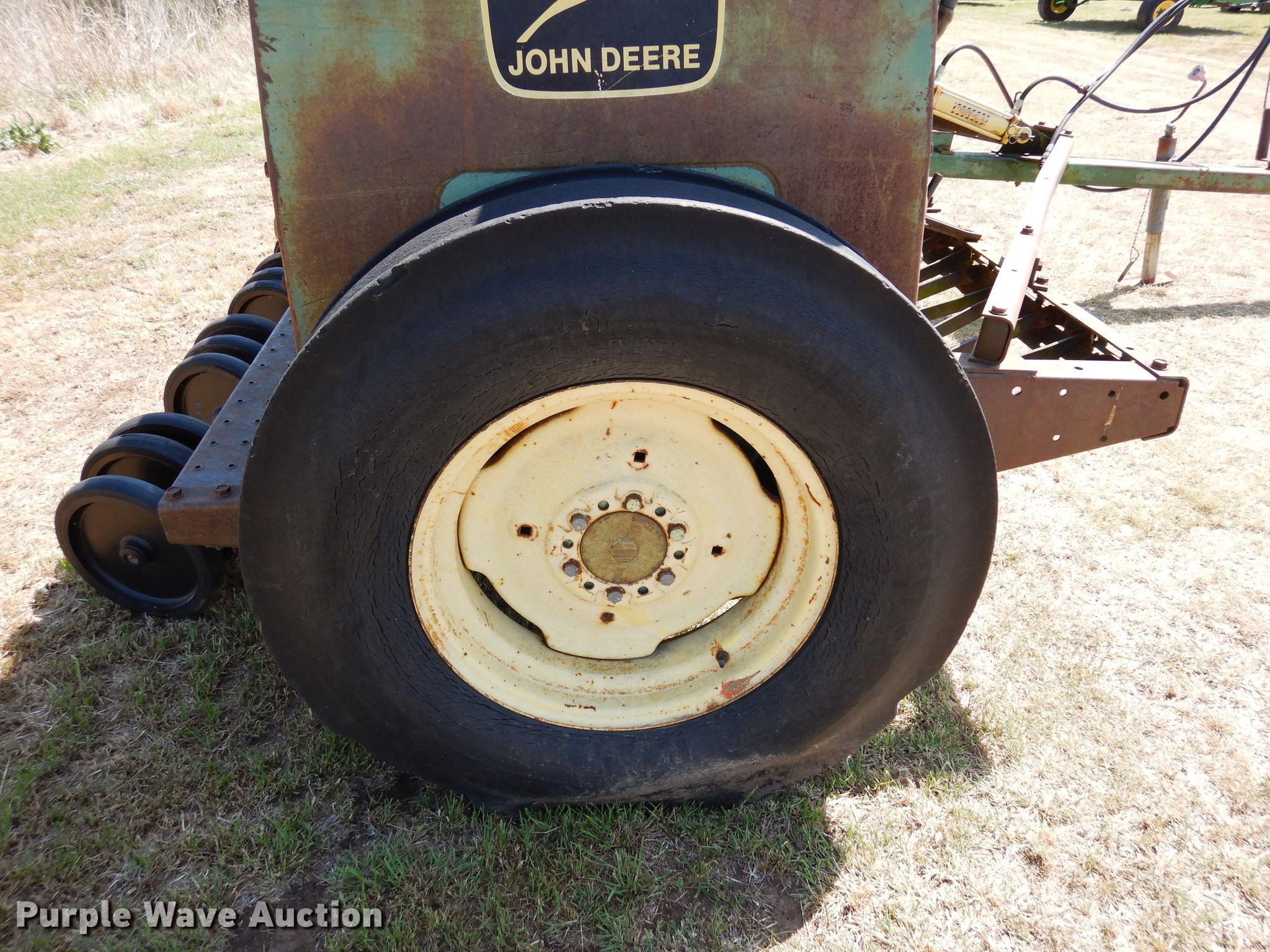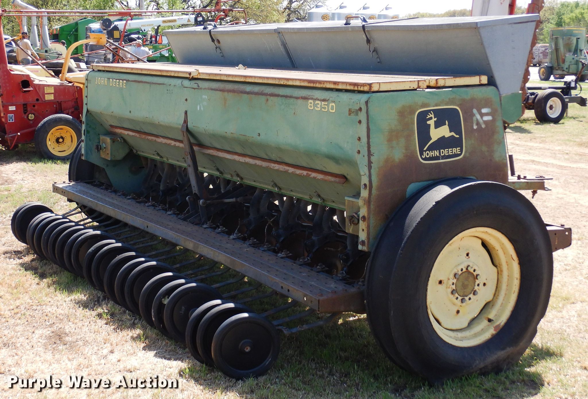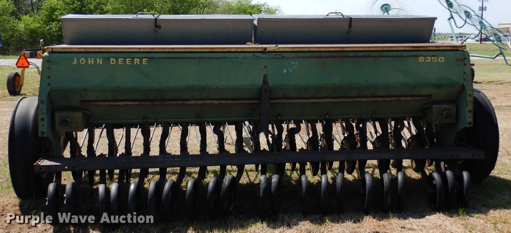 Purple Wave is selling a used Grain Drill or Seeder in Oklahoma. This item is a John Deere 8350 grain drill with the following: Width: 12', Row units: 21, Row spacing: 6"