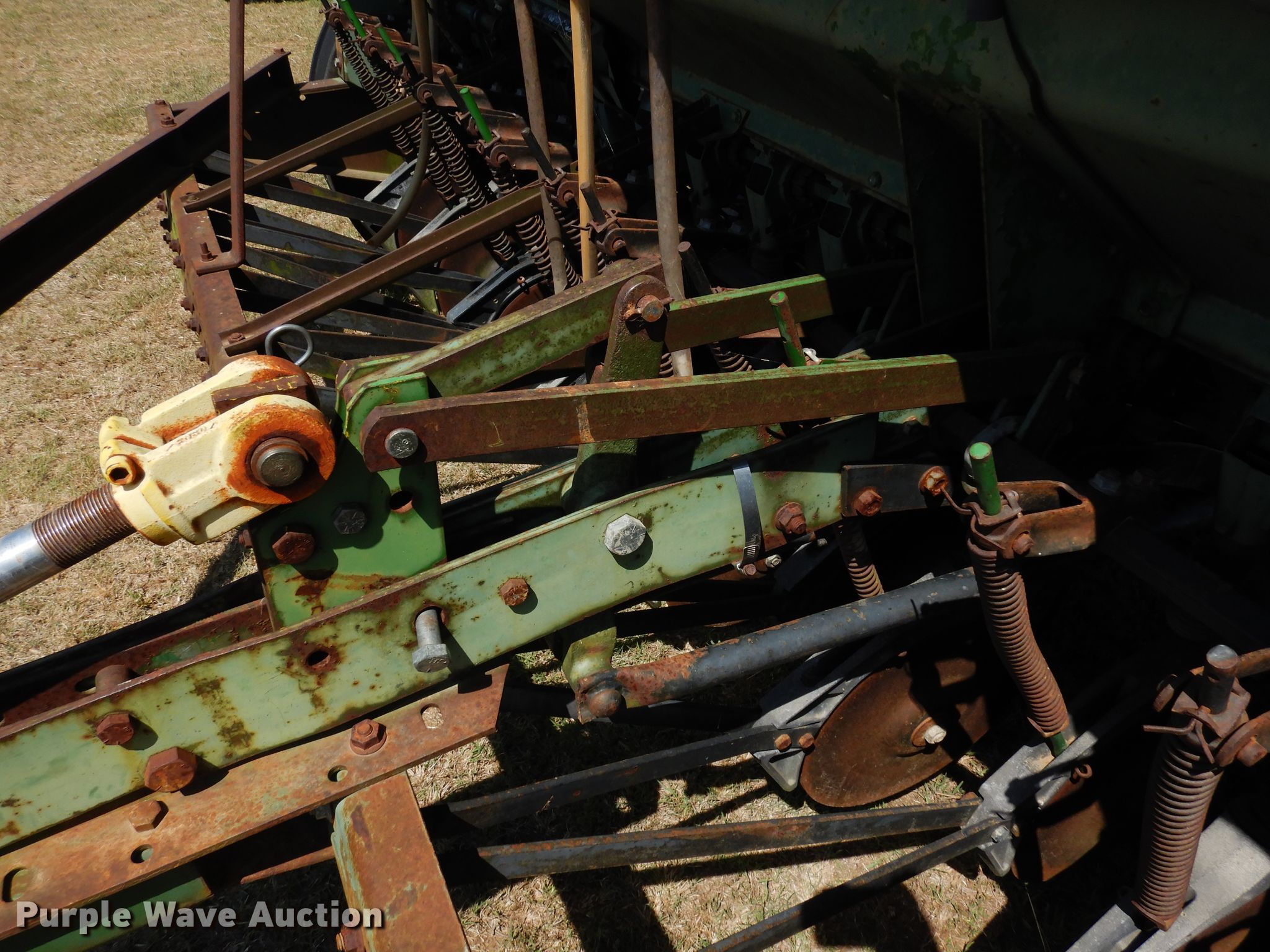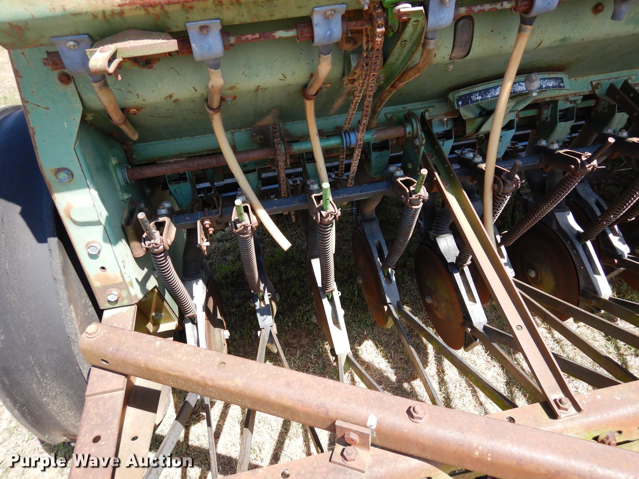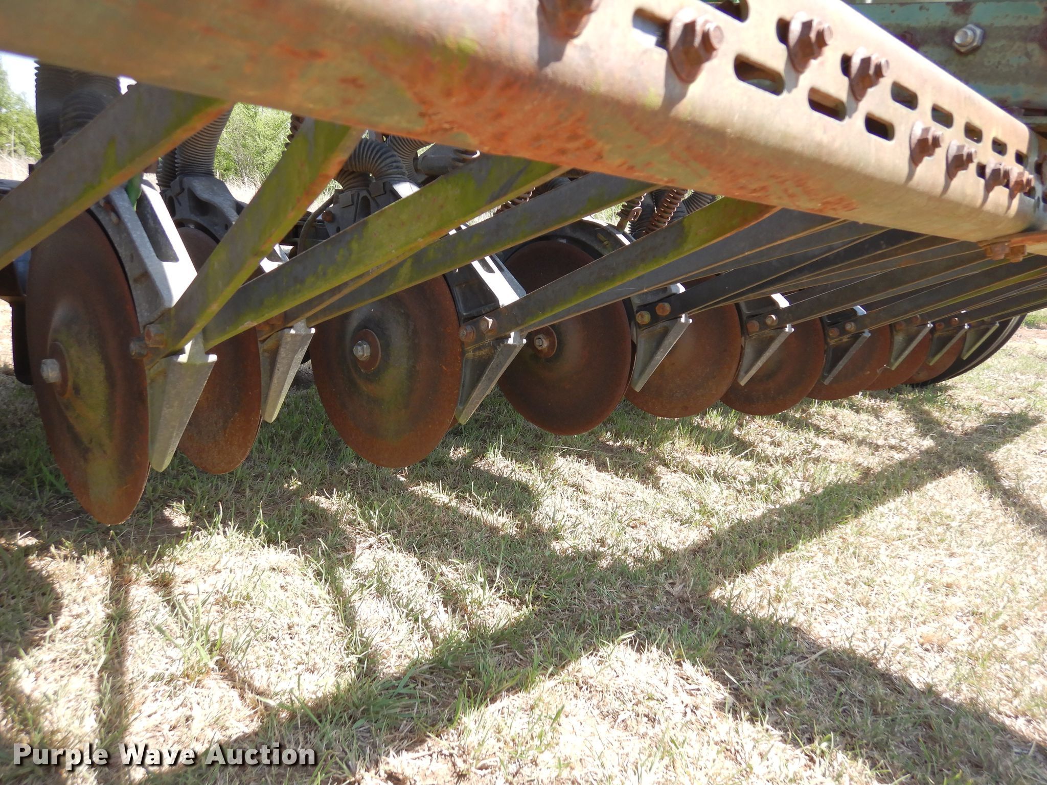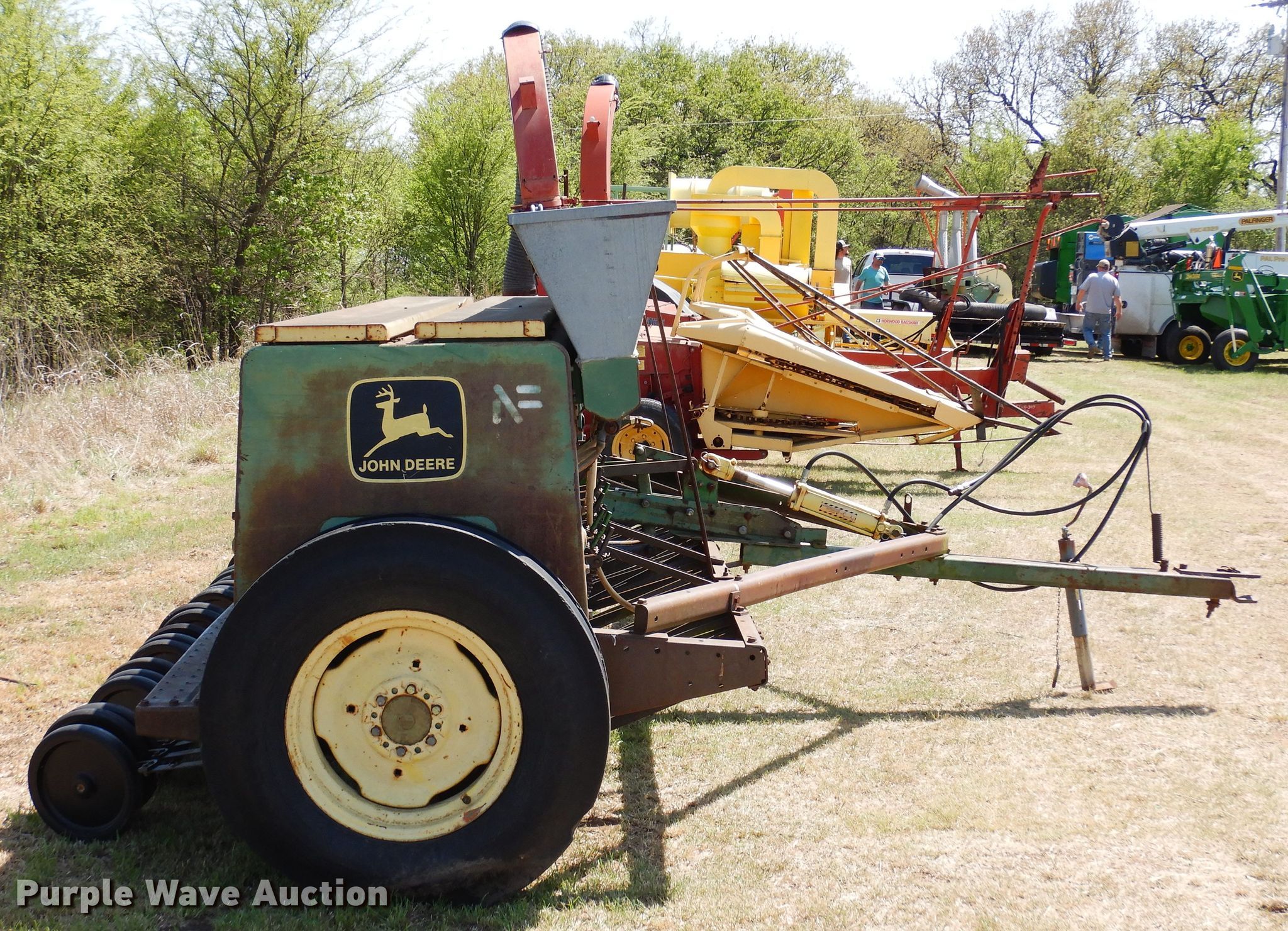 Purple Wave is selling a used Grain Drill or Seeder in Oklahoma. This item is a John Deere 8350 grain drill with the following: Width: 12', Row units: 21, Row spacing: 6"