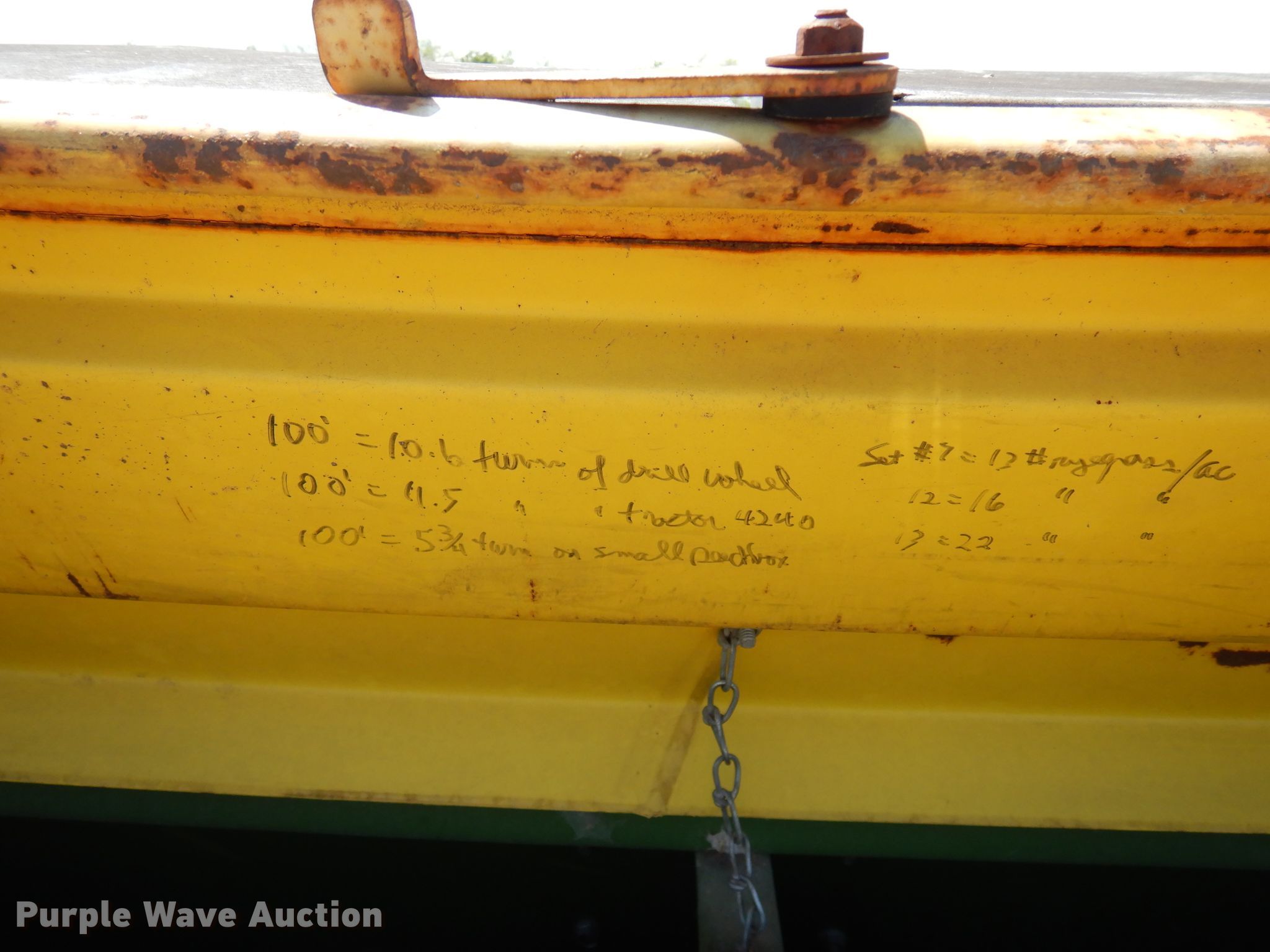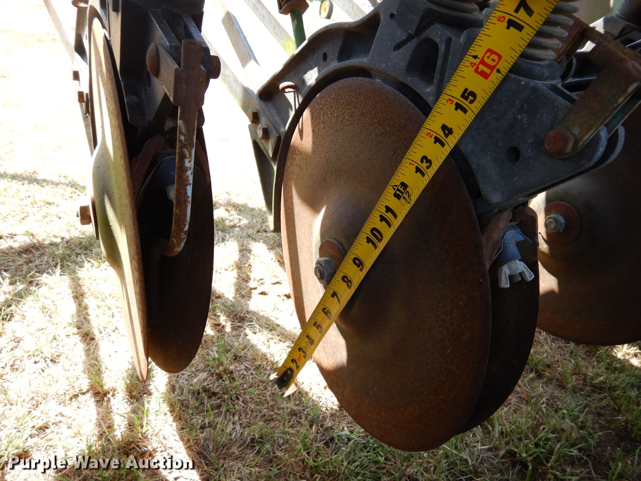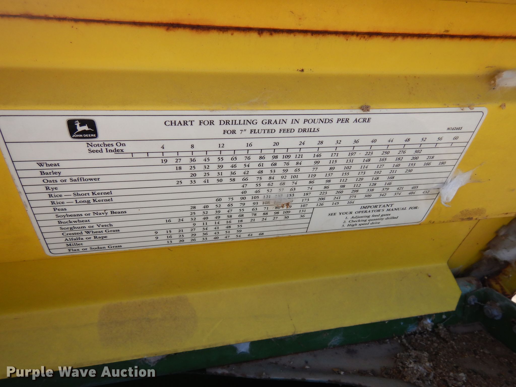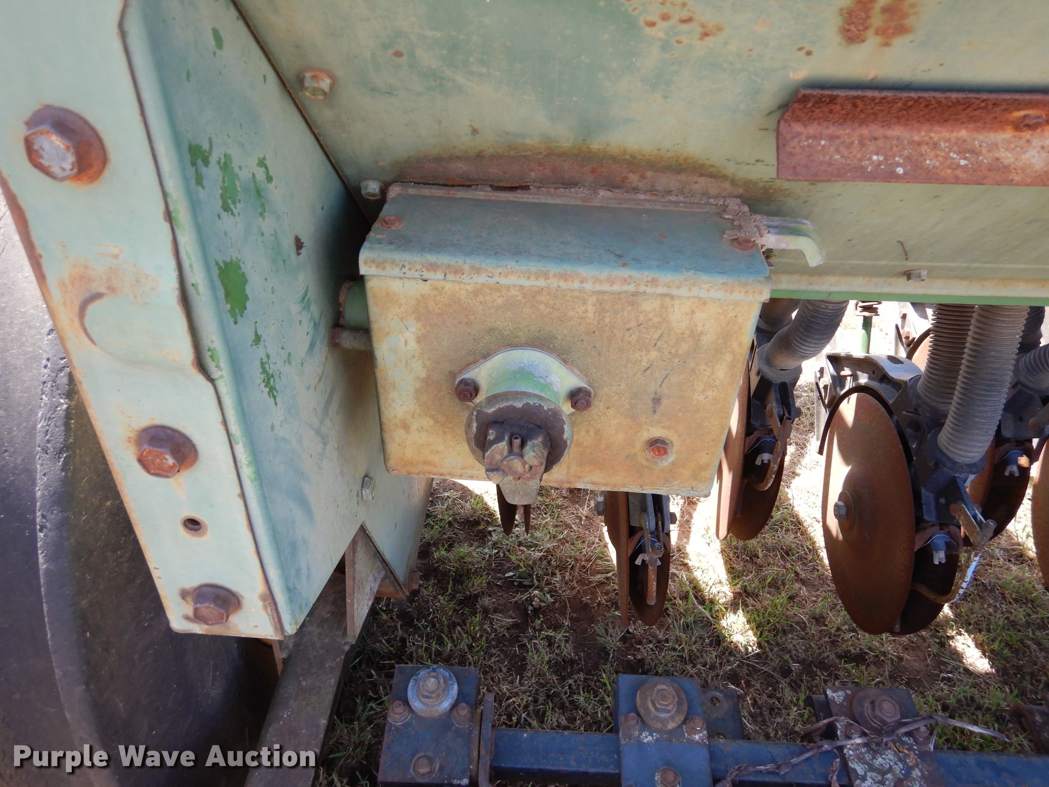 Purple Wave is selling a used Grain Drill or Seeder in Oklahoma. This item is a John Deere 8350 grain drill with the following: Width: 12', Row units: 21, Row spacing: 6"
